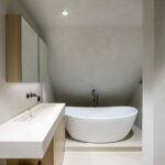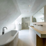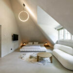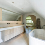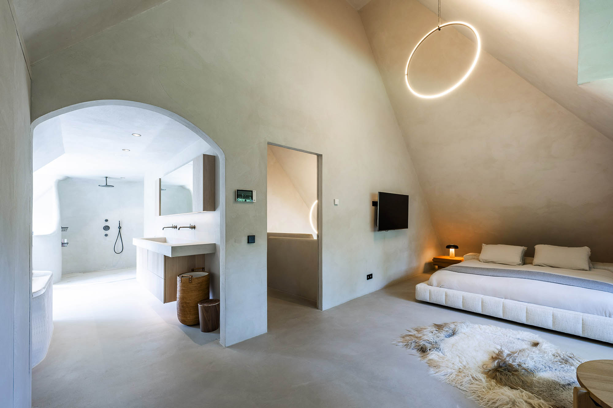 De indeling vervolgt zich op de eerste verdieping met een indrukwekkende masterbedroom, compleet met walk-in closet en een badkamer als een spa, waarin rust en luxe samenvloeien met een ligbad, inloopdouche en airconditioning.
