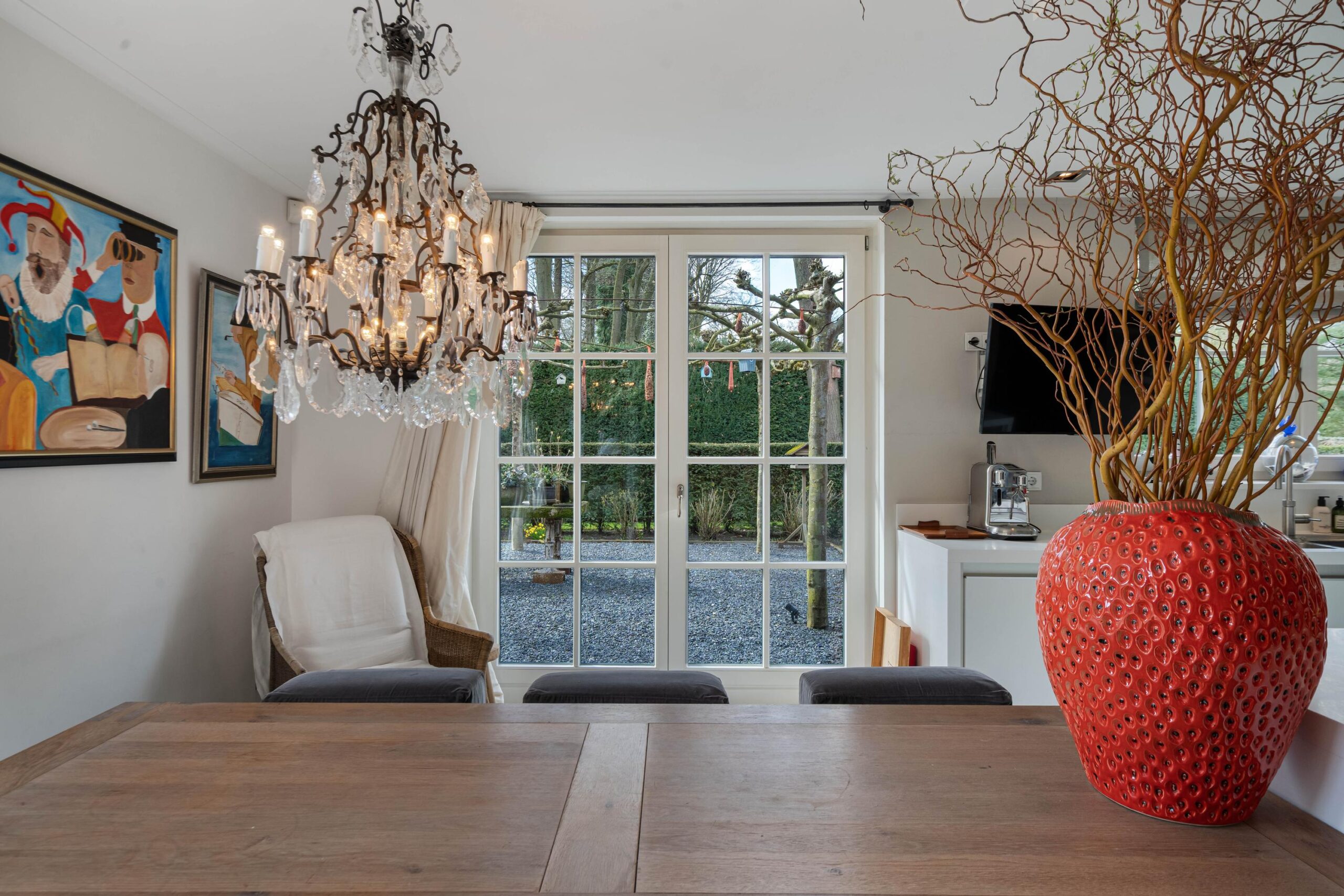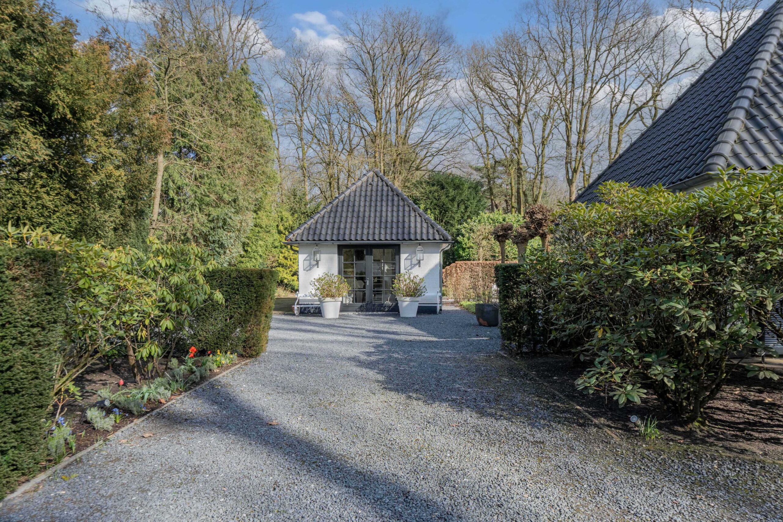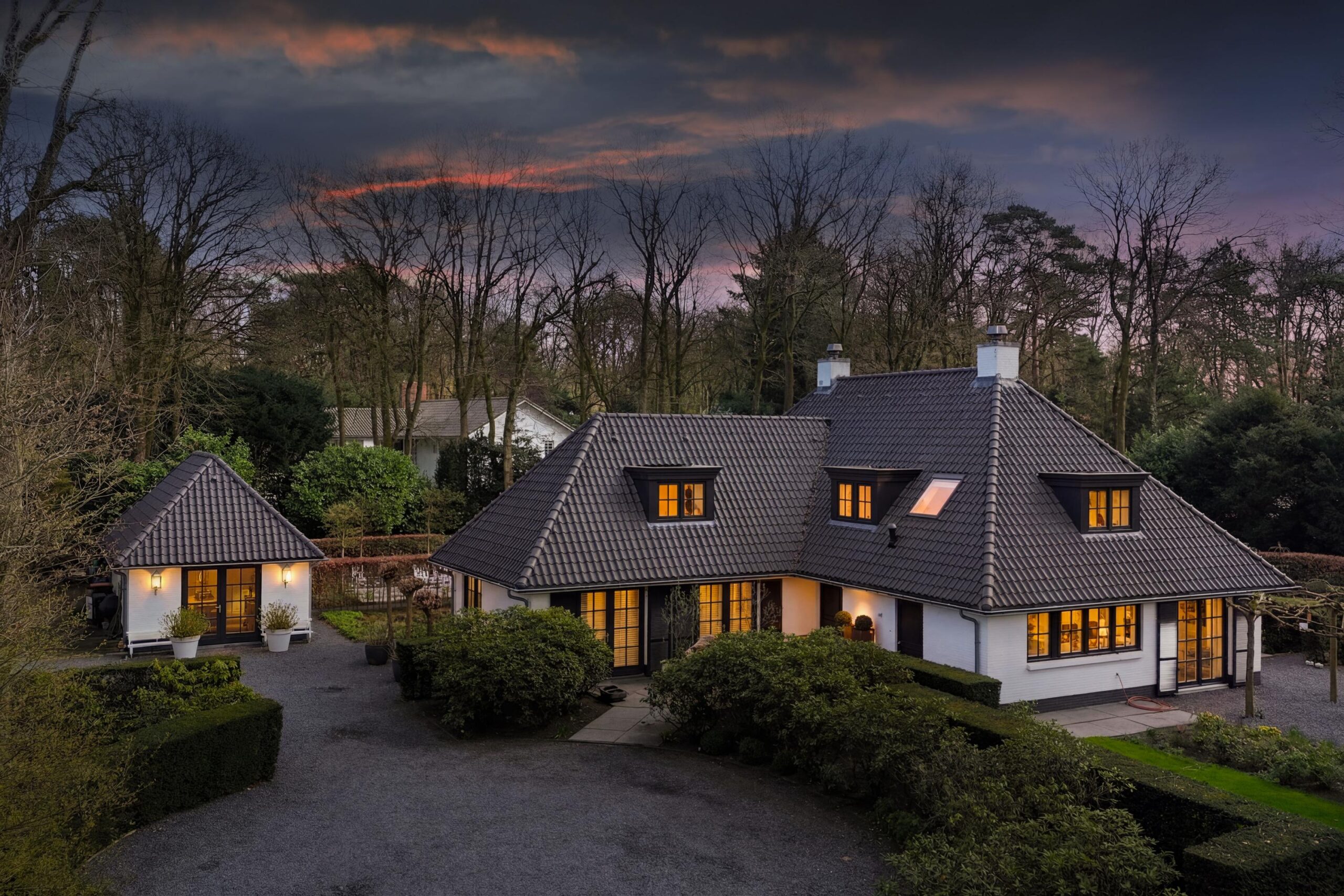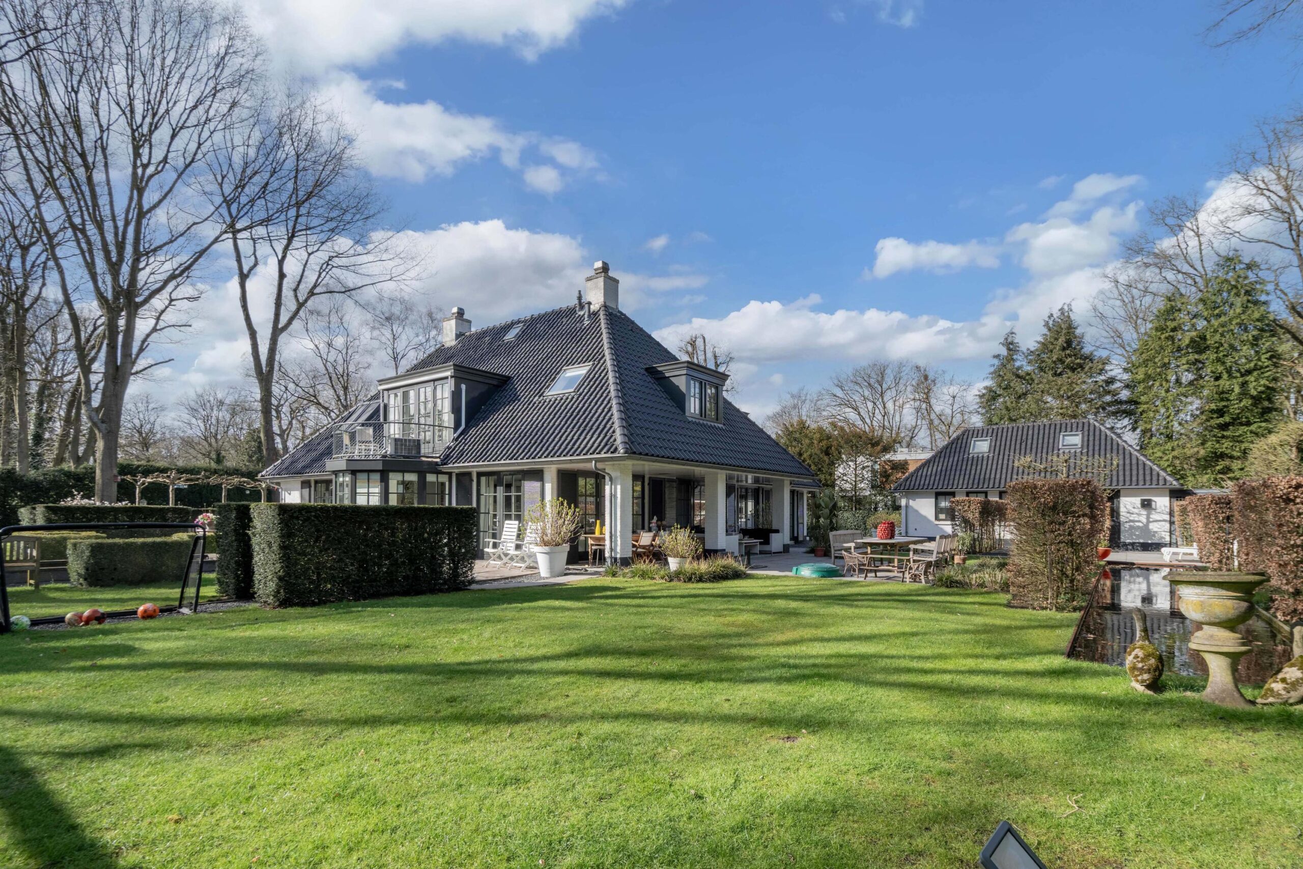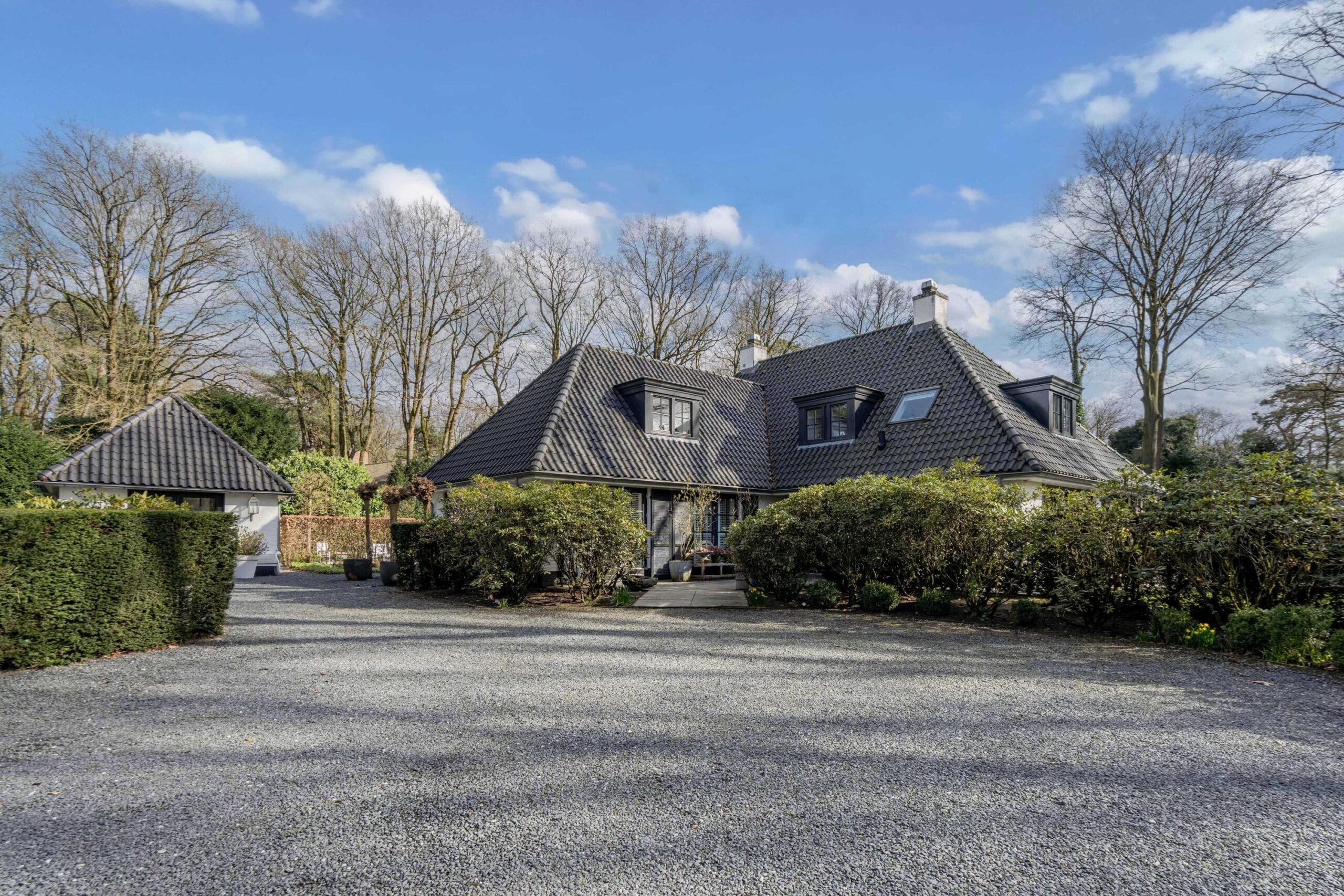 Schitterende vrijstaande villa in de groene villawijk Crailo. De villa is in 2004 gebouwd met oog voor detail en met hoogwaardige materialen op royaal perceel van 2.959m². De villa is o.a. voorzien van een sfeervolle living, werk-/studeerkamer, woonkeuken, bijkeuken, serre, 5 royale slaapkamers en 2 badkamers. Tevens is er in de tuin een guesthouse met keuken, nog een badkamer en een extra slaapkamer gebouwd, ideaal voor ouder kind of au pair.