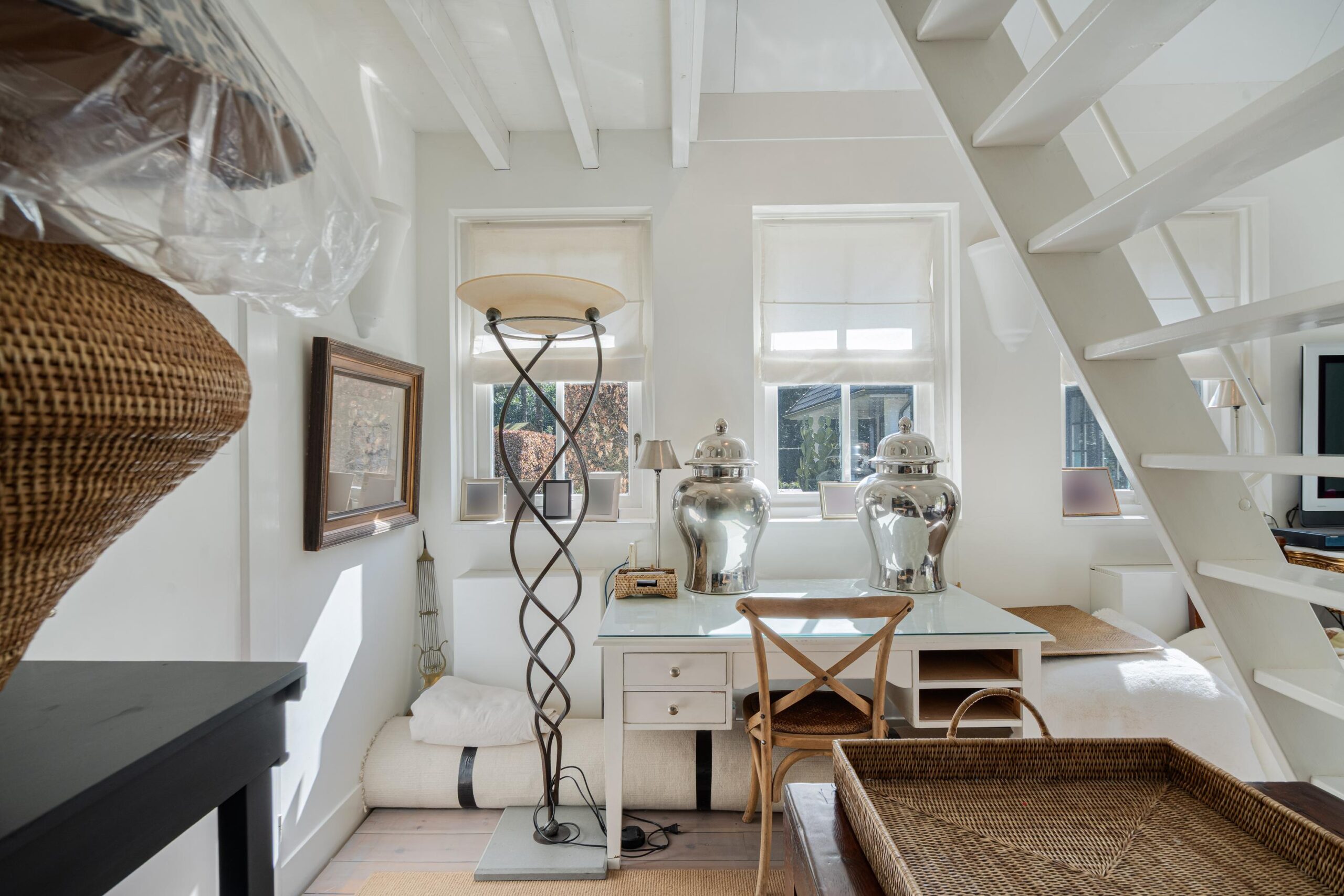 Op deze verdieping bevindt zich nog een fantastische werkkamer met openslaande deuren naar de tuin en nog nog een slaapkamer met openslaande deuren naar de achtertuin en openslaande deuren naar de voortuin, via deze slaapkamer kunt u ook de eerste verdieping bereiken door middel van een vaste trap.