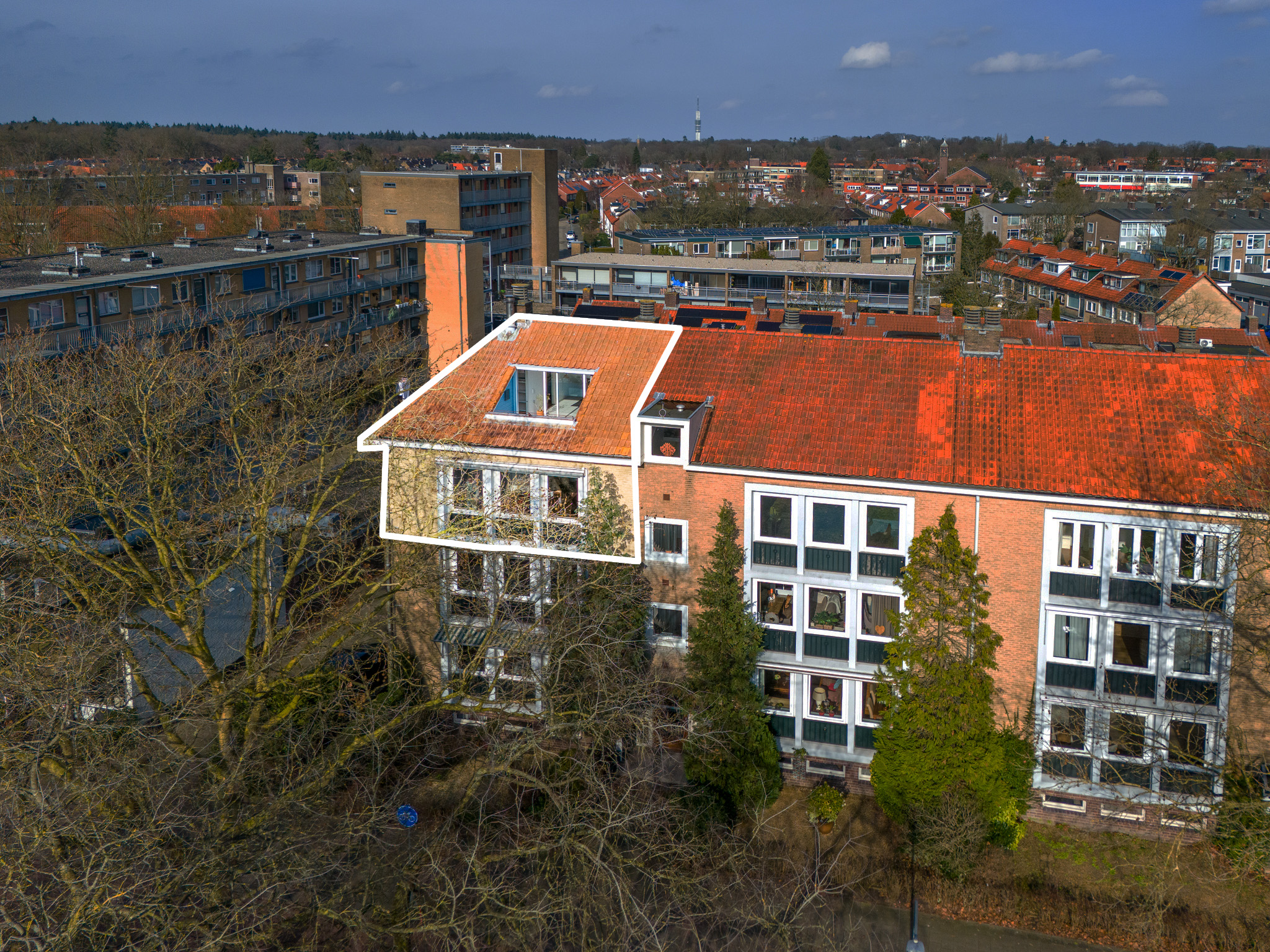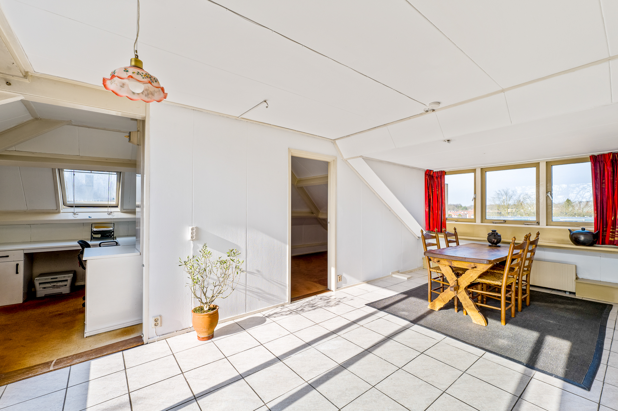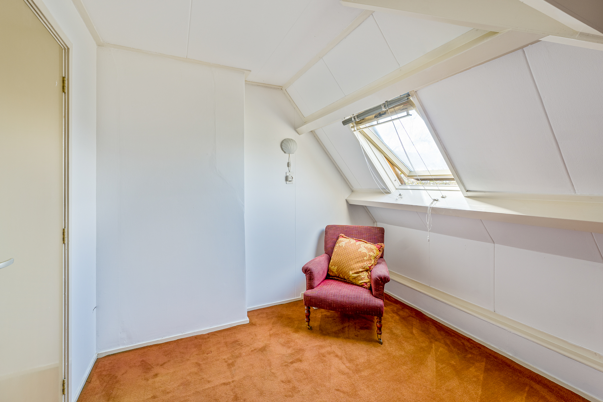 De bovenste woonlaag is bereikbaar via een vaste trap vanuit de woonkamer en vormt een volwaardige extra verdieping met meerdere gebruiksmogelijkheden, zoals extra slaapkamers, een werkruimte of hobbykamer. Deze verdieping geeft de woning een speelse en ruimtelijke opzet.