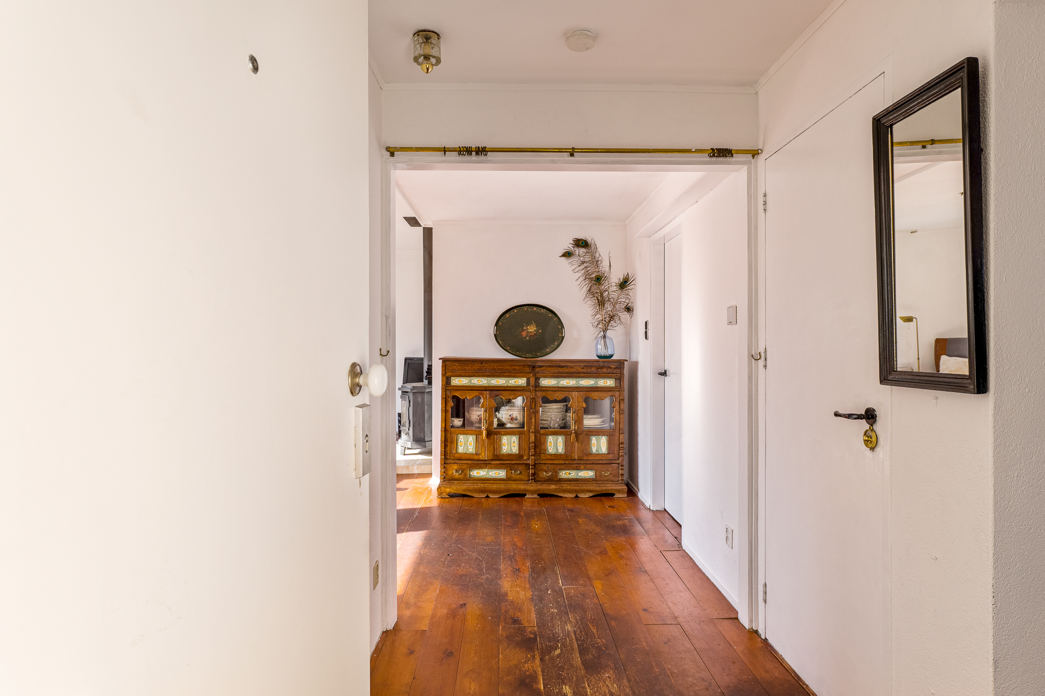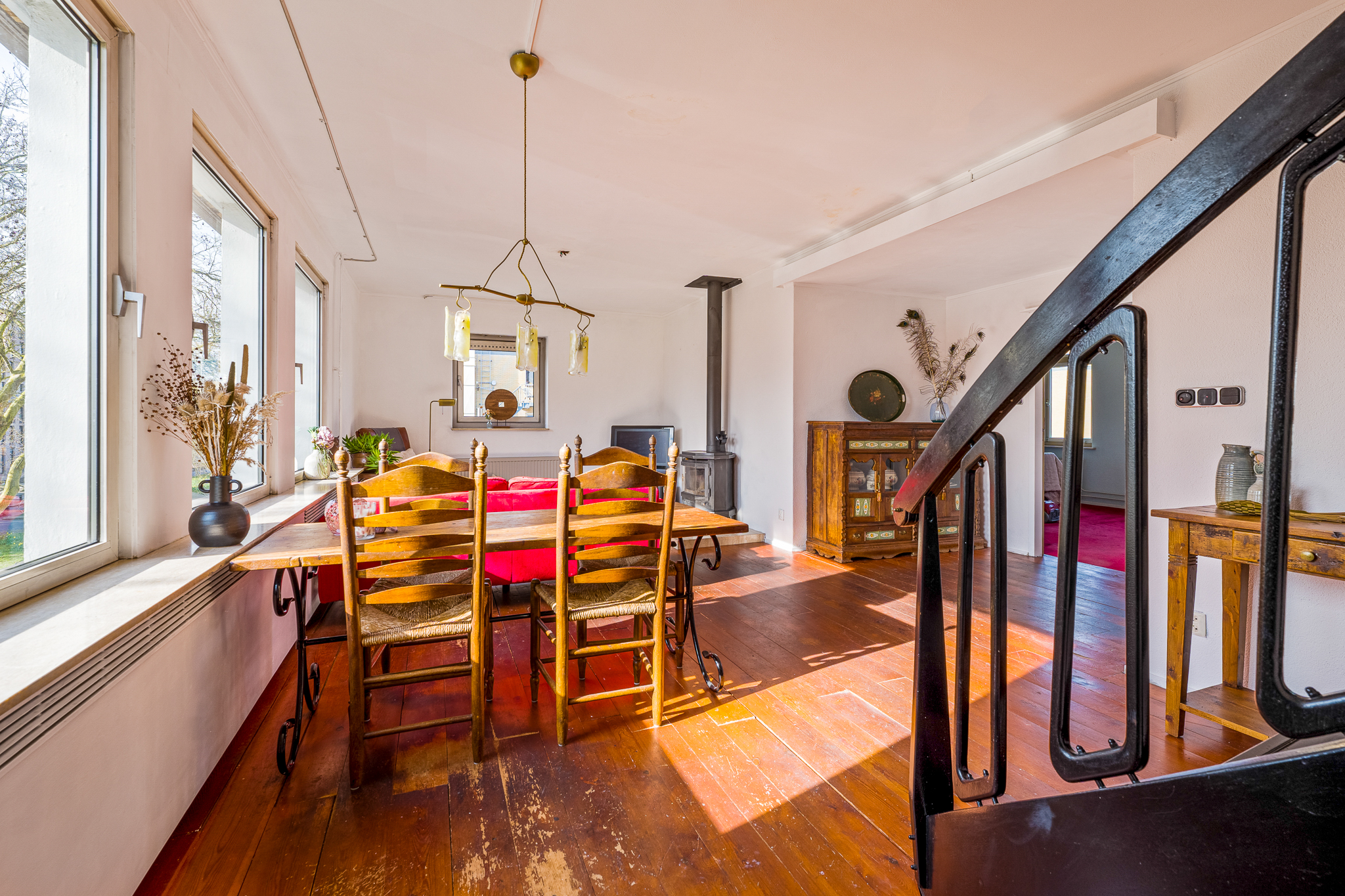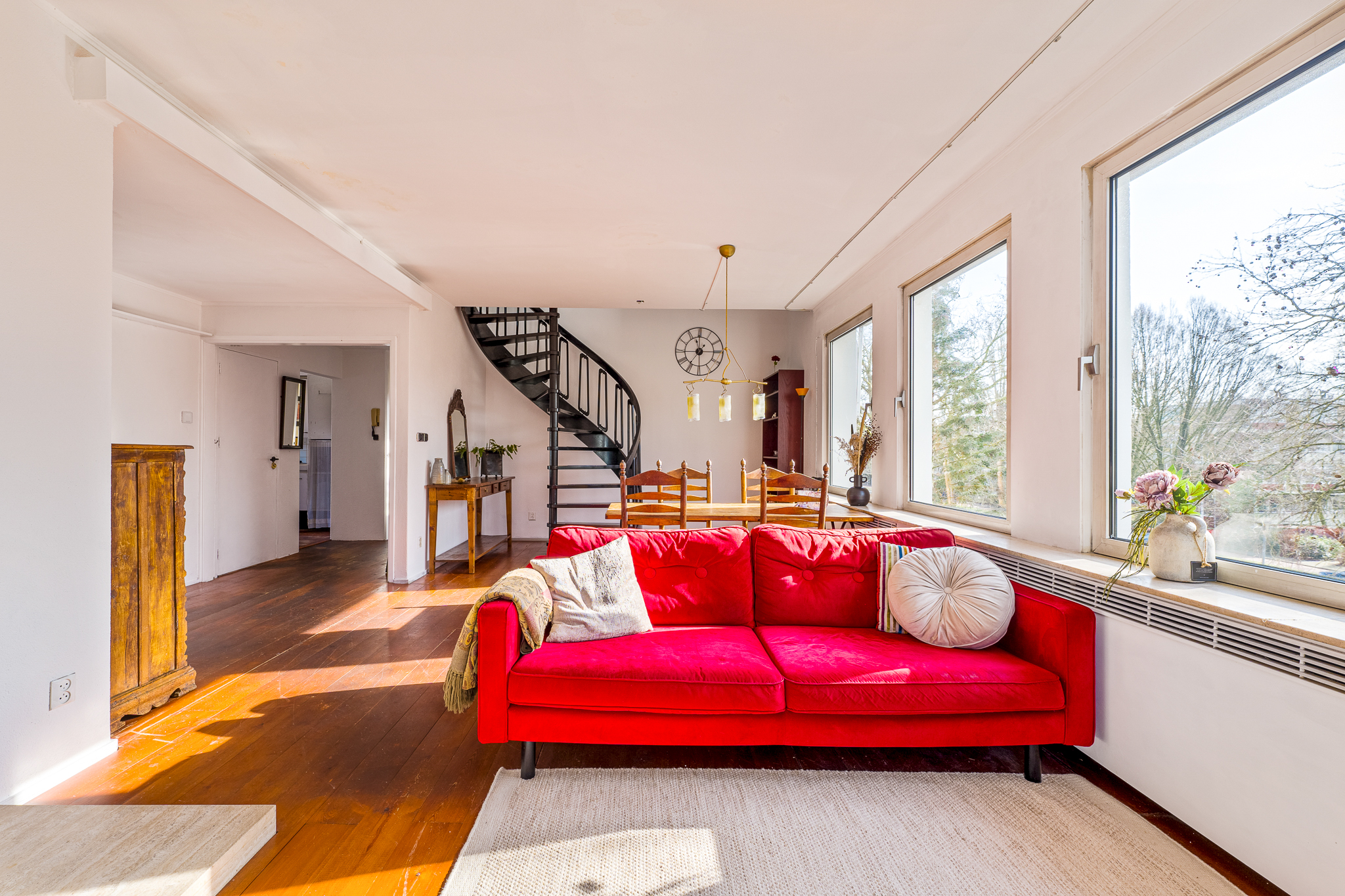 De bovenste woonlaag is bereikbaar via een vaste trap vanuit de woonkamer en vormt een volwaardige extra verdieping met meerdere gebruiksmogelijkheden, zoals extra slaapkamers, een werkruimte of hobbykamer. Deze verdieping geeft de woning een speelse en ruimtelijke opzet.