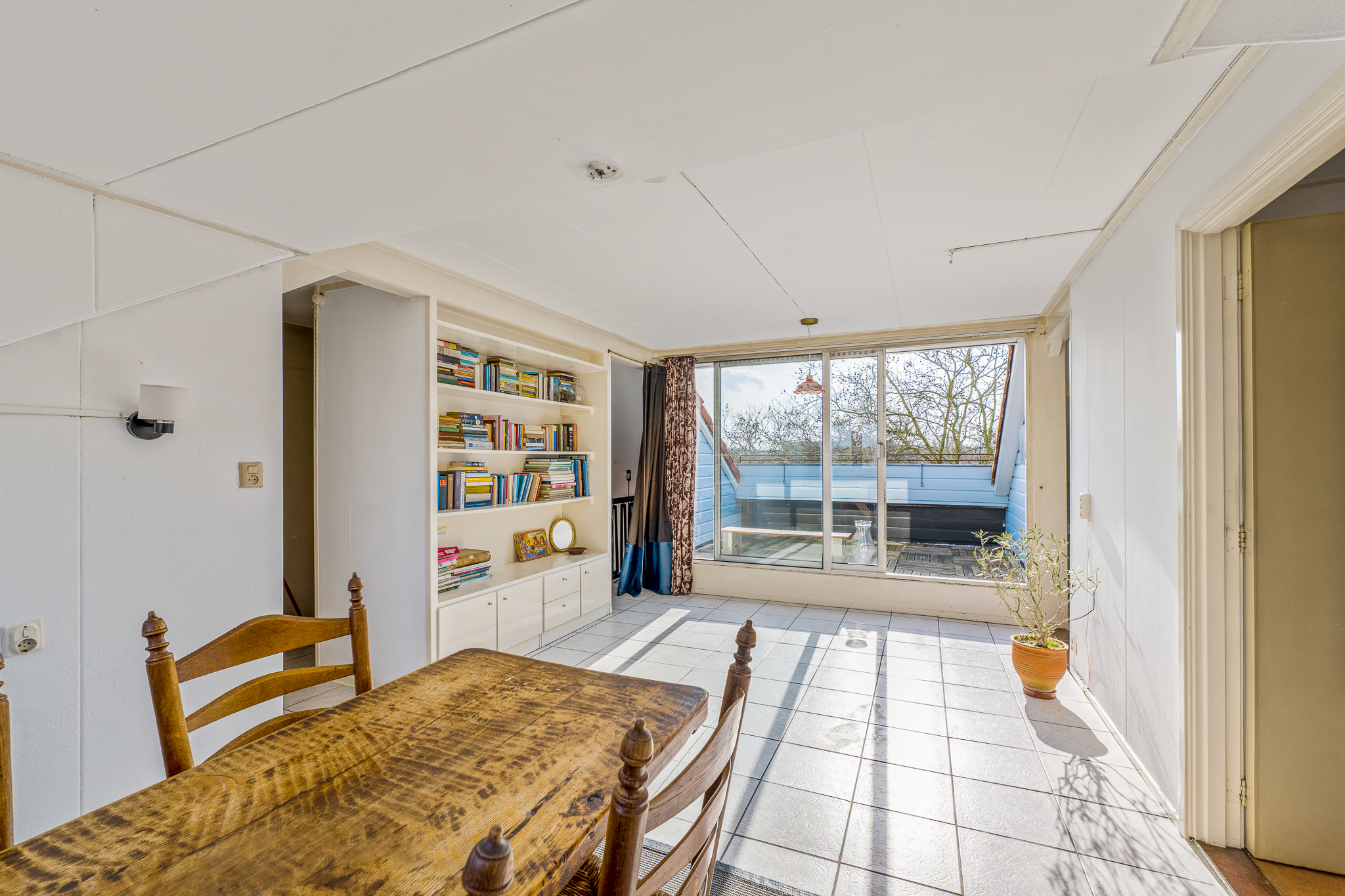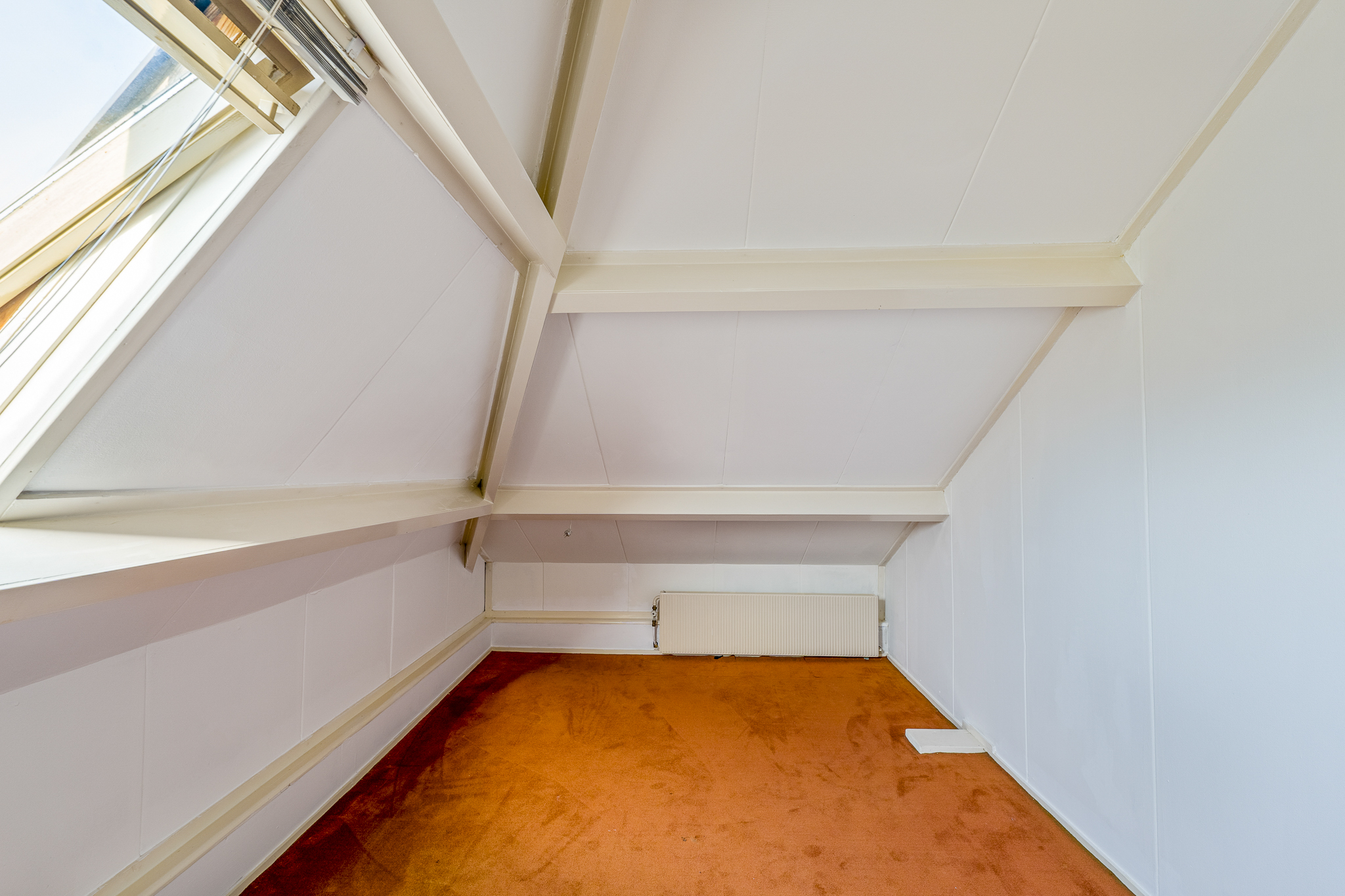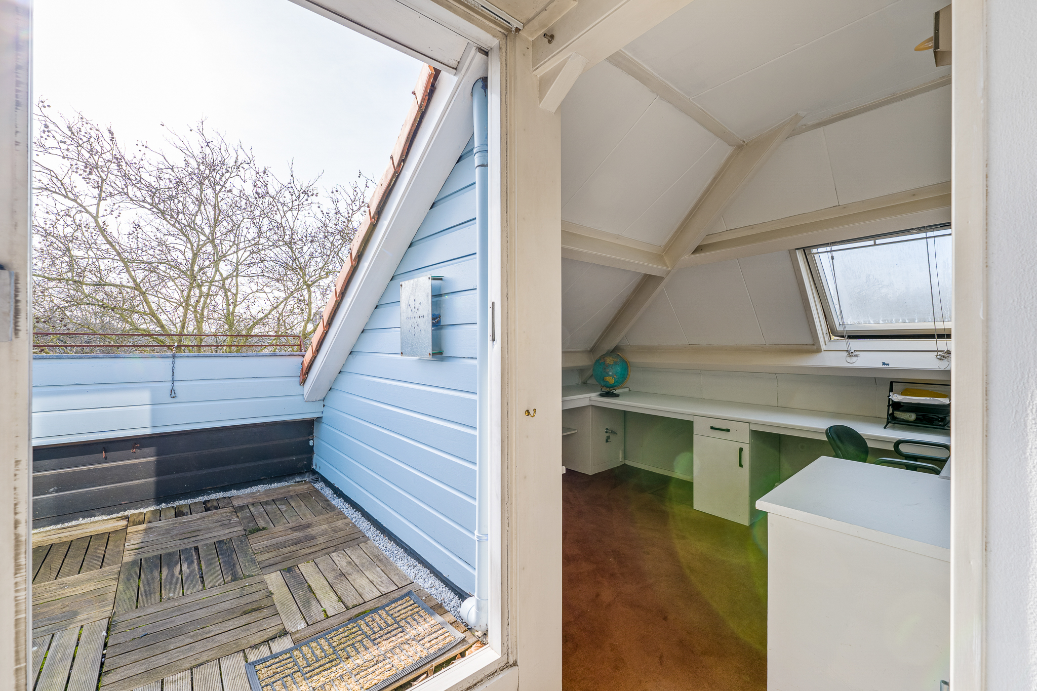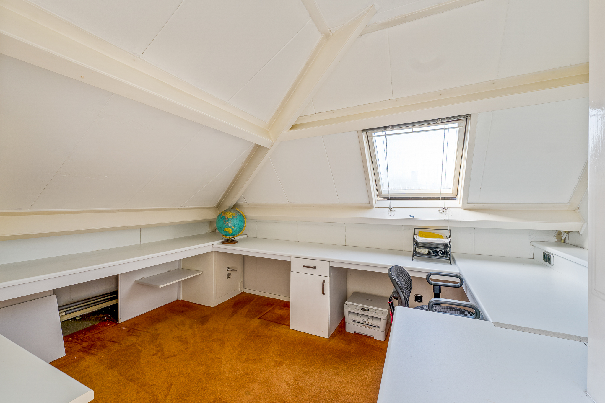 De zolderverdieping is via een vaste trap vanuit de woonkamer bereikbaar en heeft een oppervlakte van circa 50 m². Momenteel is deze verdieping opgedeeld in 4 ruimtes: twee slaapkamers, badkamer en een multifunctionele ruimte. Daarnaast is er toegang tot het zonnige dakterras.