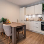 - Move-in ready apartment with 2023 kitchen including fridge/freezer combination, combi oven, dishwasher, extractor hood, and induction hob;