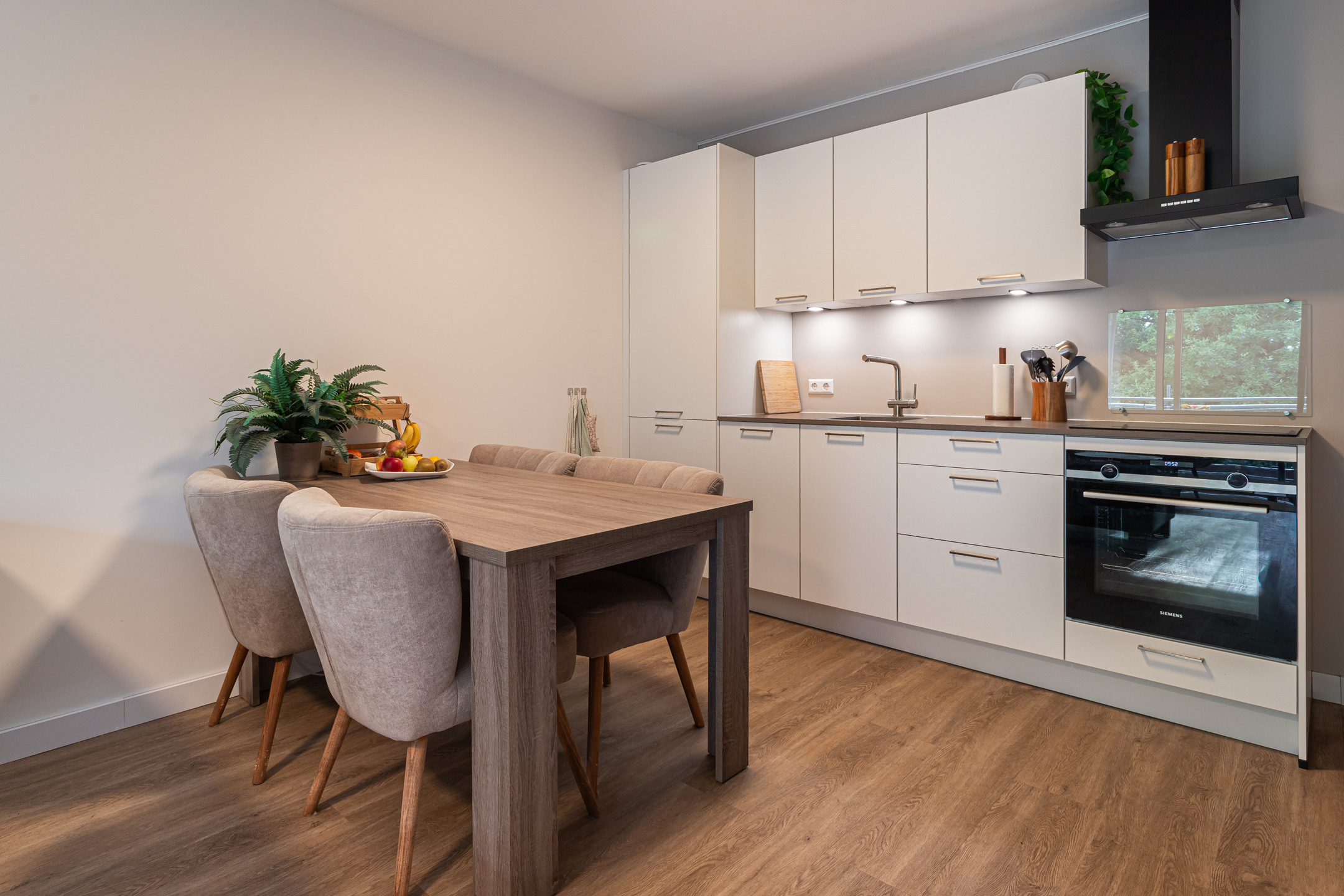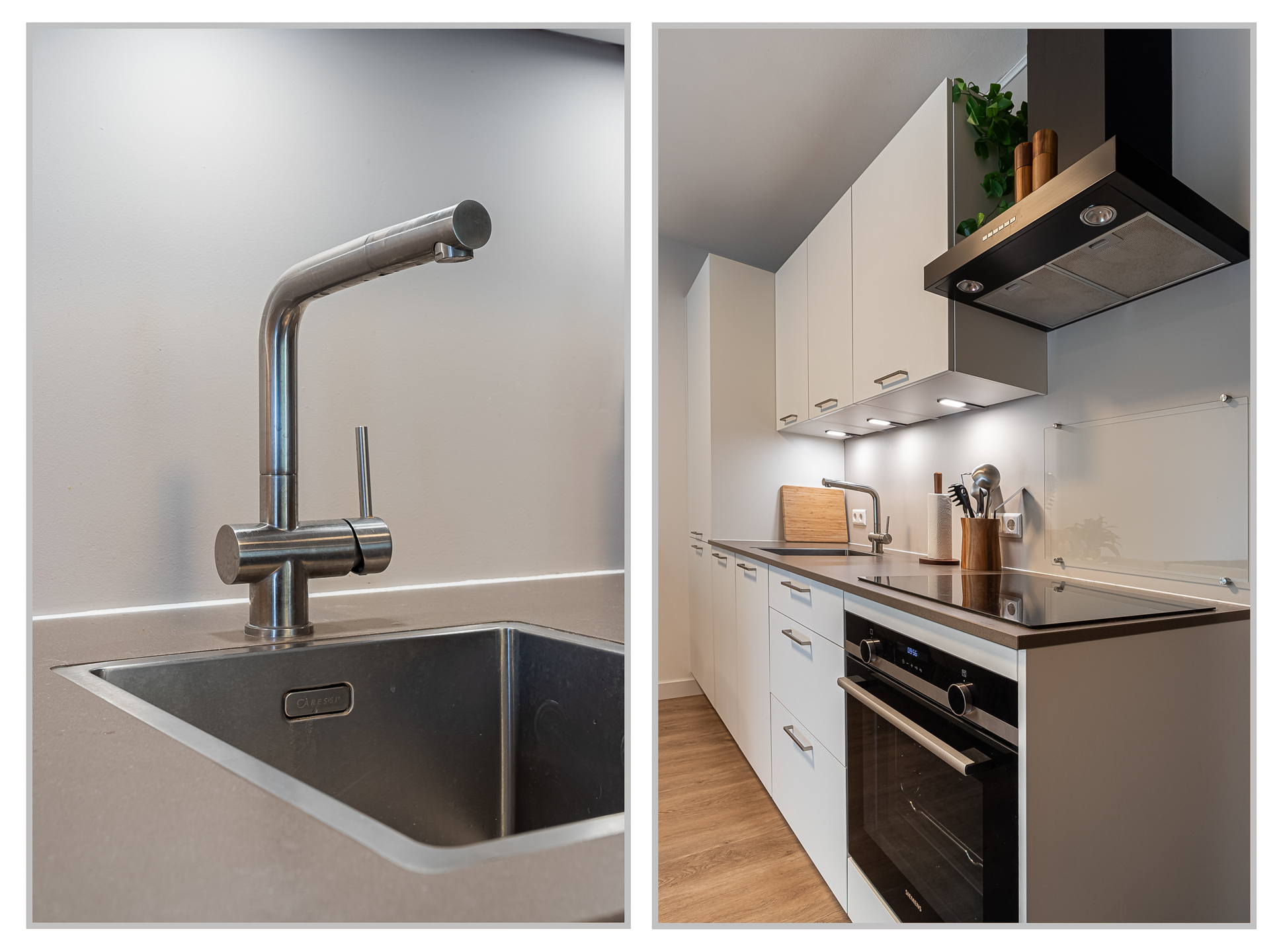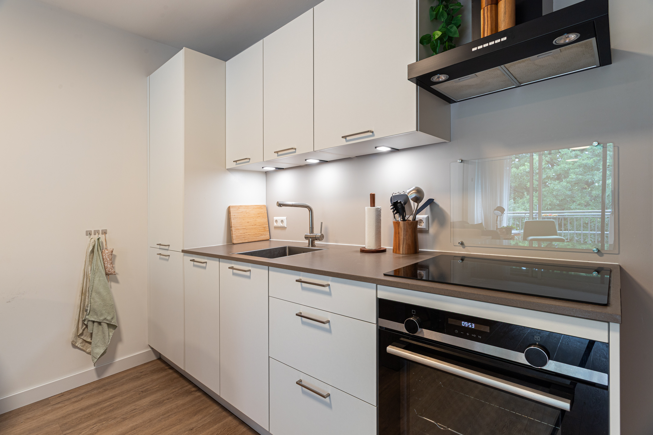 - Instapklaar appartement met keuken uit 2023 voorzien van koel-/vriescombinatie, combi oven, vaatwasser, afzuigkap en inductie kookplaat;