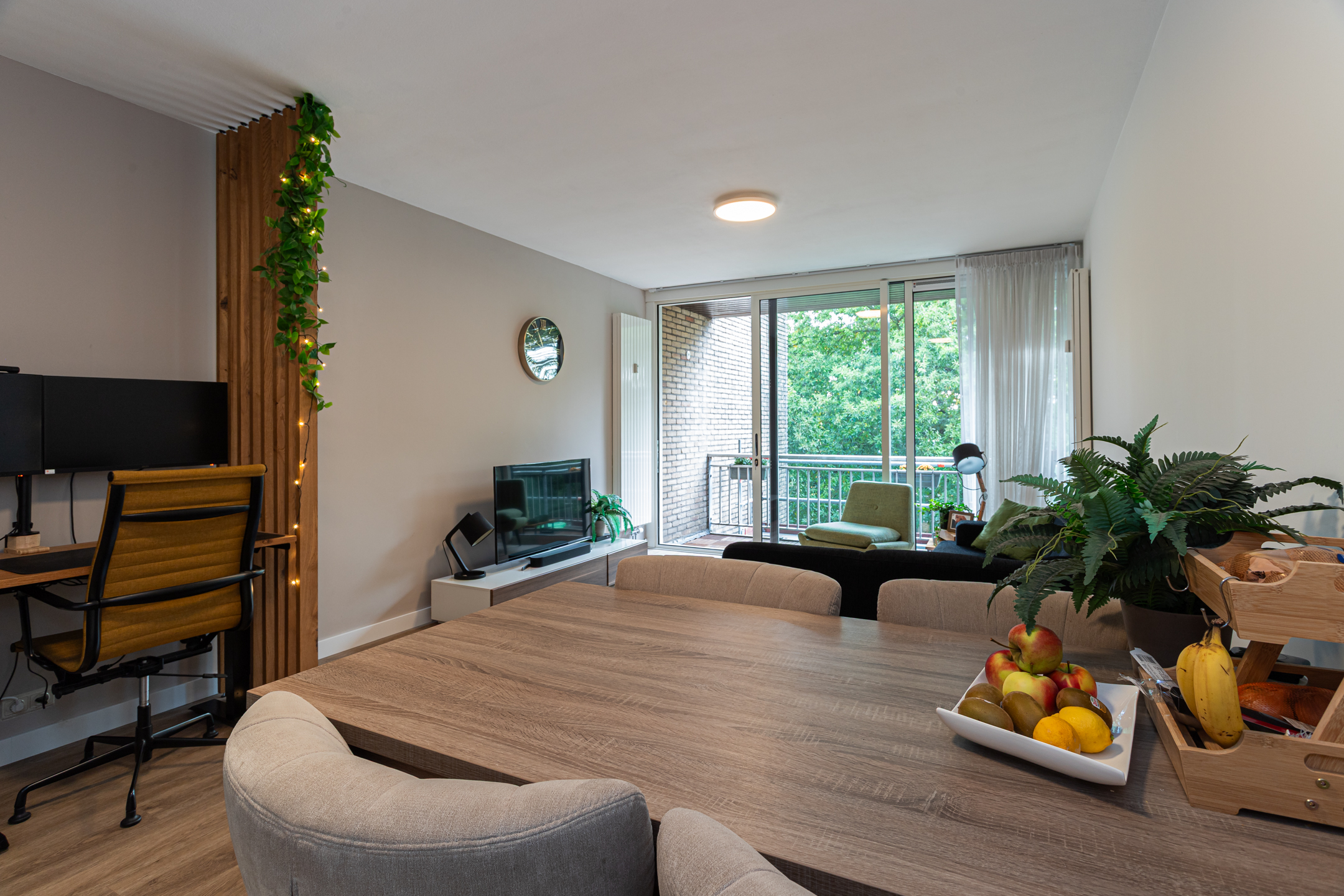 Entree, nieuwe meterkast, slaapkamer, in 2022 gerenoveerde badkamer met douche, toilet, wastafel en aansluiting wasmachine, woonkamer met moderne open keuken uit 2023 voorzien van inbouwapparatuur, balkon op het oost/zuidoosten.