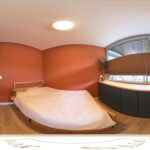 Entrance, new fuse box, bedroom, bathroom renovated in 2022 with shower, toilet, washbasin and washing machine connection, living room with modern open kitchen from 2023 fitted with built-in appliances, and a balcony facing east/southeast.