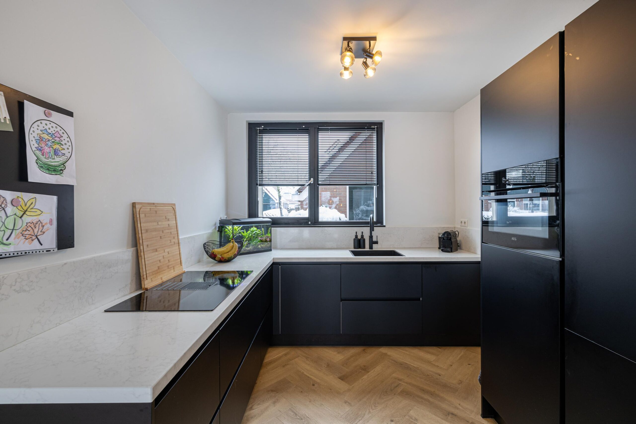 - Luxe zwarte keuken (2021) met keramisch blad, AEG apparatuur en Quooker;