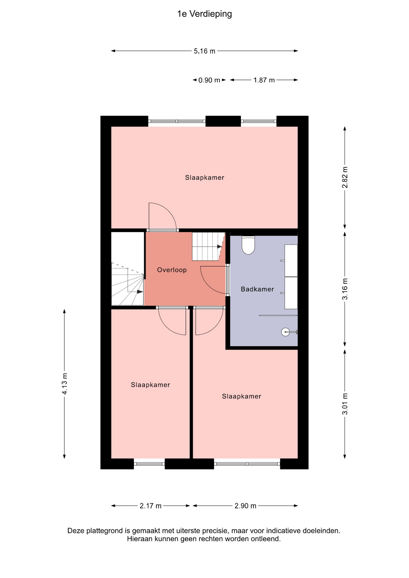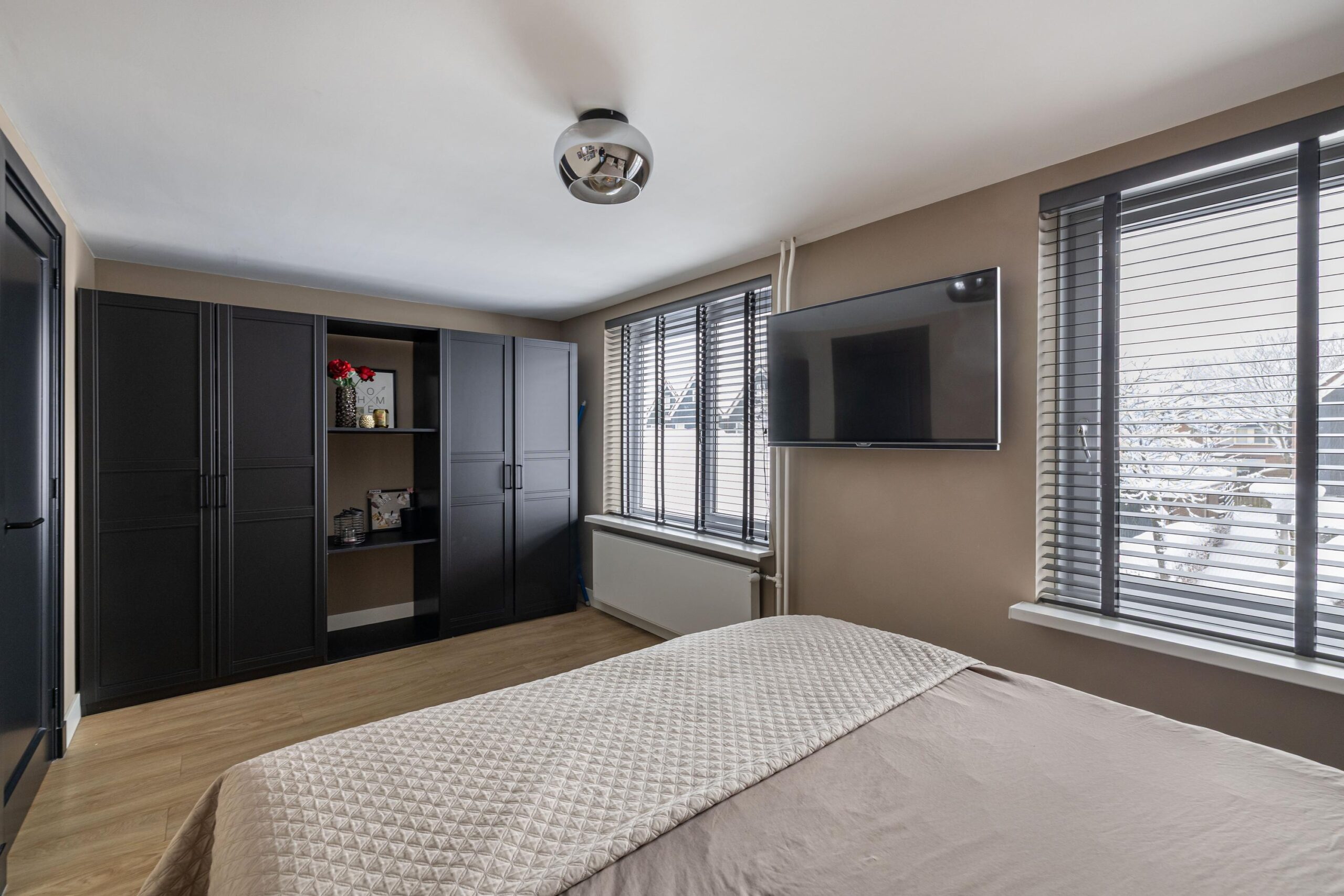 De overloop geeft toegang tot drie royale slaapkamers en de luxe badkamer. De master bedroom bevindt zich aan de voorzijde en strekt zich uit over de volle breedte van de woning. De twee overige slaapkamers liggen aan de achterzijde.