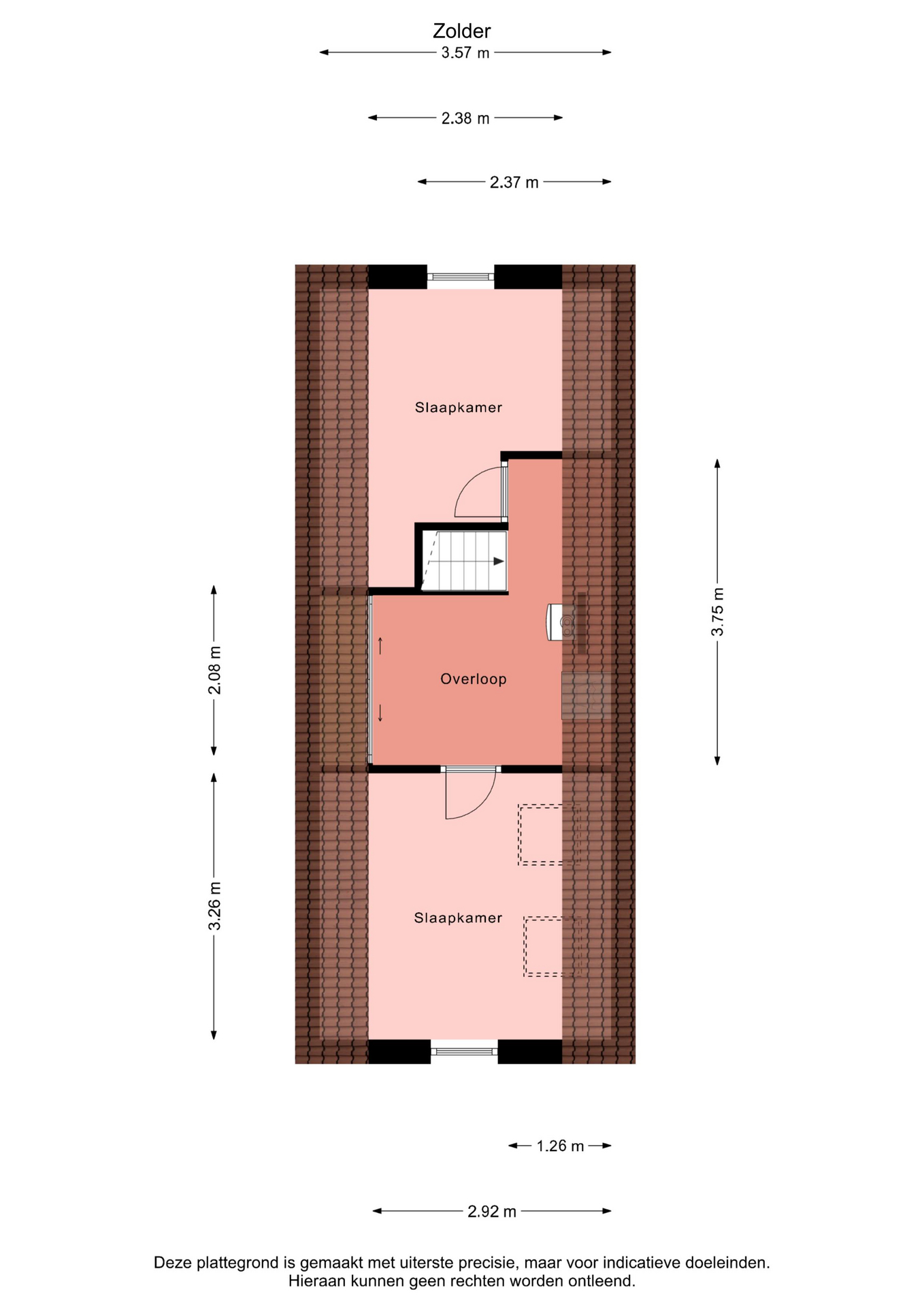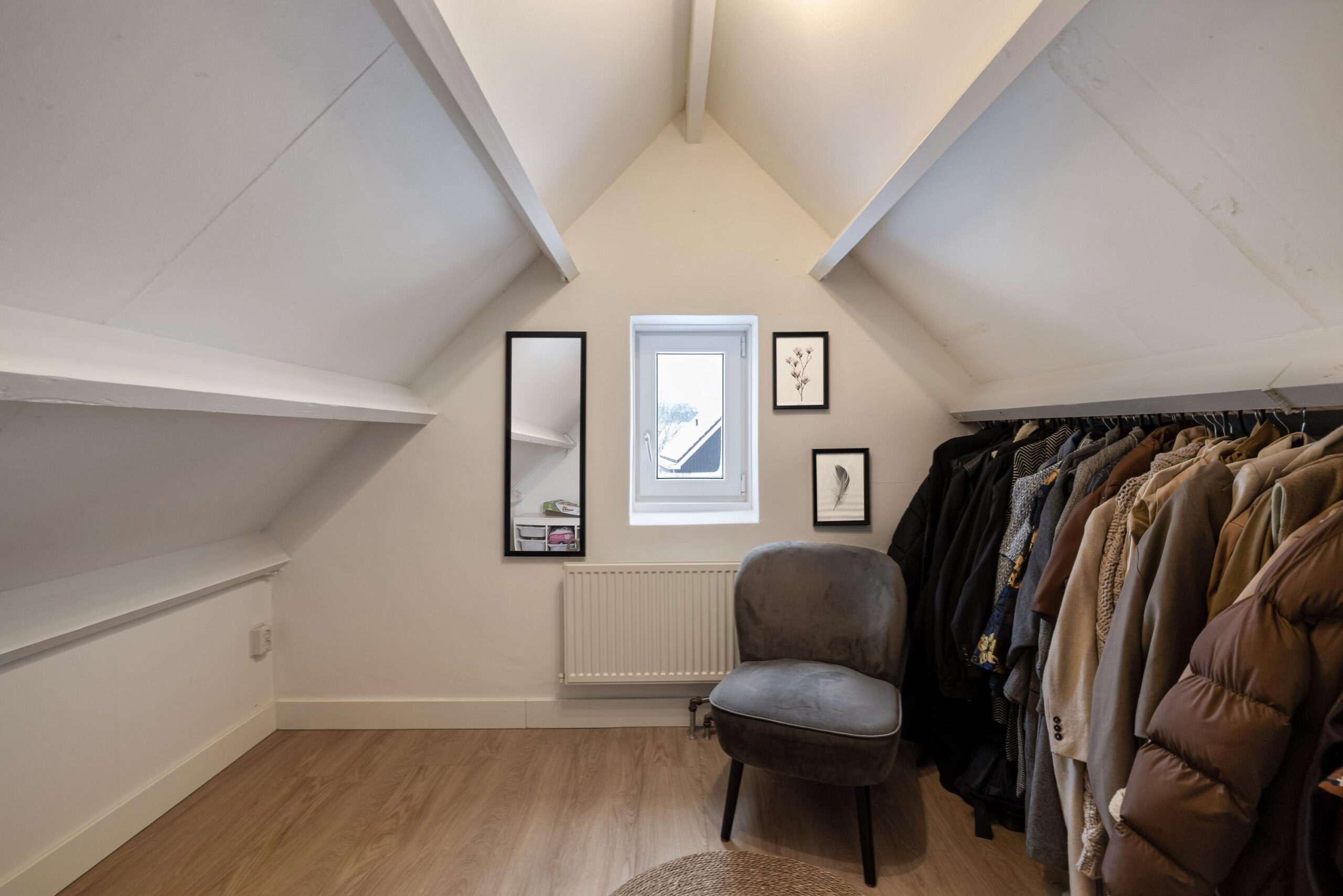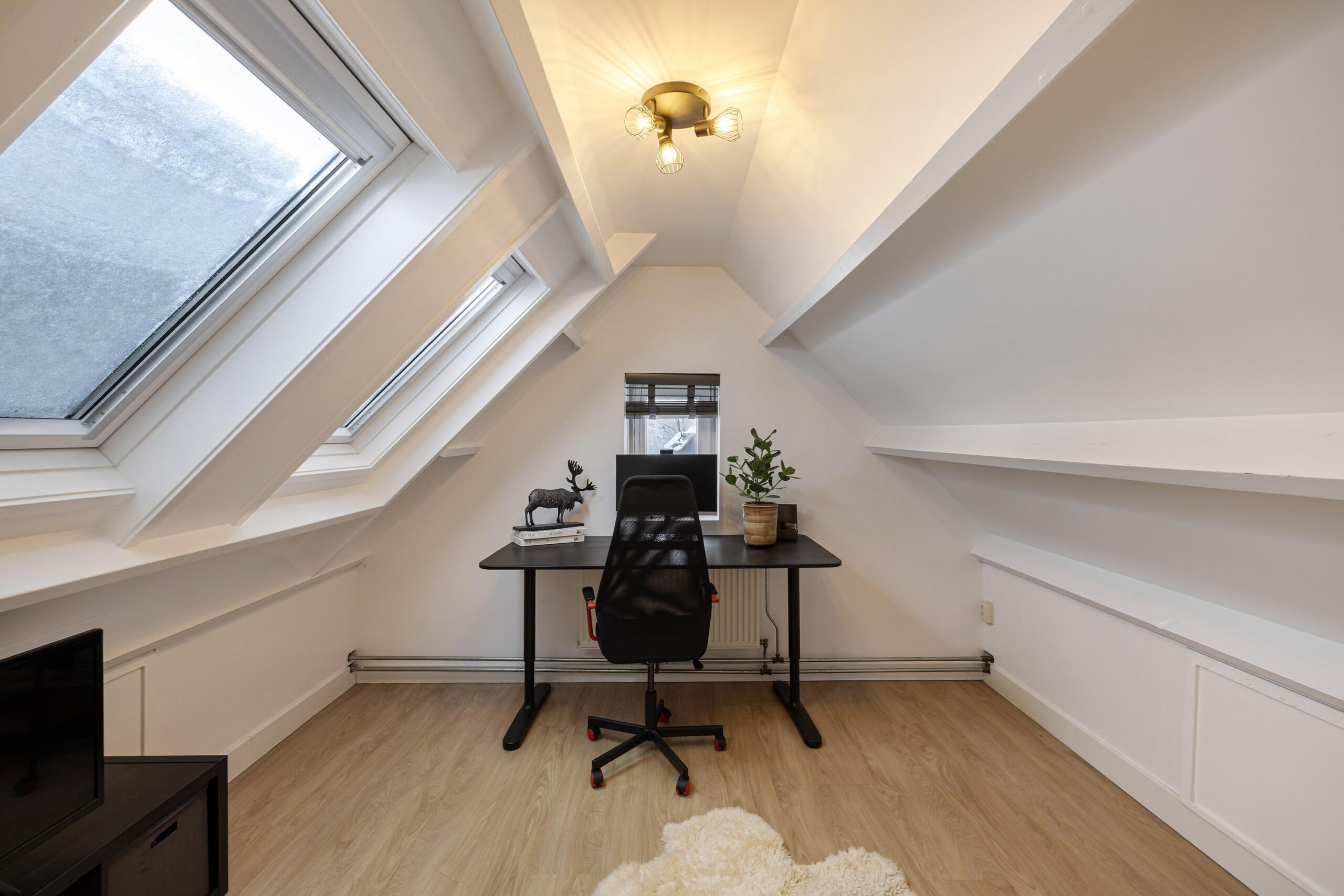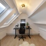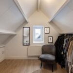 Via de vaste trap bereik je de tweede verdieping met nog twee volwaardige kamers. Aan de achterzijde bevindt zich de ruime slaapkamer met twee dakramen, aan de voorzijde een ideale werk- of hobbykamer.