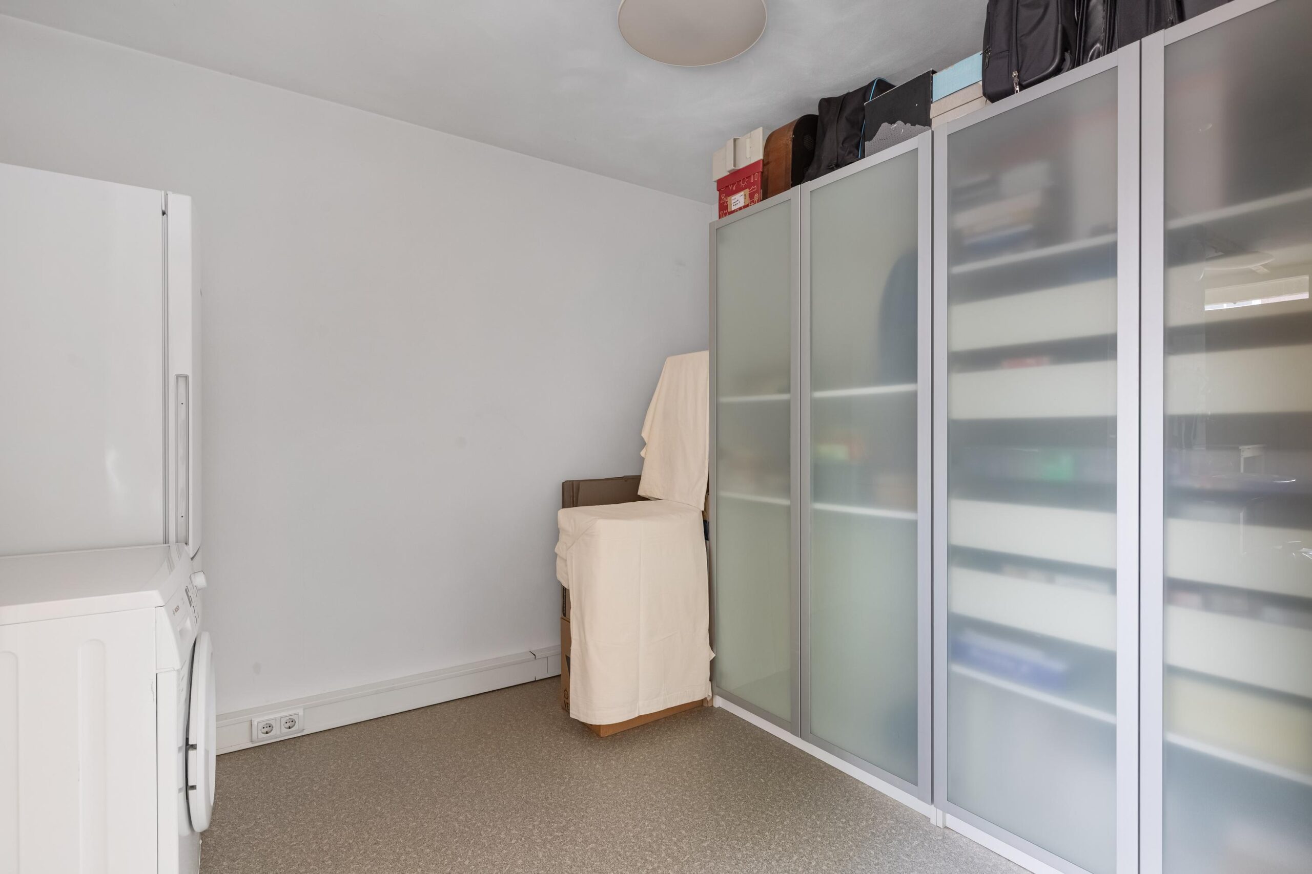 - De garage is omgebouwd tot bijkeuken/berging voorzien van de wasmachine aansluiting.