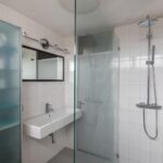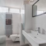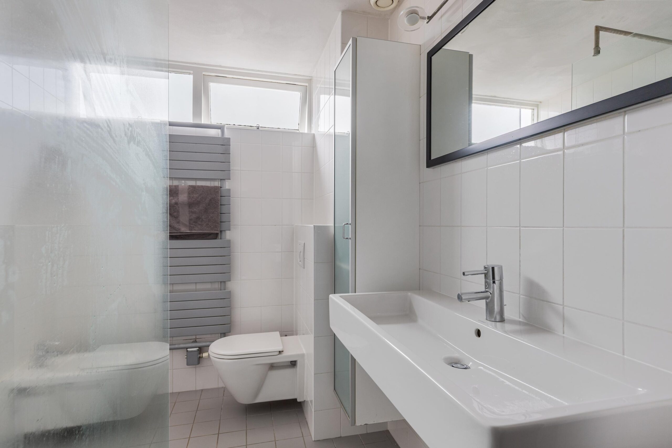 Overloop, 3 goede slaapkamers, badkamer met wastafel, toilet, bidet en inloopdouche.