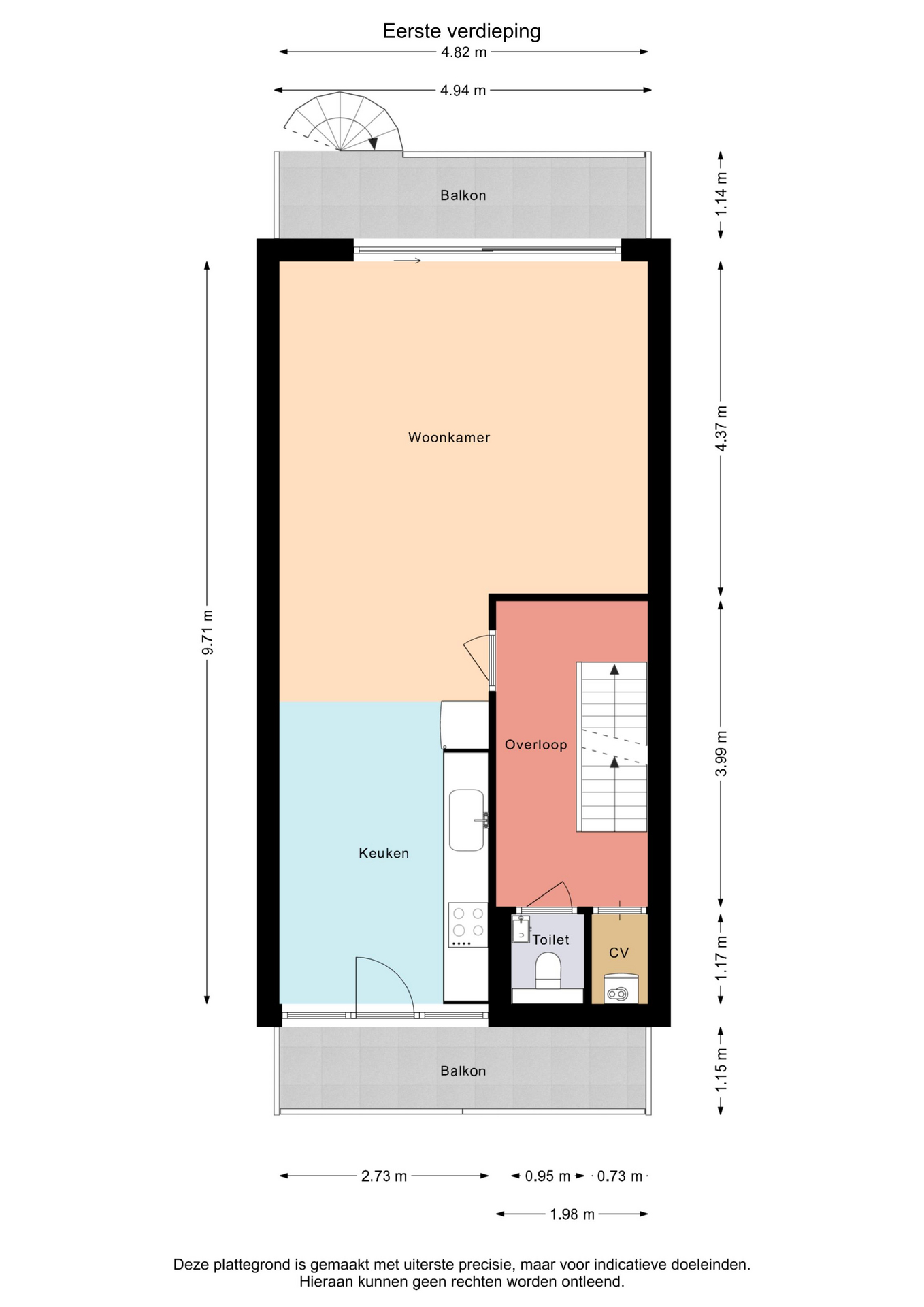 2 balkons, 1 aan de voorkant en 1 aan de achterkant.