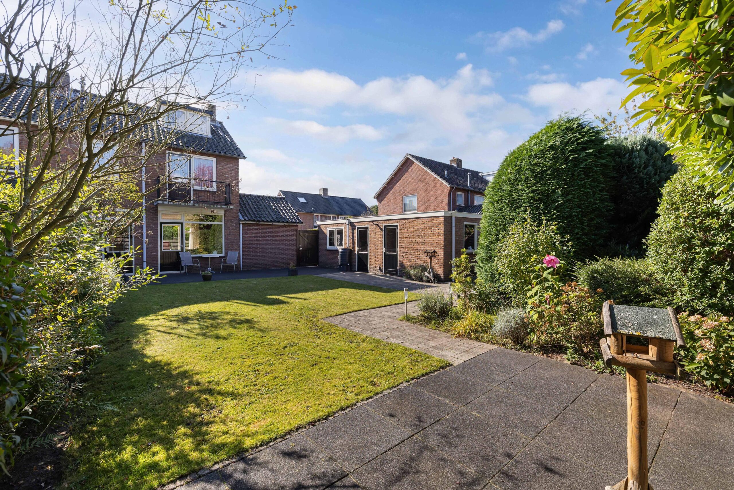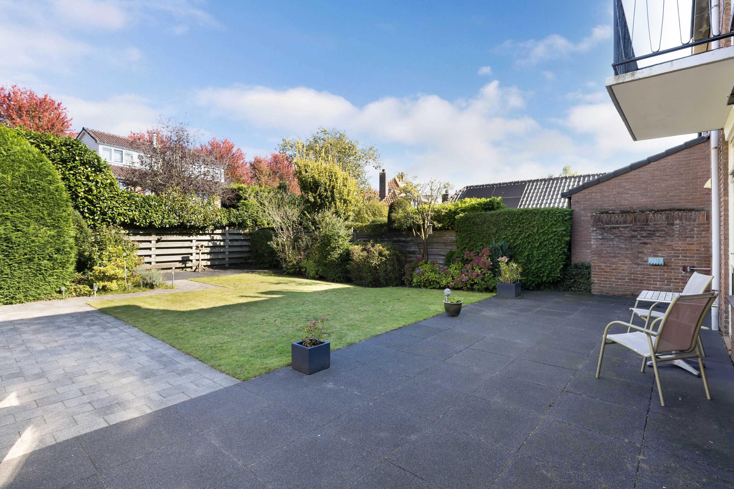 Op het perceel van bevindt zich de stenen garage en berging met een oprit voor meerdere auto's. De achtertuin is door de grote en diepte altijd zonnig gelegen en biedt veel privacy.