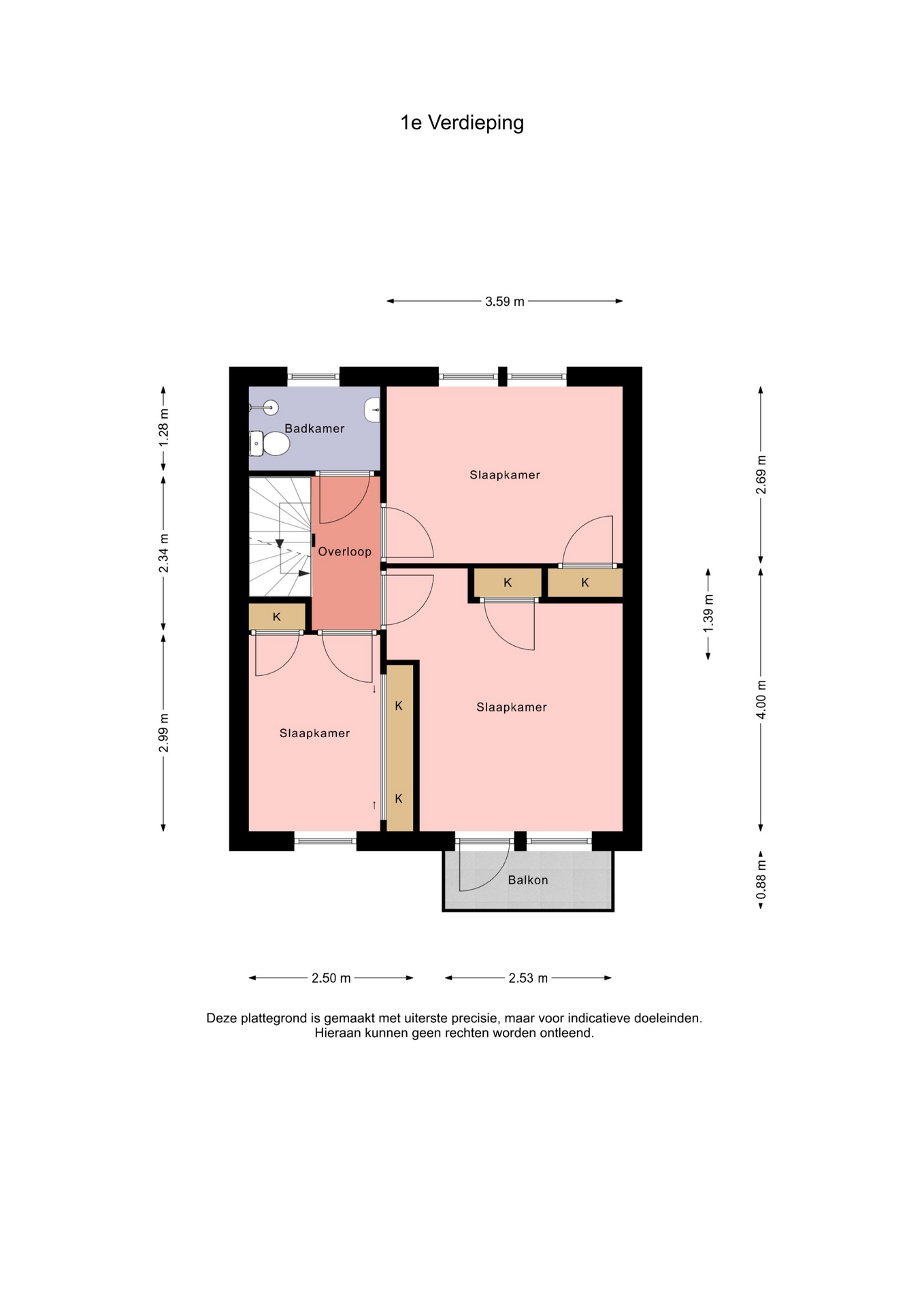 Het woonoppervlakte bedraagt 88m² waarbij de zolder niet is meegenomen. De woonoppervlakte van de 2e verdieping is goed te vergroten door middel van het plaatsen van een dakhuisje.