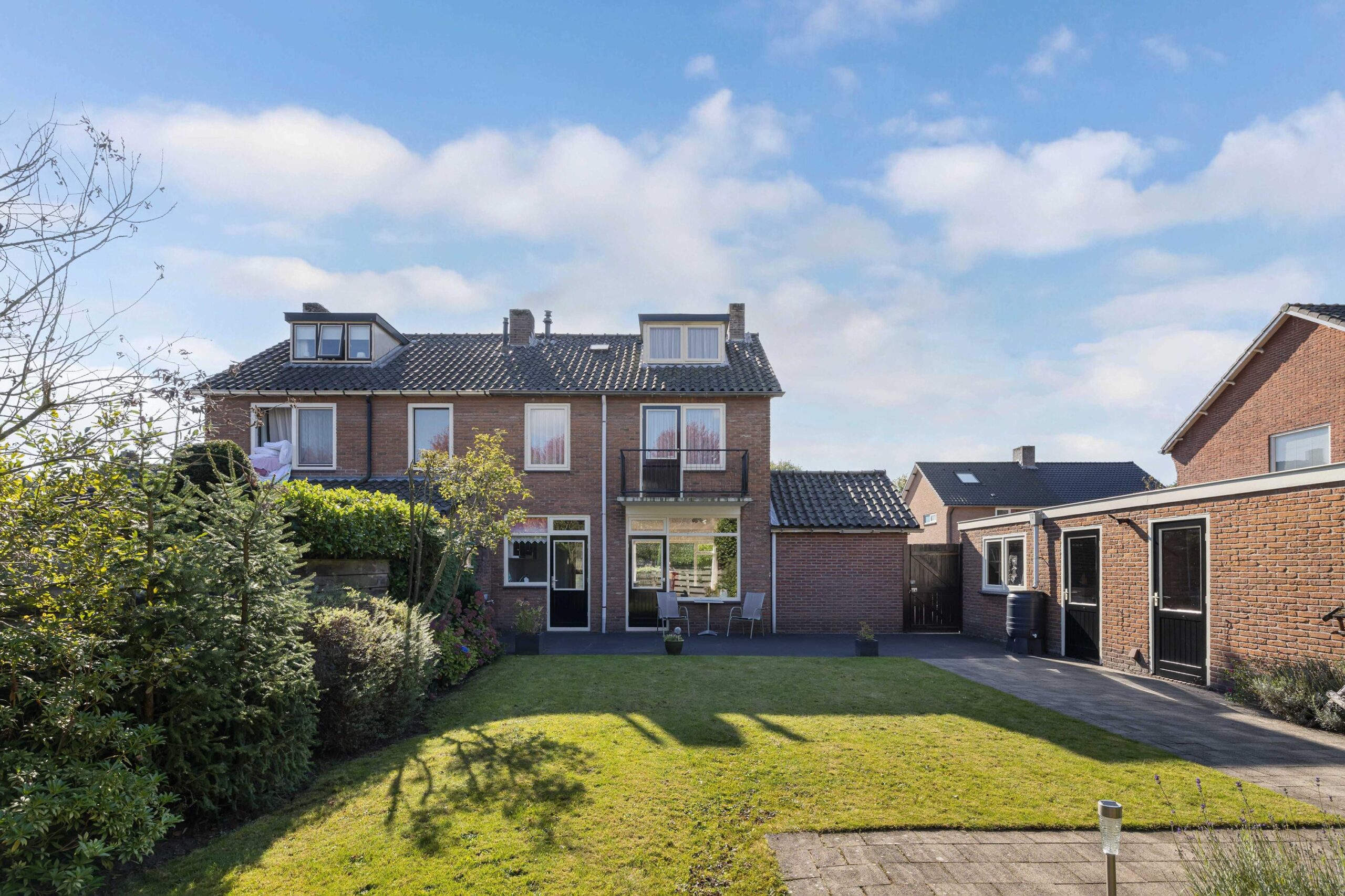 Op het perceel van bevindt zich de stenen garage en berging met een oprit voor meerdere auto's. De achtertuin is door de grote en diepte altijd zonnig gelegen en biedt veel privacy.