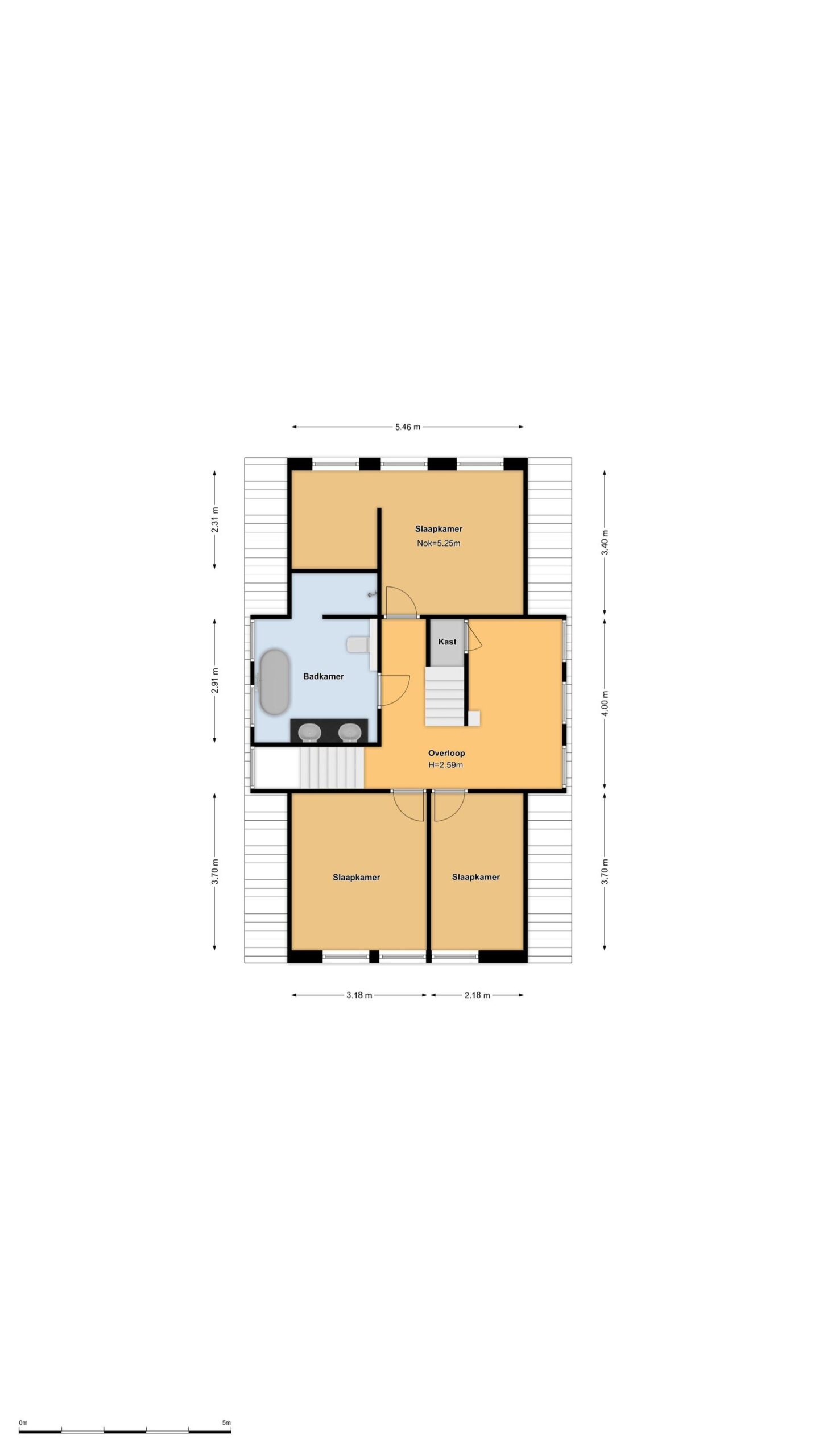 Overloop, twee slaapkamers aan de voorzijde en een riante master bedroom met hoog plafond (ca. 5 meter) met een inloopkast, gelegen aan de achterzijde. Royale badkamer voorzien van dubbele wastafel, inloopdouche, ligbad en toilet.