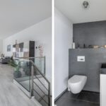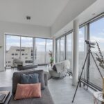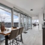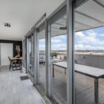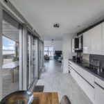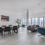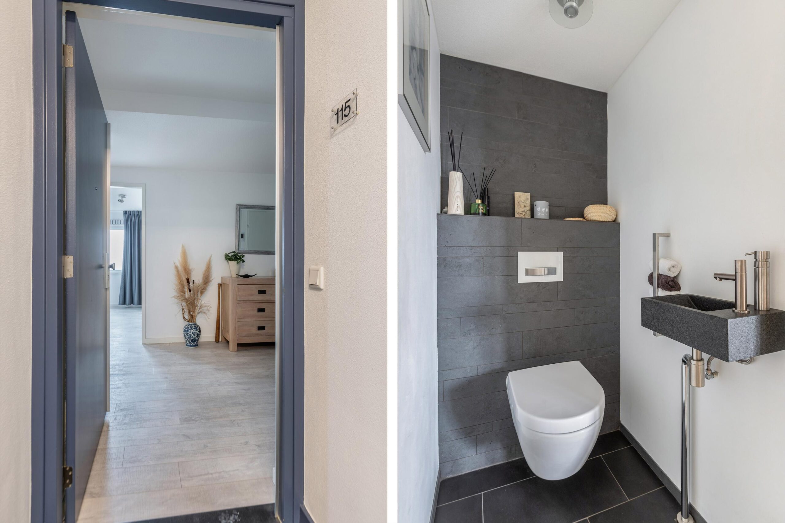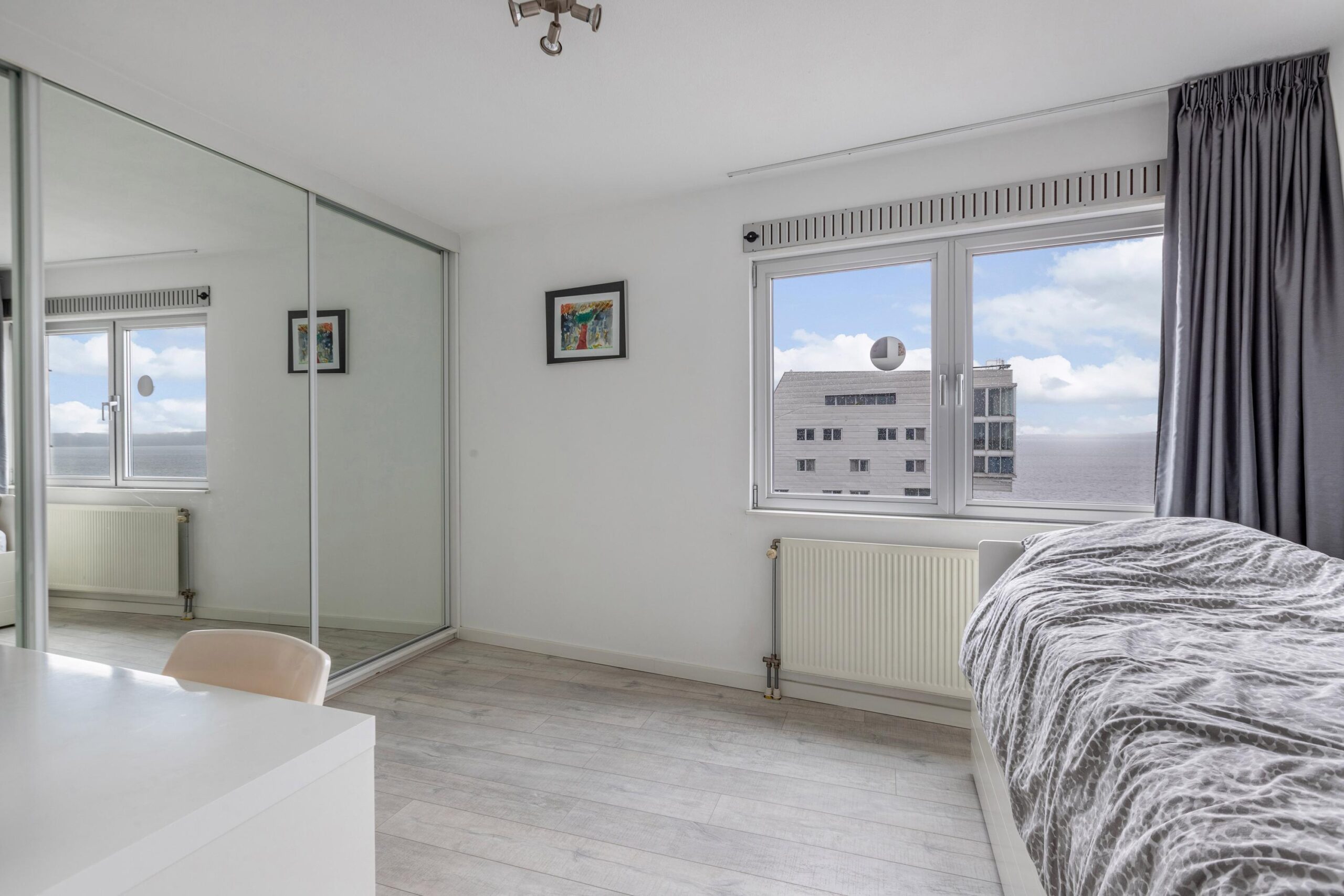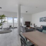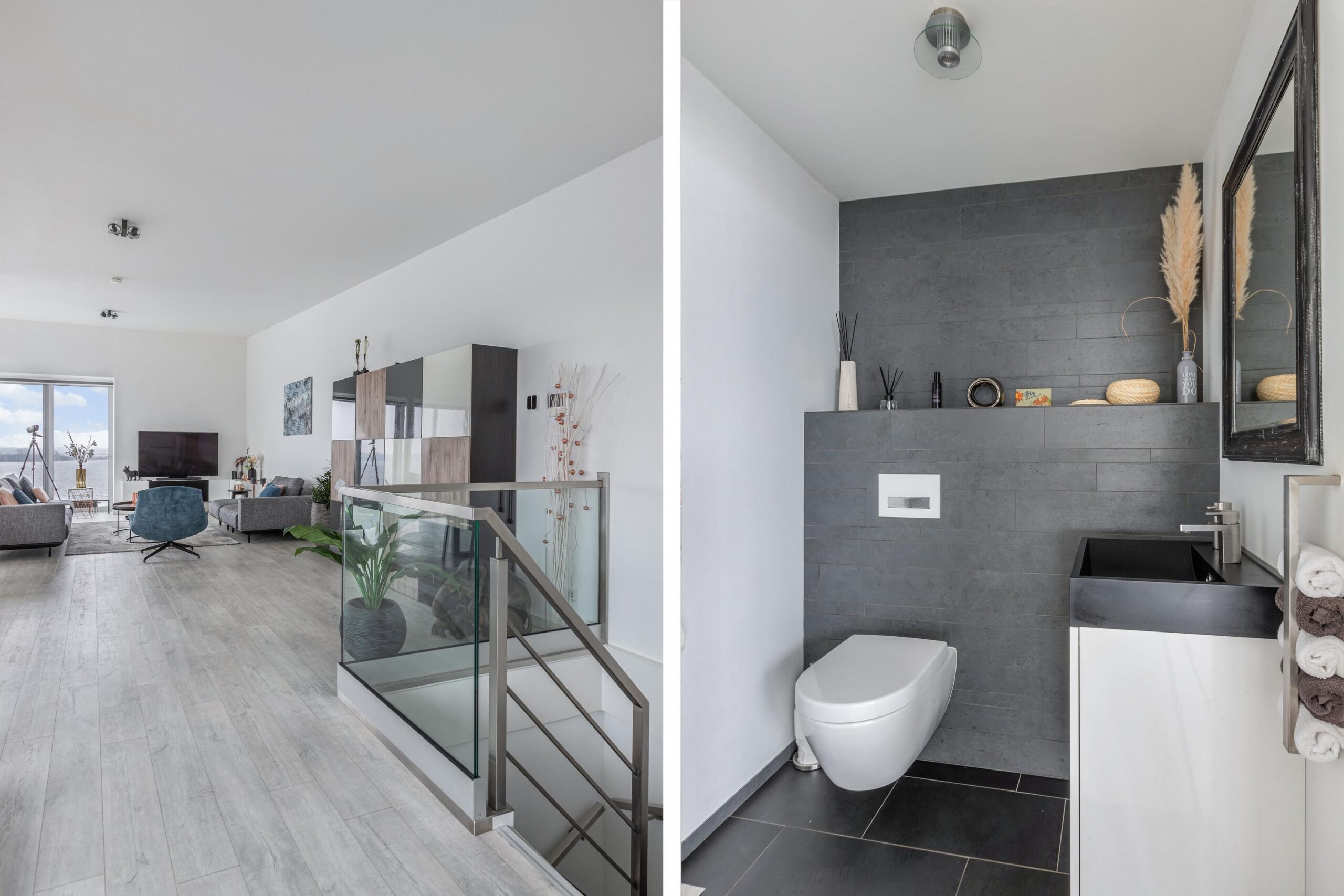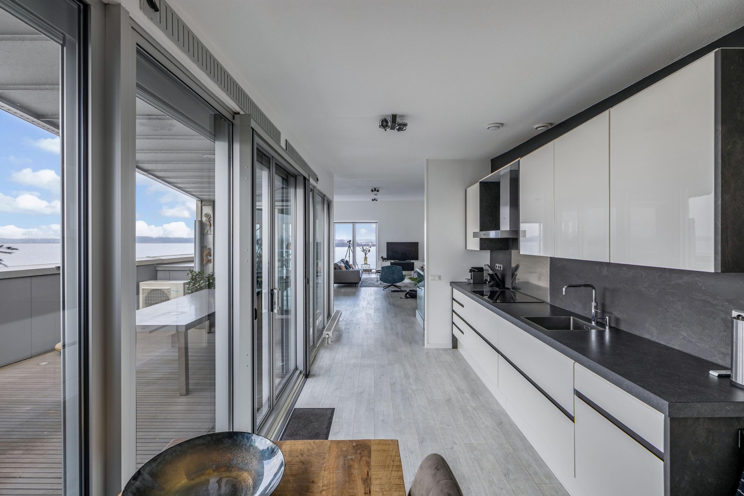 Via een vaste trap naar de riante leefruimte met werkelijk vanuit iedere hoek een schitterend panoramisch uitzicht. De leefruimte is sfeervol ingedeeld met een ruime dubbele zithoek, een eethoek en aangrenzend een luxe en complete keuken. De keuken is stijlvol en modern, uitgerust met divers luxe apparatuur zoals een combi-oven, vaatwasmachine, inductie kookplaat, afzuigkap, koelkast en een Quooker, berging/bijkeuken, toilet. Toegang via schuifpui tot het heerlijke ruime dakterras met een vorstvrije buitenkraan en verschillende contactdozen. Het appartement is volledig geïsoleerd (energielabel A) en voorzien van vaste muurafwerking.