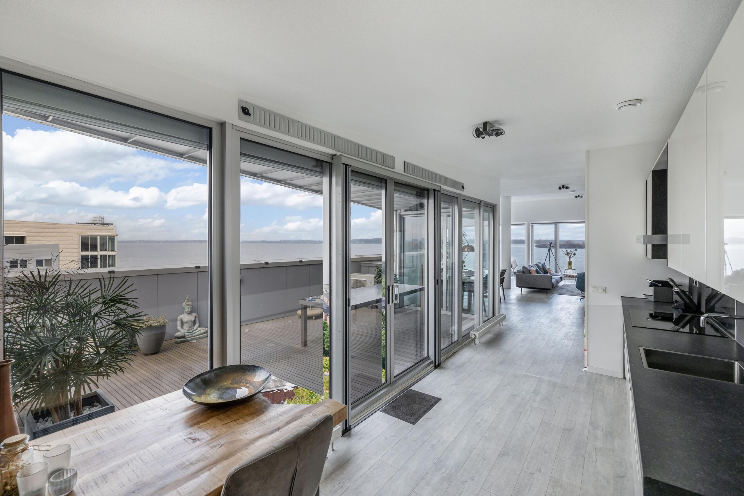 OP EEN VAN DE MOOISTE PLEKJES van HUIZEN, in het GOOIMEER GELEGEN MODERN PENTHOUSE MET WAANZINNIG UITZICHT.