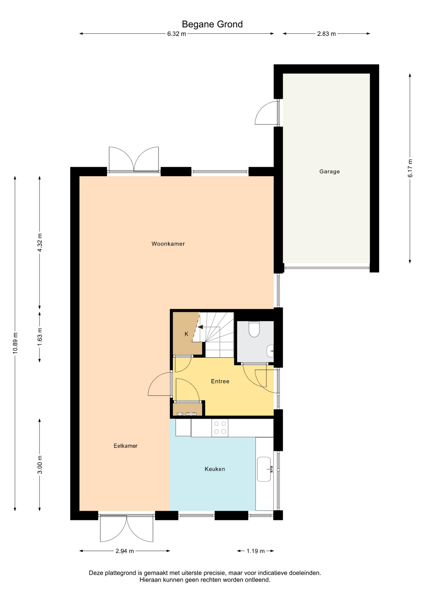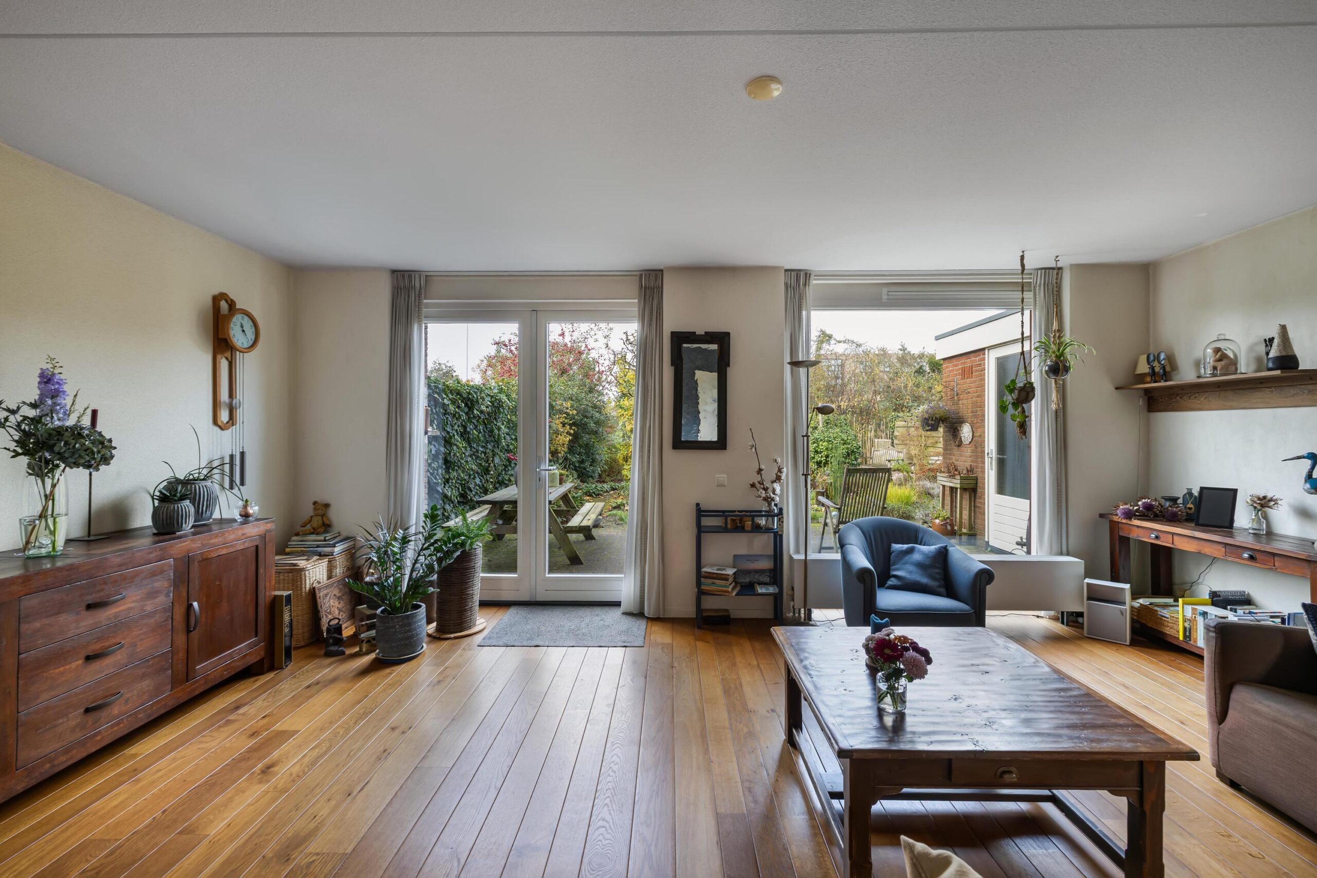 Entree met hal, meterkast, bergkast en toilet. De lichte woonkamer heeft openslaande deuren naar de achtertuin en biedt een fijne, ruime leefomgeving. Aan de voorzijde ligt de lichte open keuken, eveneens met openslaande deuren naar de voortuin. De keuken(Siematic) is voorzien van diverse inbouwapparatuur (Siemens) en biedt veel bergruimte. De gehele begane grond is afgewerkt met een massief houten vloer, behalve plavuizen in de keuken.