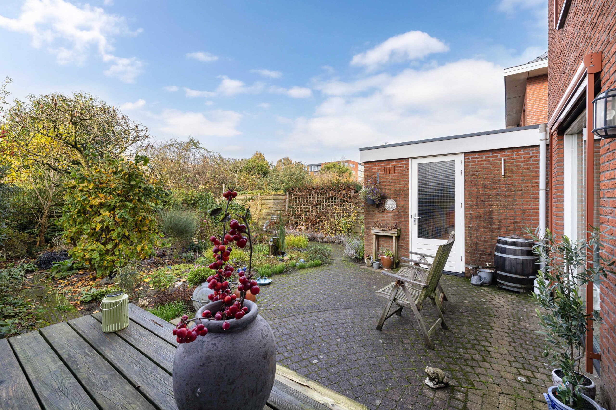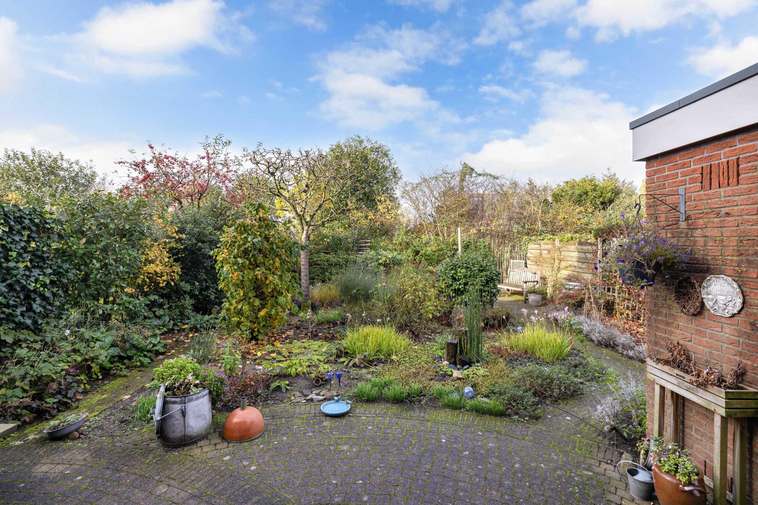 De zonnige achtertuin is gelegen op het westen en biedt veel privacy. Aan de achterzijde is er vrij uitzicht zonder directe achterburen, wat zorgt voor een gevoel van rust en ruimte. Dankzij de gunstige ligging is er de hele dag door een plekje in de zon te vinden. De aangebouwde garage is bereikbaar vanuit de tuin én vanaf de oprit. Op eigen terrein is voldoende ruimte voor meerdere auto’s.