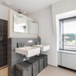 Op de verdieping bevinden zich twee riante slaapkamers, een kinderkamer, een ruime badkamer en een afzonderlijke toilet. De slaapkamers zijn voorzien van ruime linnenkasten en de badkamer is voorzien van een dubbele wastafel en een inloopdouche.