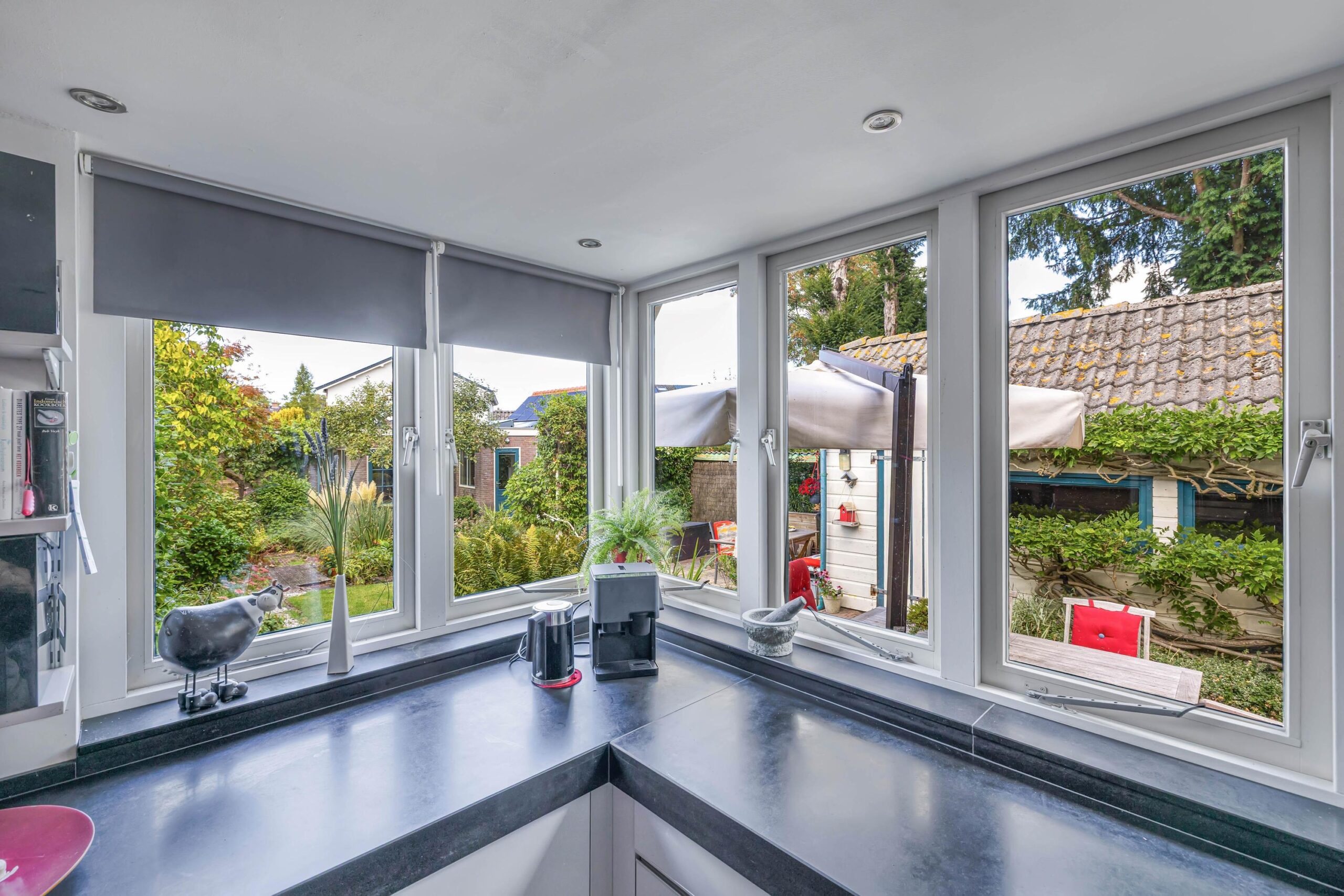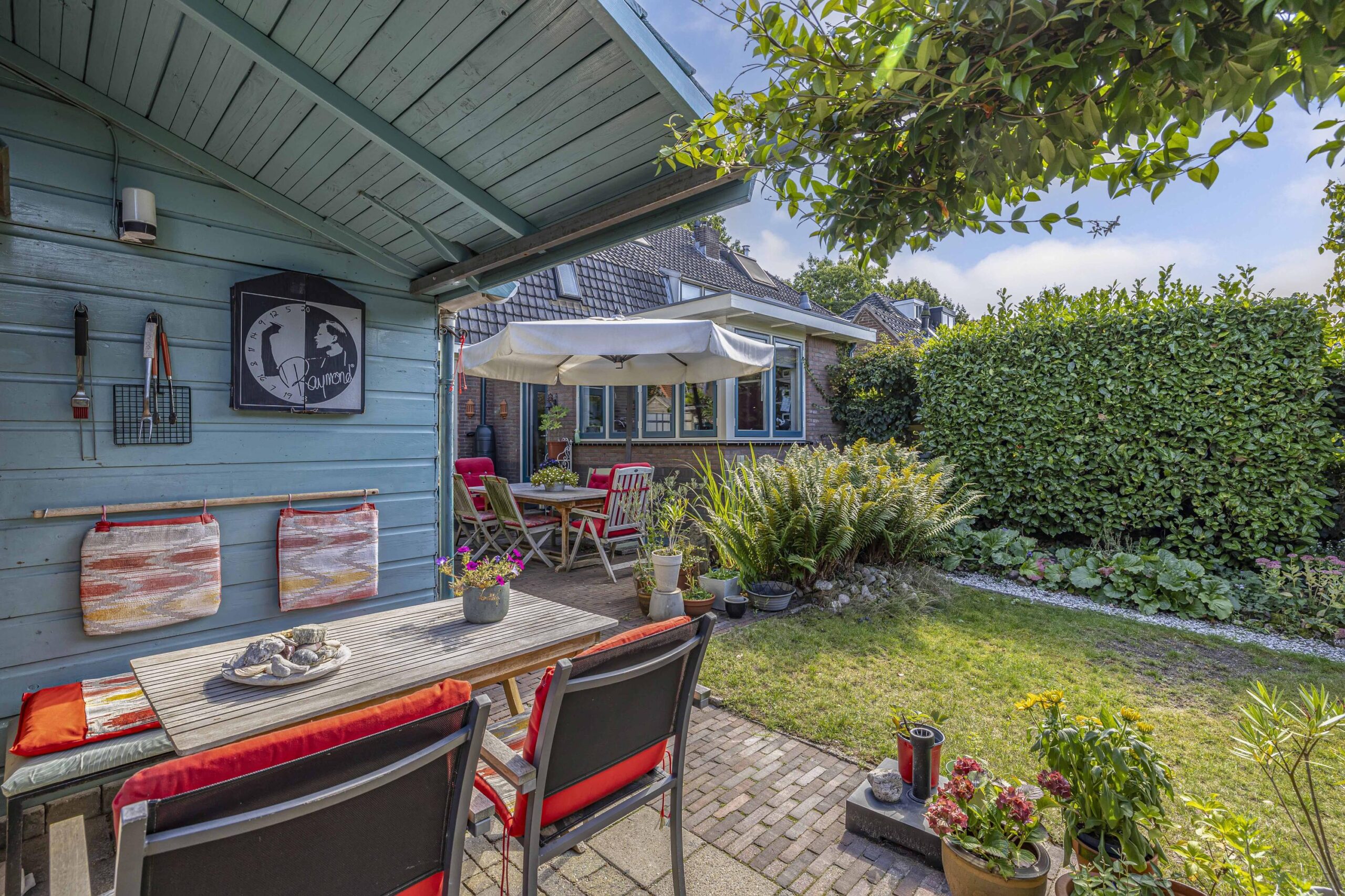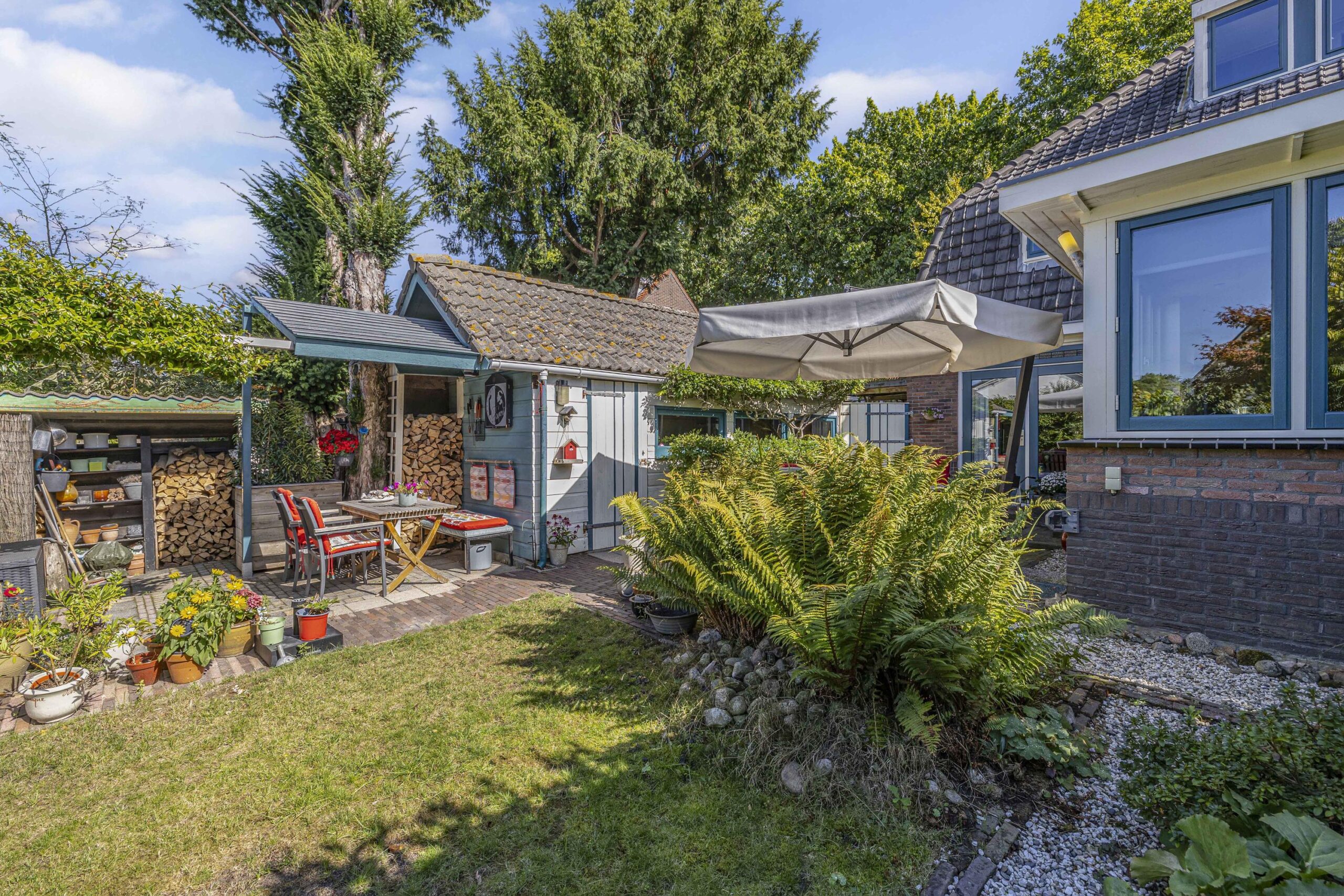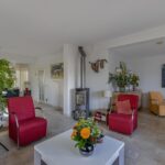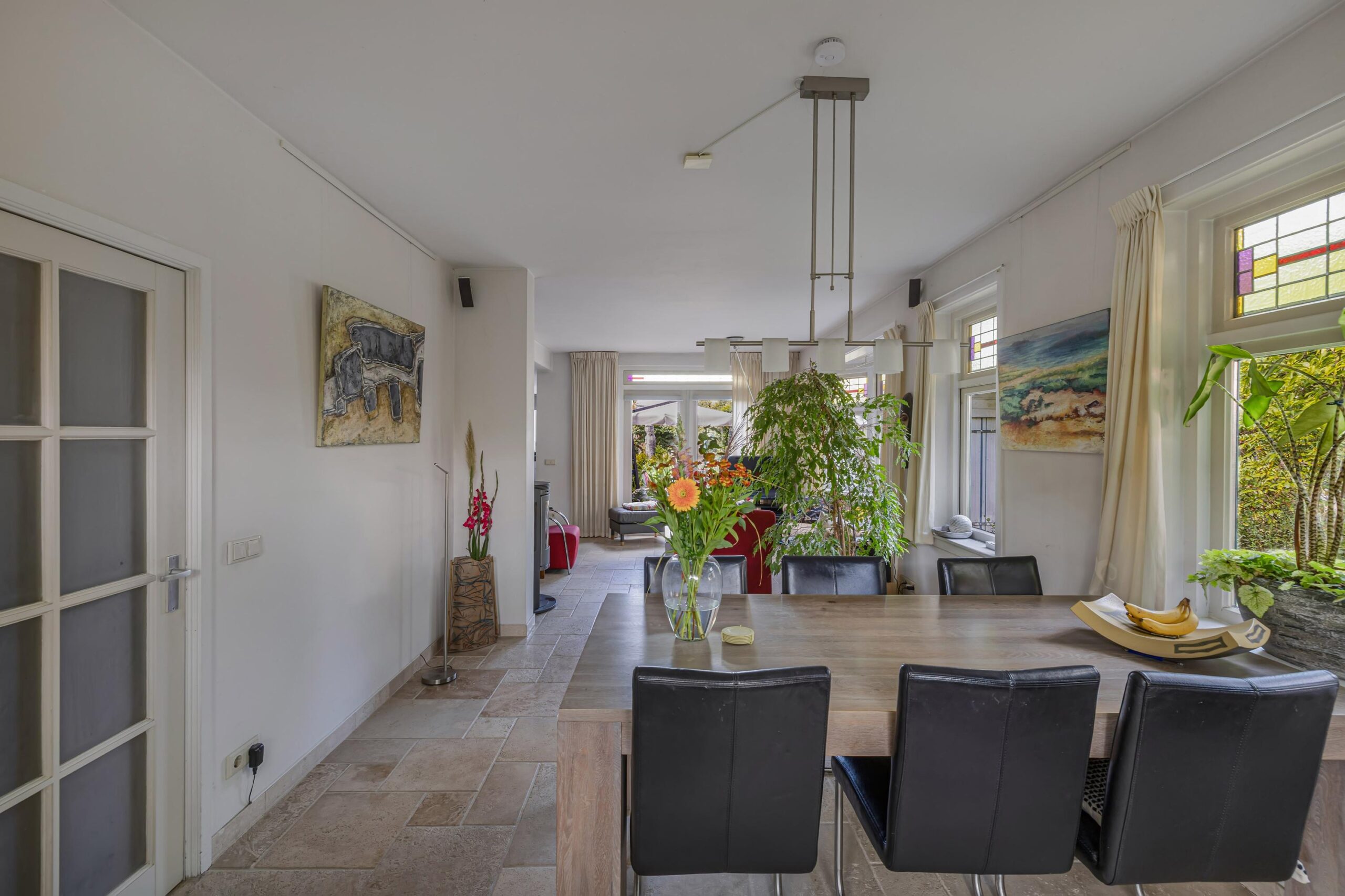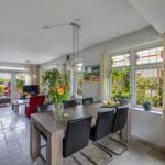 De royale woonkamer met vloerverwarming en een knisperende houtkachel nodigt uit tot lange avonden samen, en via de openslaande deuren wandel je zó de zonnige en diepe achtertuin in – jouw eigen groene oase vol fruitbomen en veel privacy.