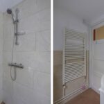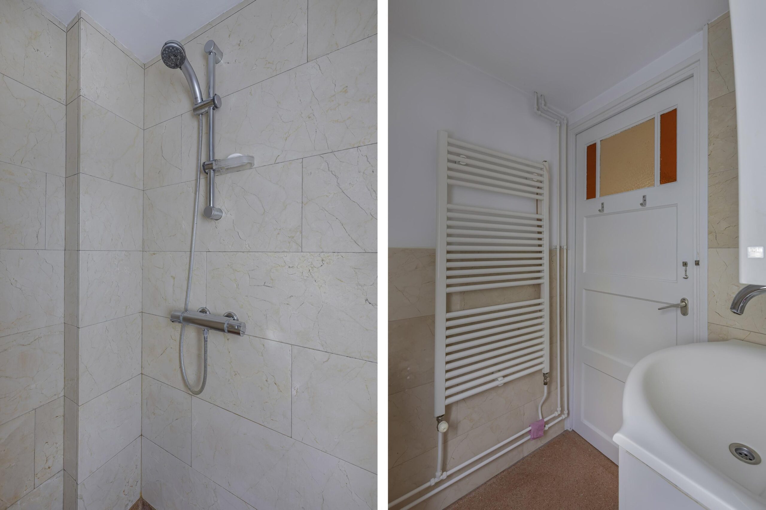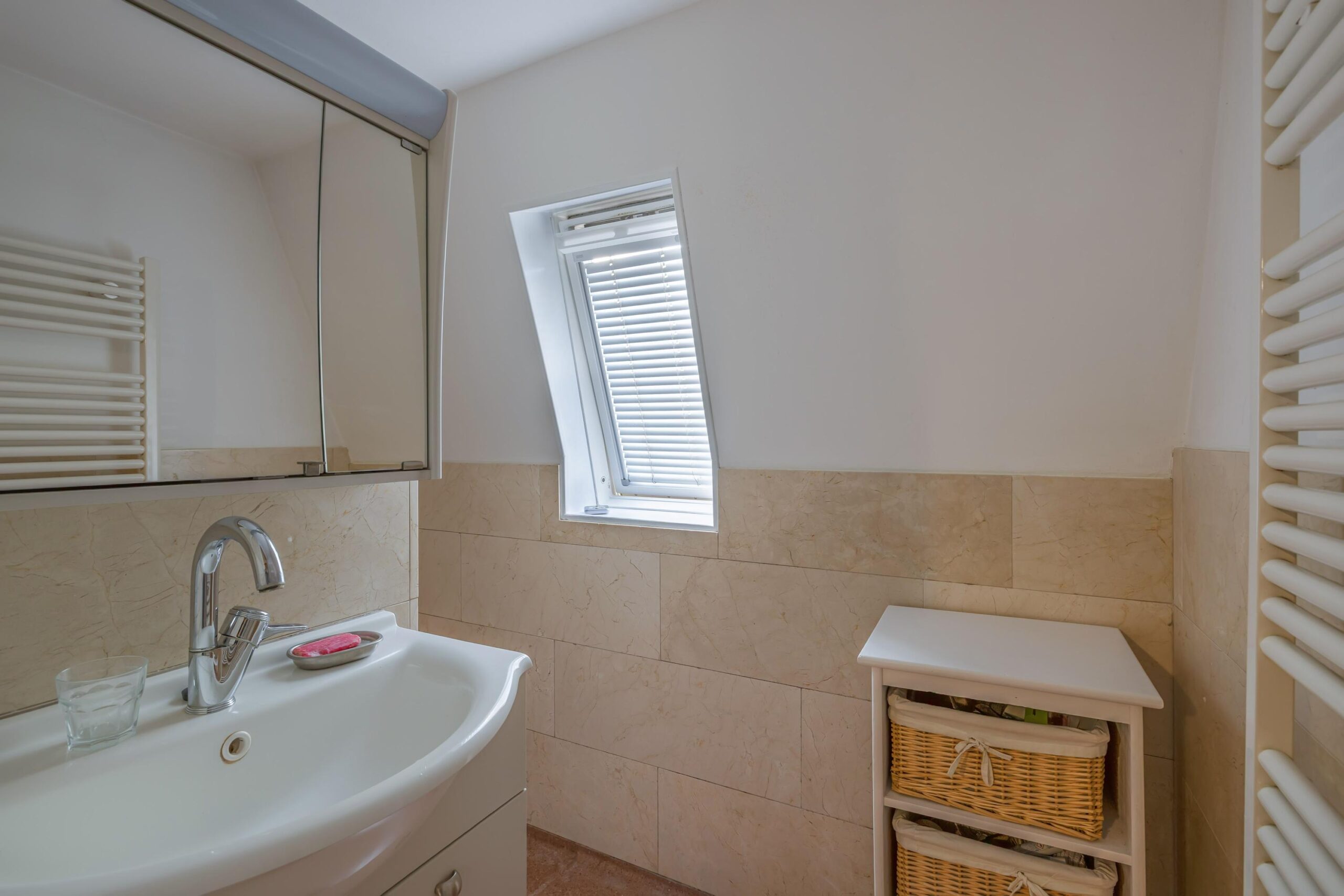 Boven vind je een slaapkamer met vaste kast, een badkamer met inloopdouche en een royale ouderslaapkamer met wastafel.