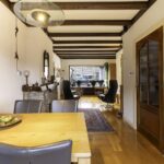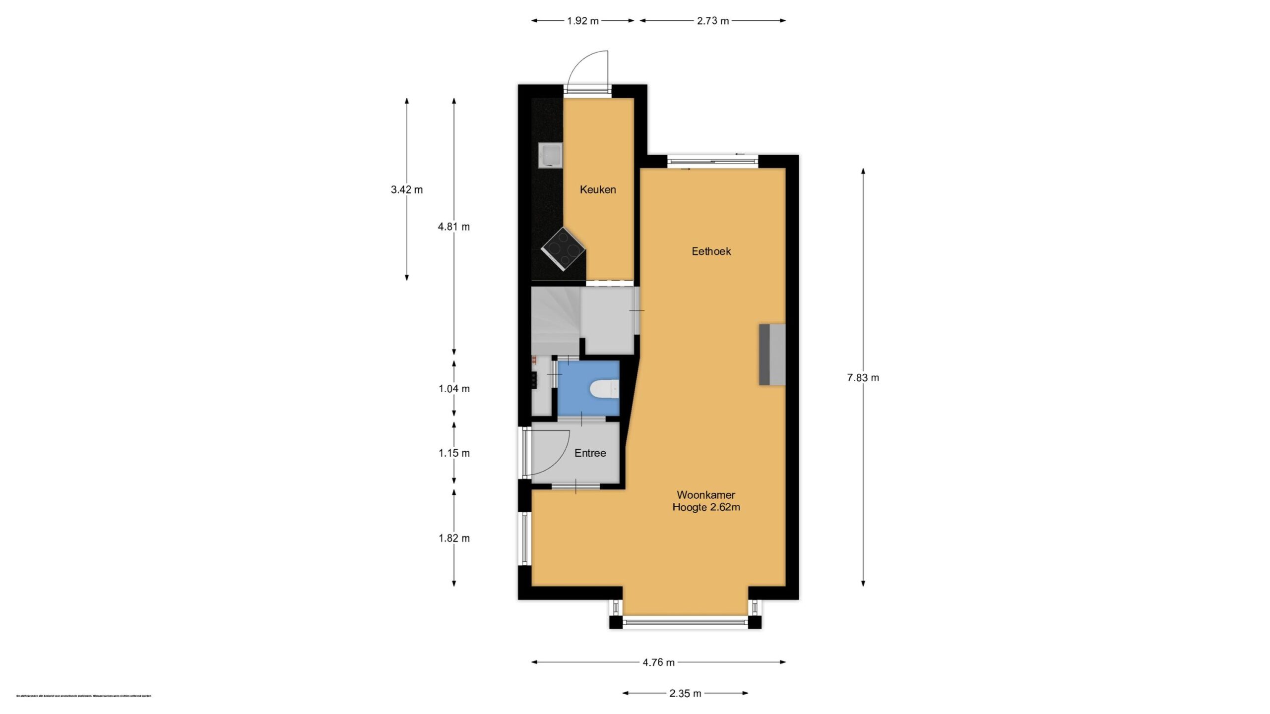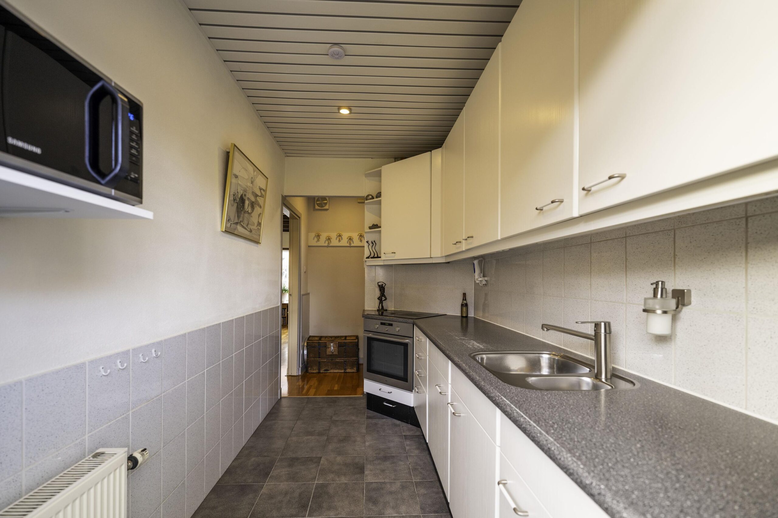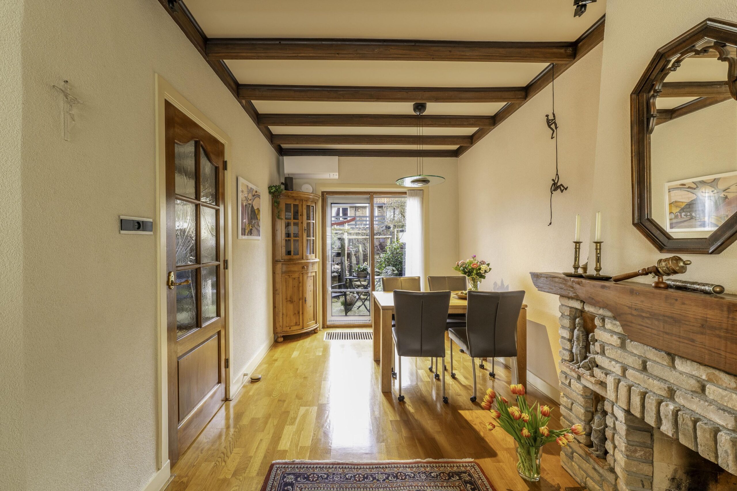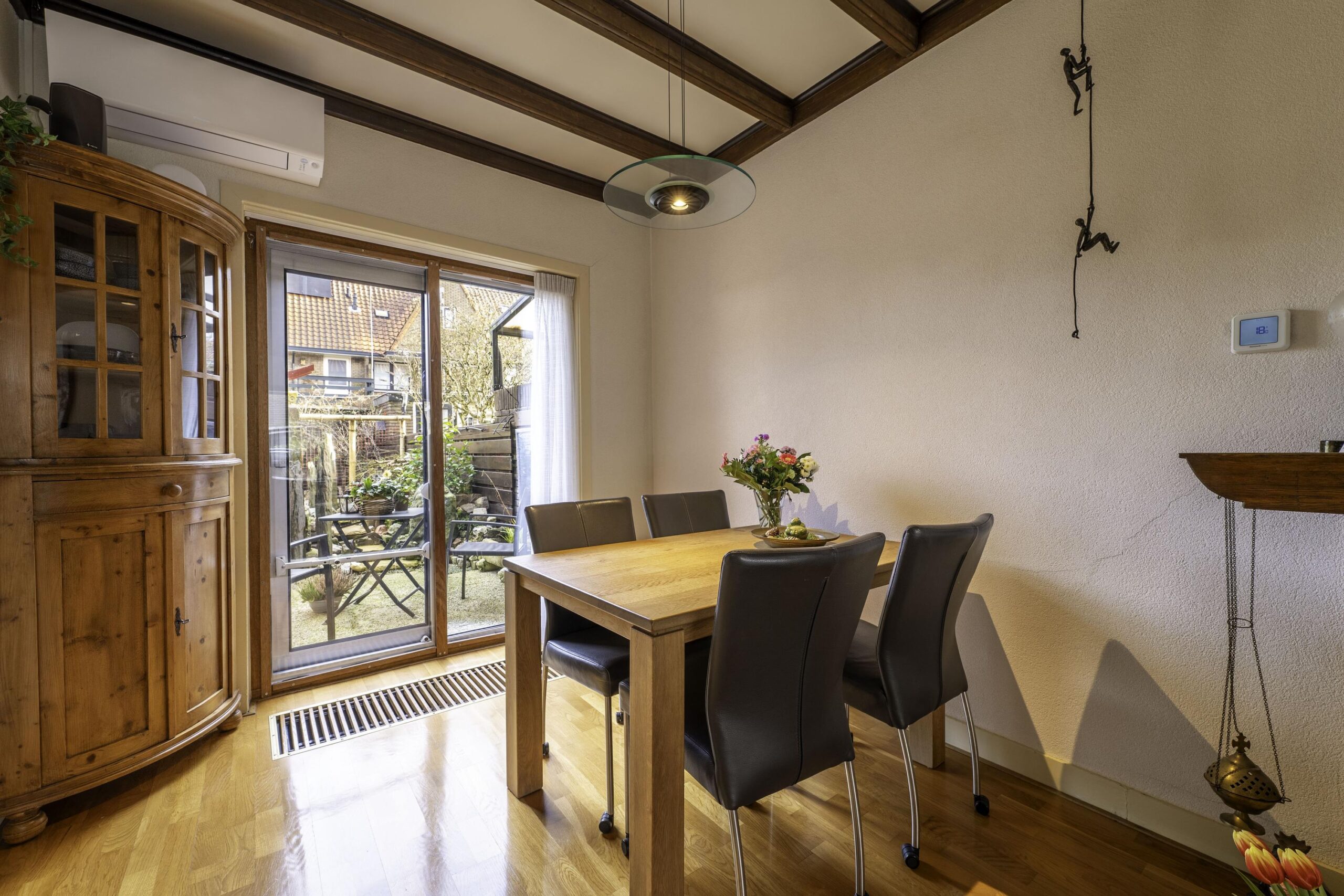 Entree/hal met toilet, ruime woonkamer met veel daglicht en ruimte voor zowel een sfeervolle zithoek als eethoek, praktische keuken met inbouwapparatuur, directe toegang tot de achtertuin.