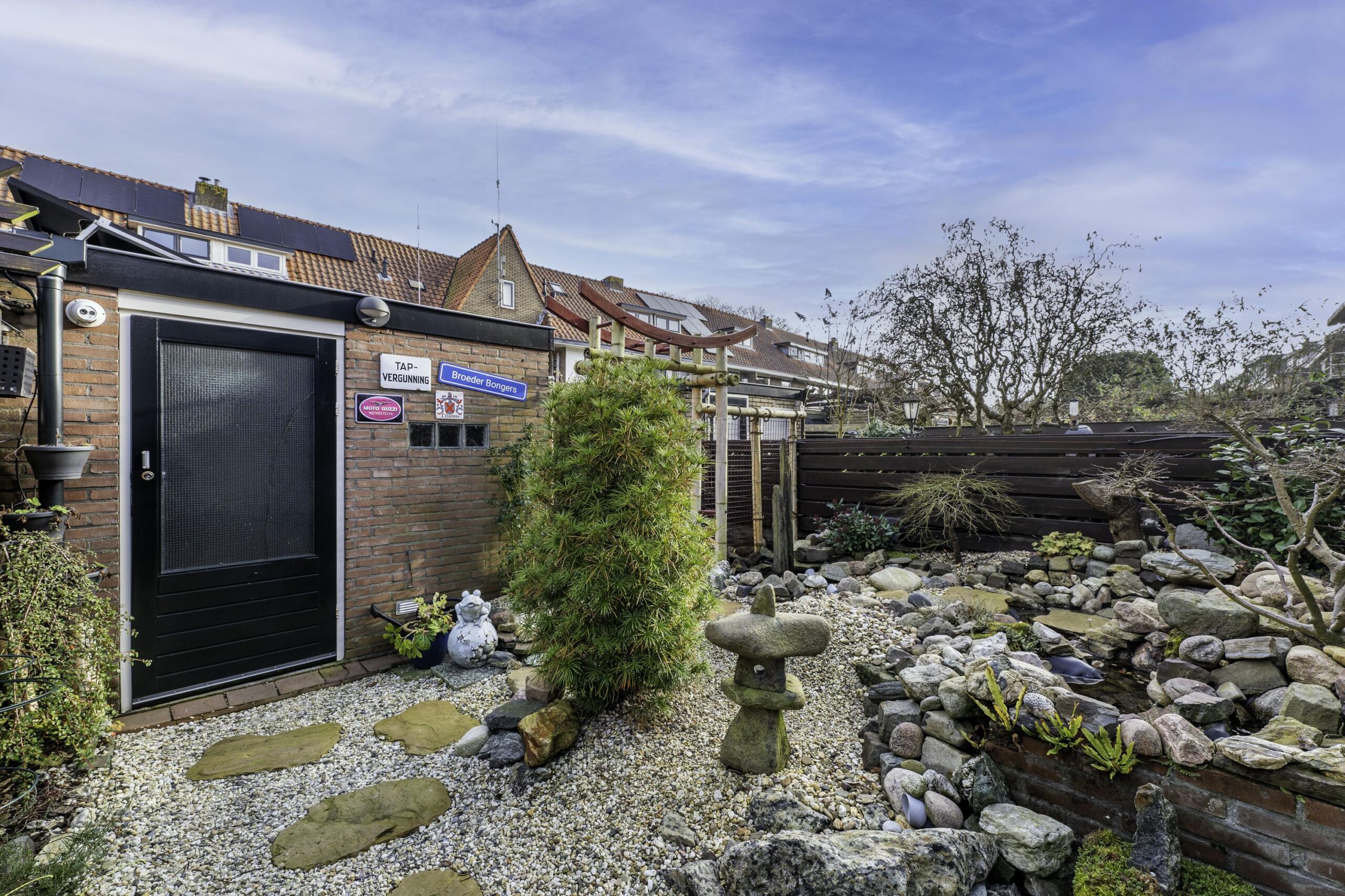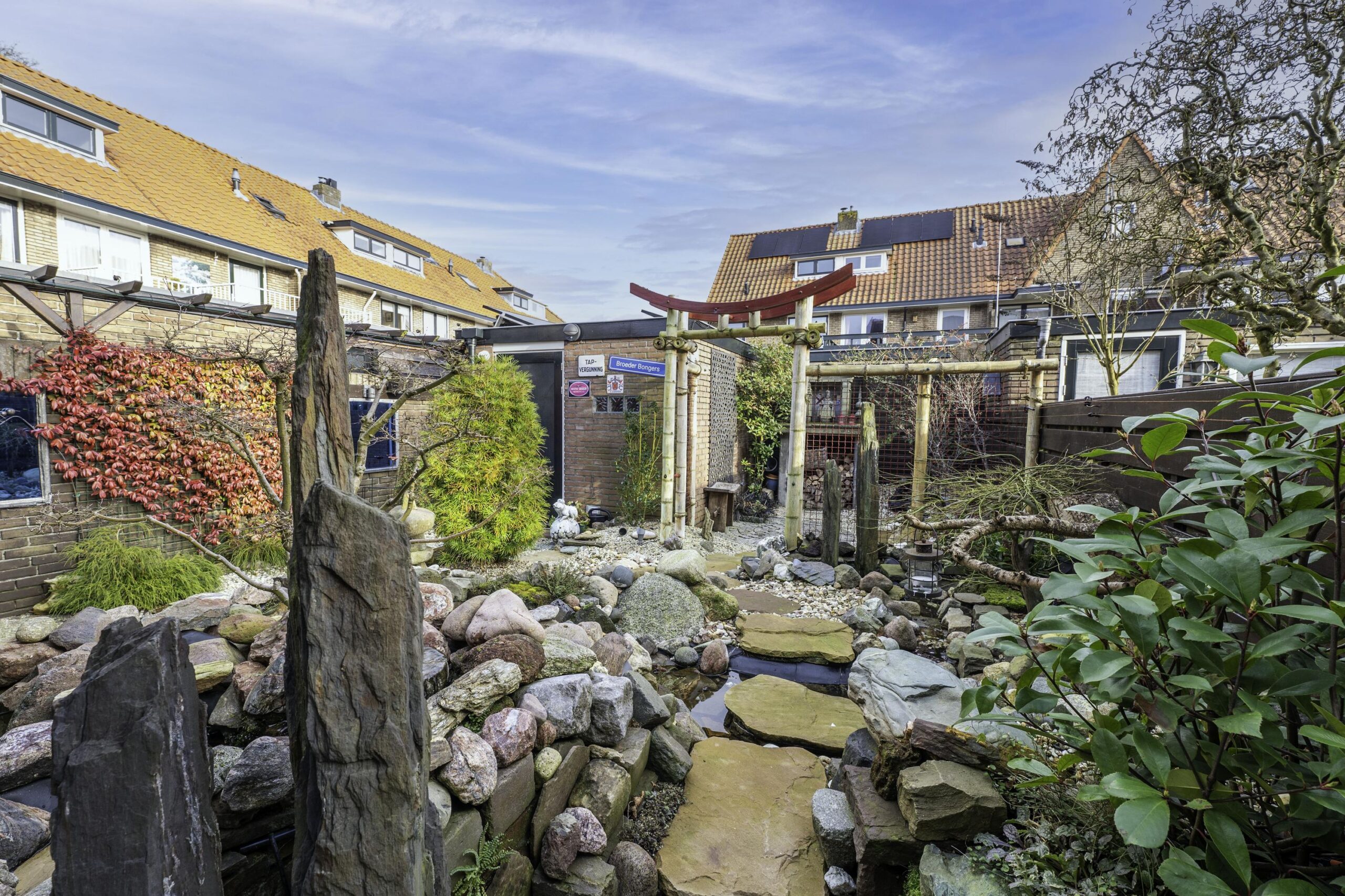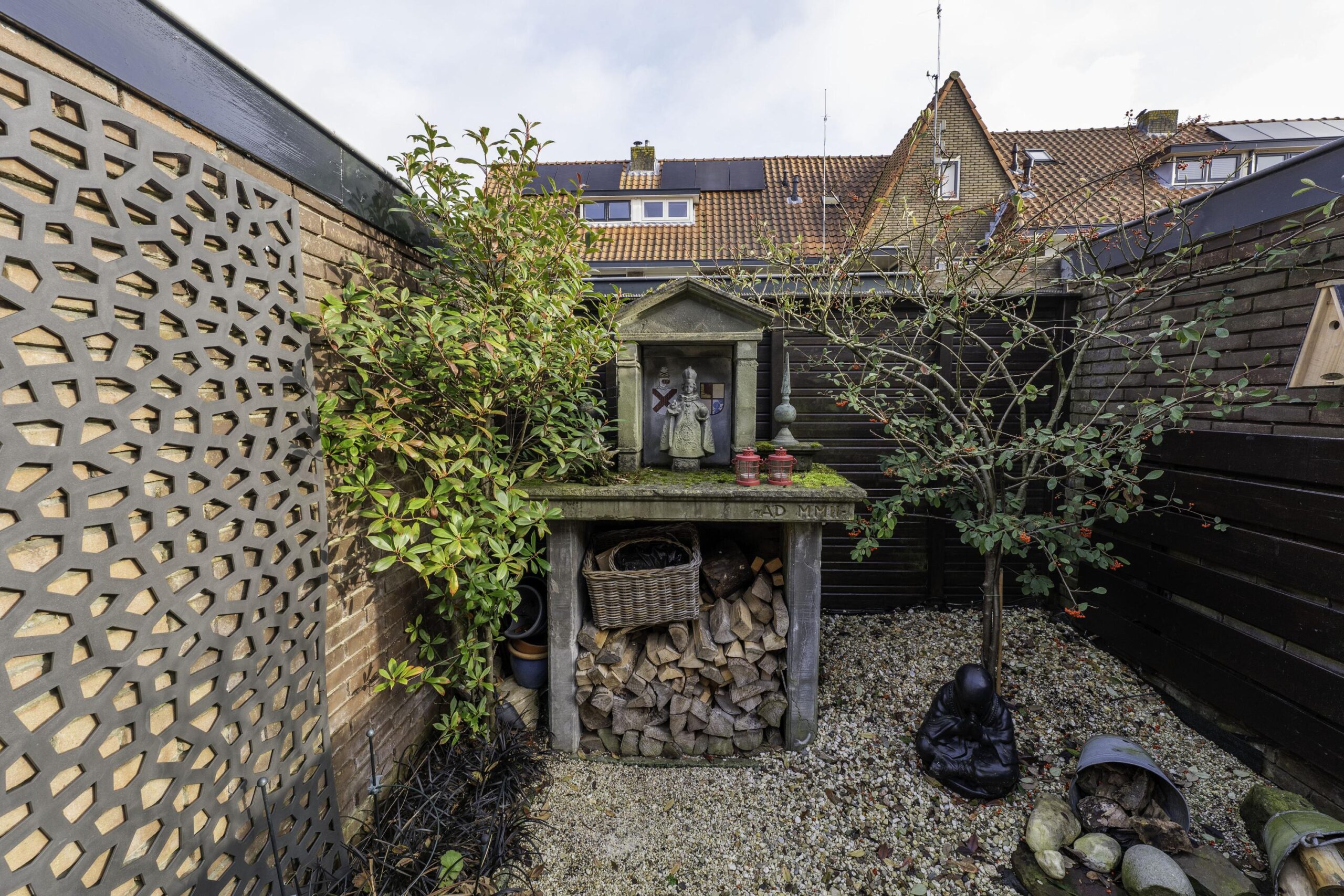 Fraai aangelegde achtertuin op het oosten, voorzien van een berging.