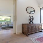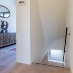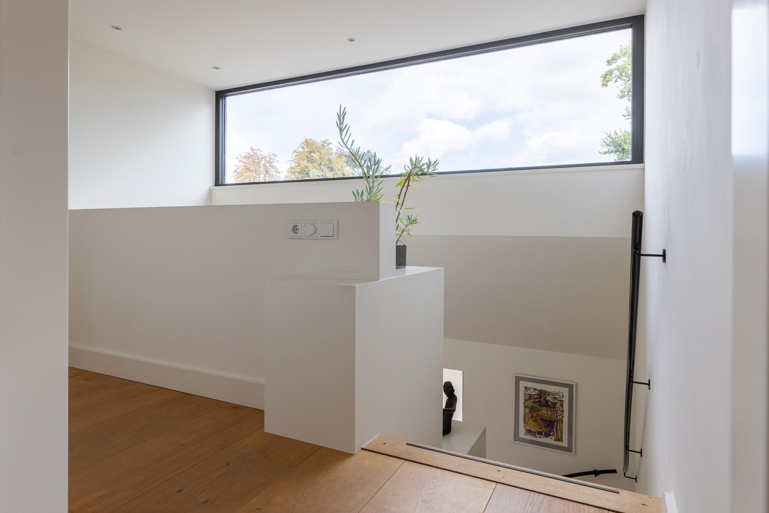 Ruime entree met vide en trapopgang naar eerste etage, garderobe, en toilet met fontein, doorgang naar de ruimtelijk opgezette woonkamer met een hoge vide en grote ramen waardoor als u naar buiten kijkt een prachtig dorpsgezicht ziet.