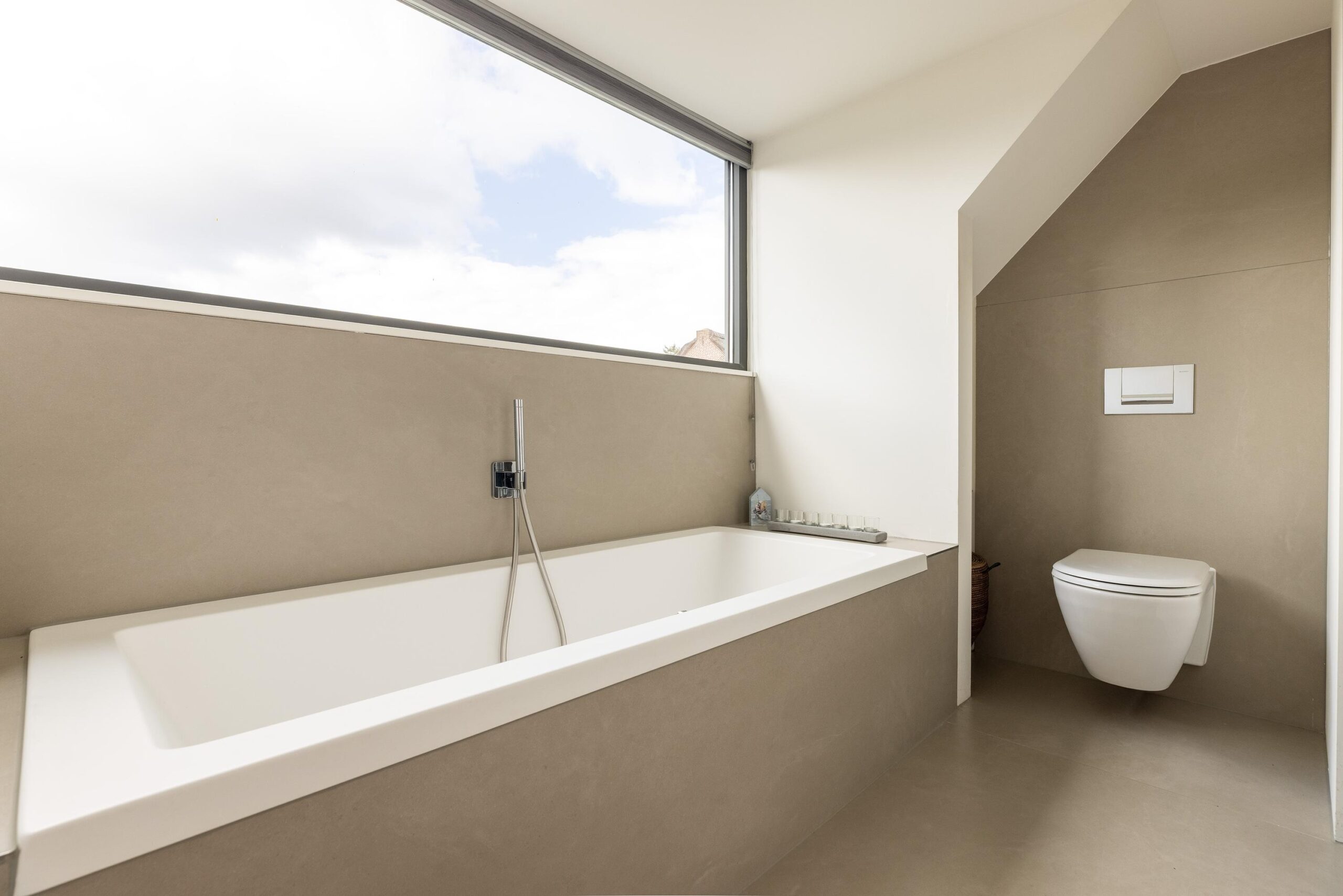verder biedt deze verdieping nog een grote slaapkamer met daglichttoetreding en een kleinere kamer met eventuele aansluiting wasmachine /droger. Deze verdieping is geheel voorzien van vloerverwarming.