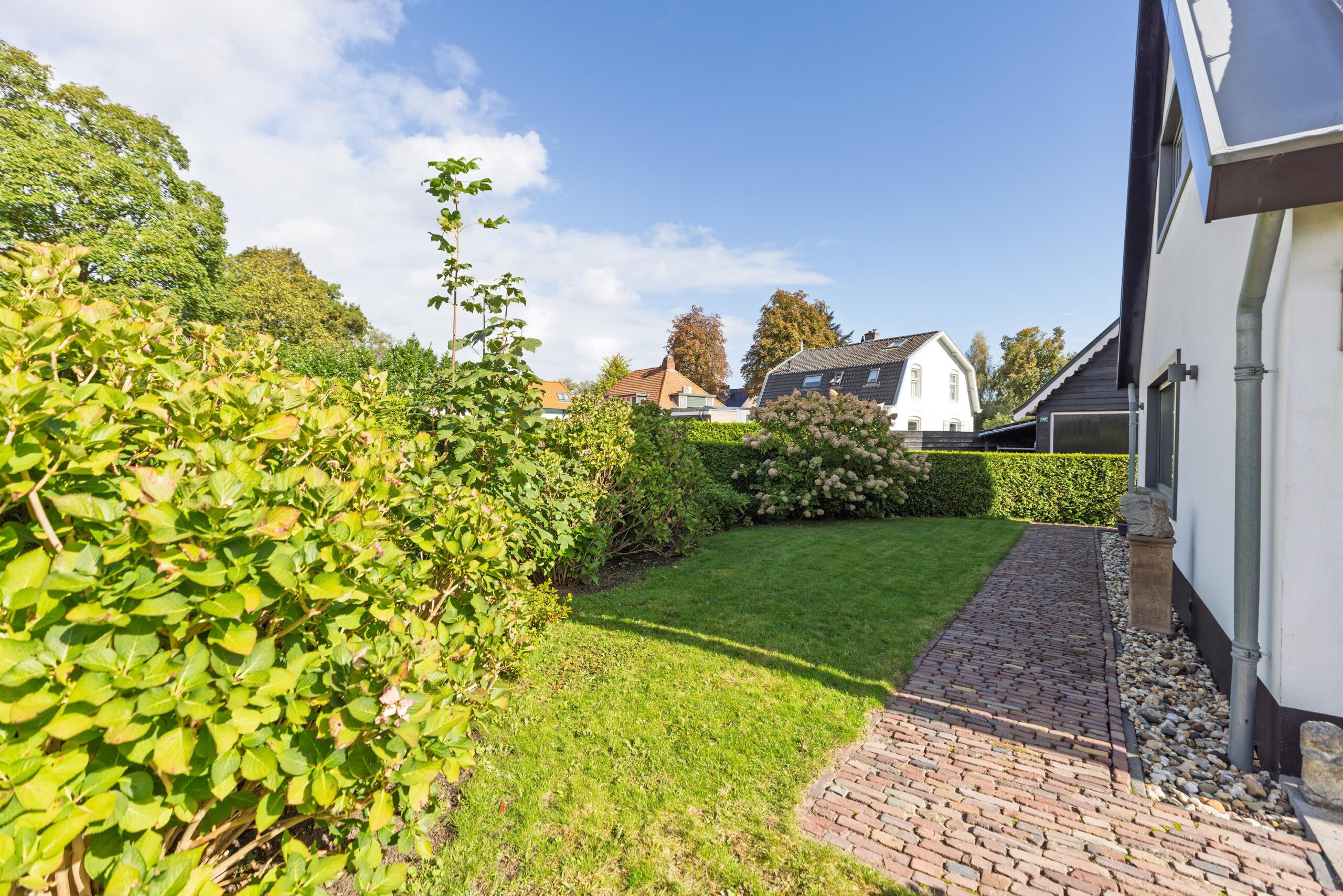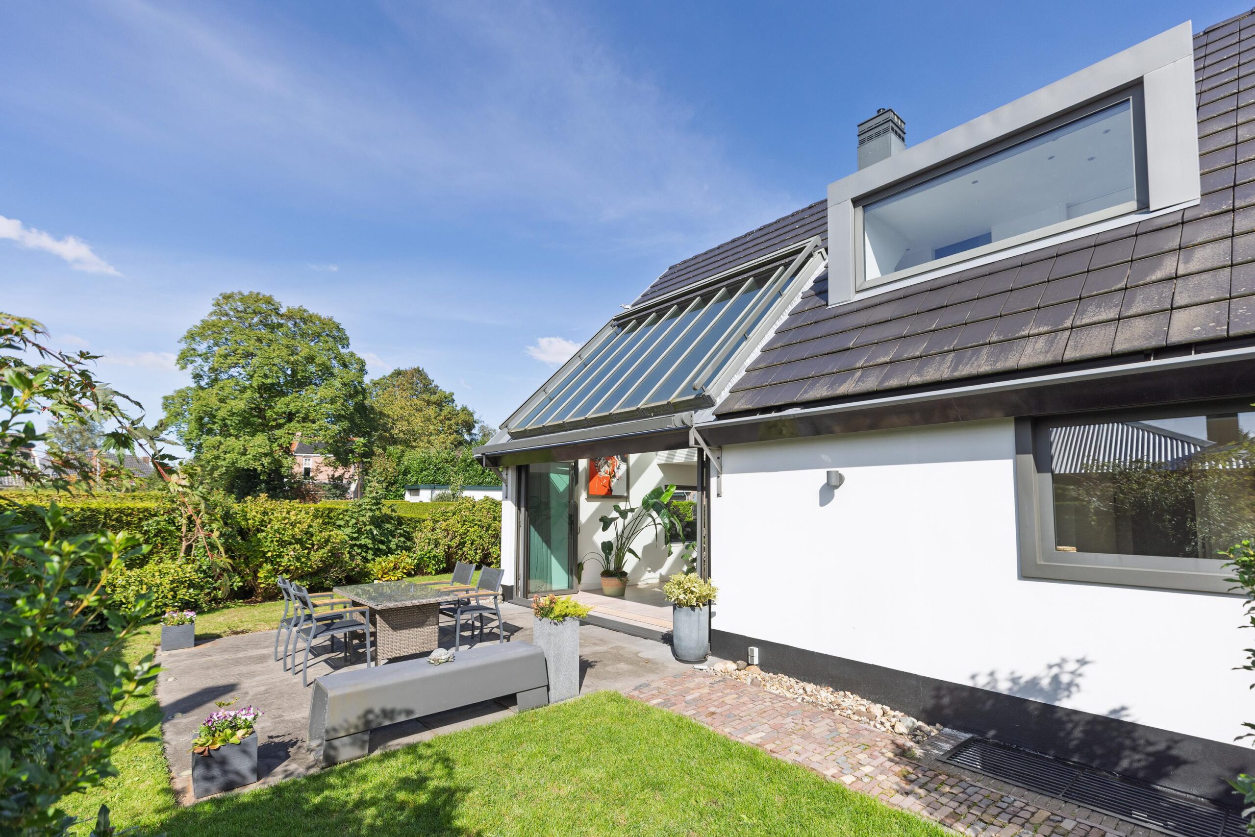 Sfeervol verbouwde villa met vrijstaande garage/atelierruimte. Gelegen aan een van de mooiste laantjes middenin het oude dorp van Laren.