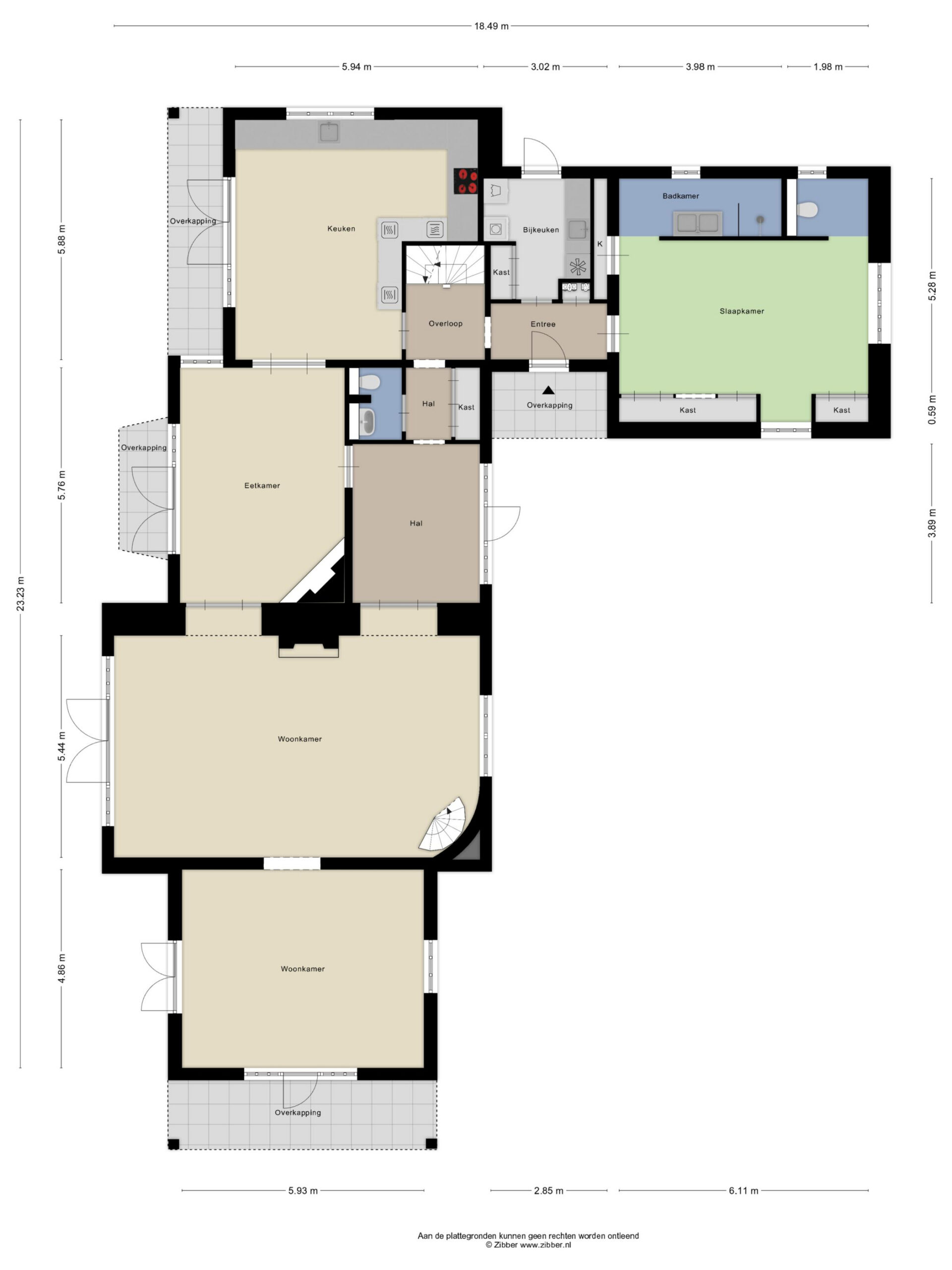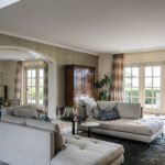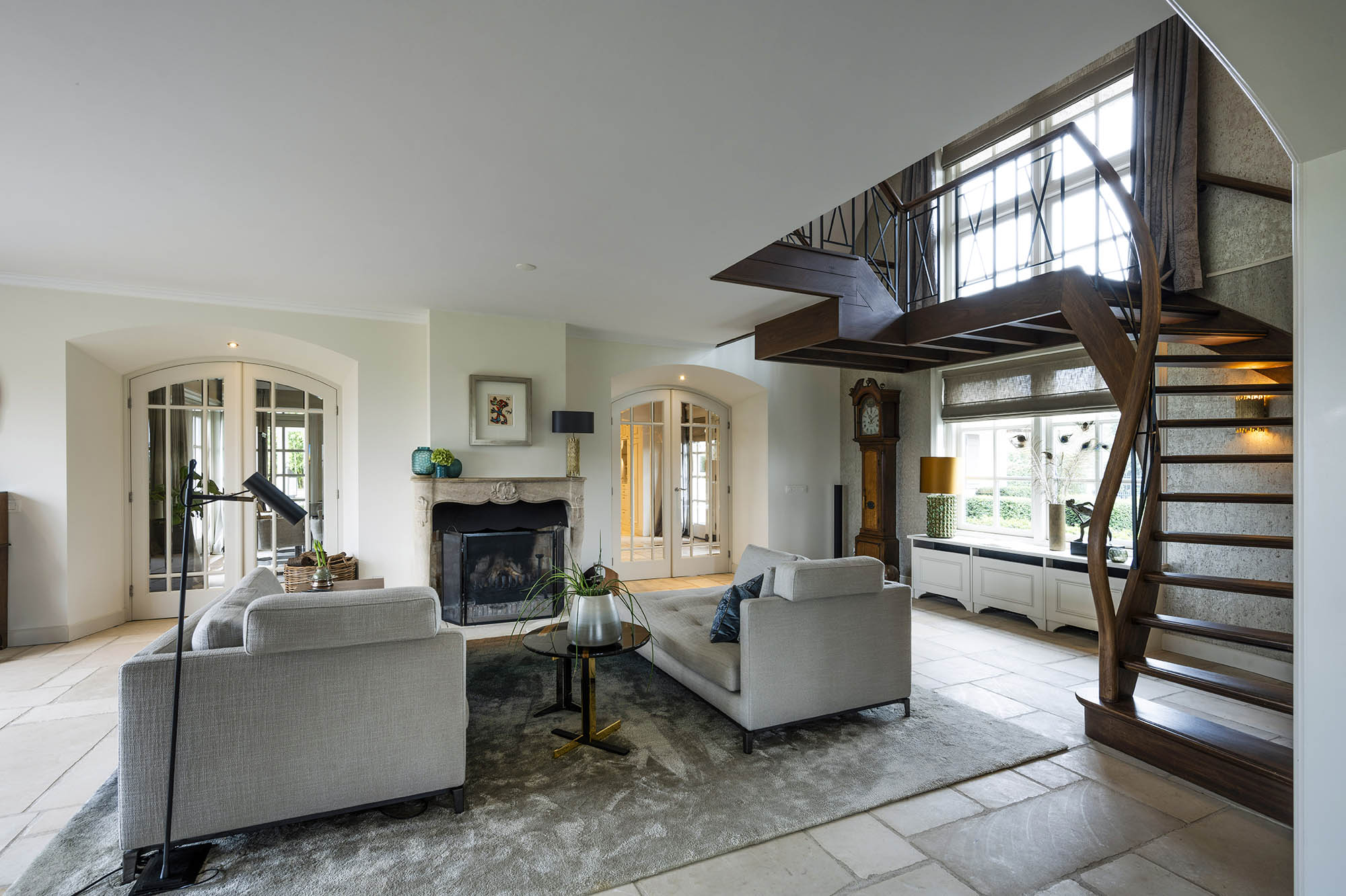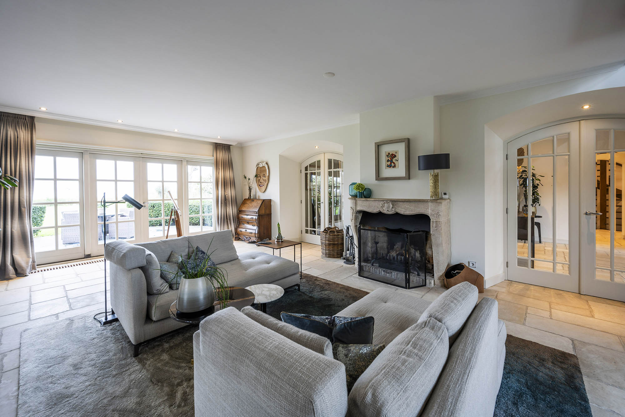Bij binnenkomst voelt u direct de grandeur van het huis. De ruime entreehal leidt naar een statige ontvangsthal met toegang tot de diverse leefruimtes. Centraal op de begane grond bevindt zich de dubbele woonkamer, met aan de voorzijde een gezellige zitkamer met open haard en aan de achterzijde een tweede, eveneens royale, leefruimte. Grote raampartijen en openslaande deuren zorgen voor een overvloed aan daglicht en een vloeiende overgang tussen de verschillende ruimtes. De statige houten trap biedt toegang tot de eerste verdieping.