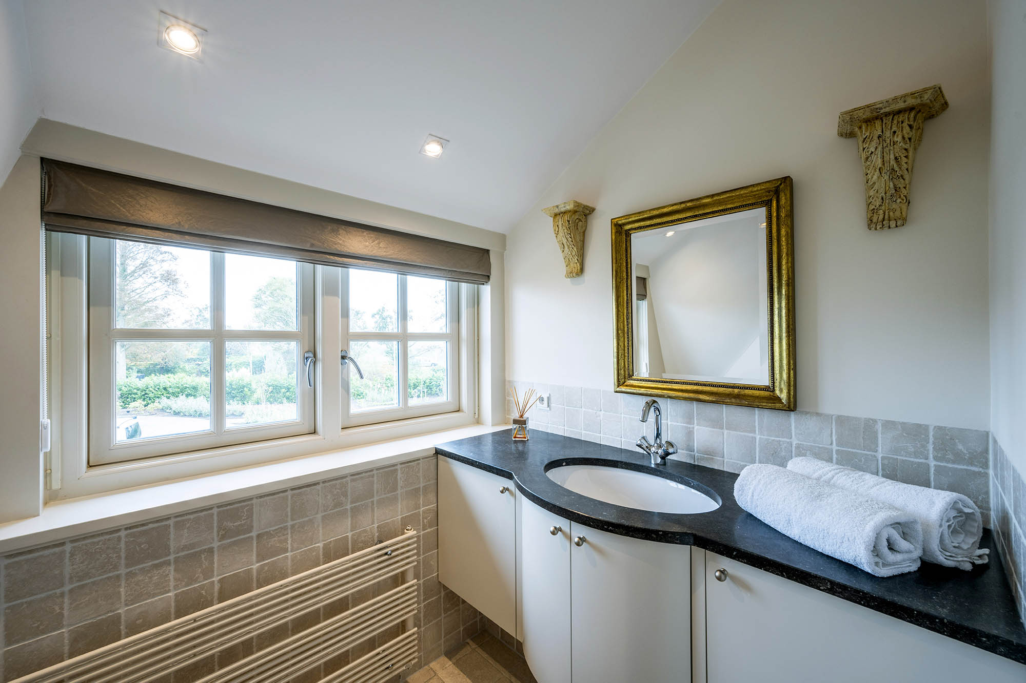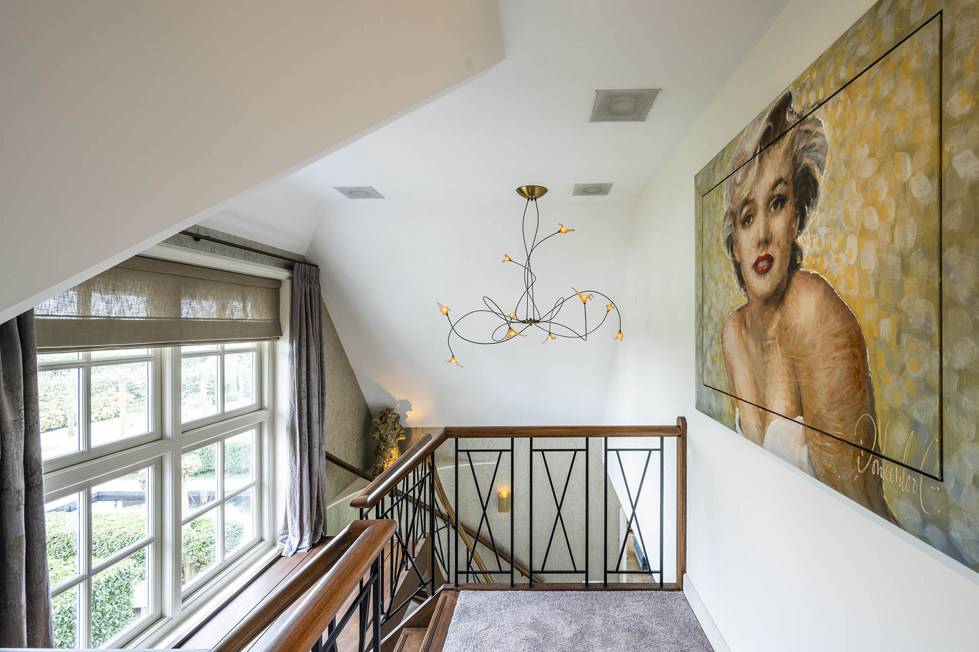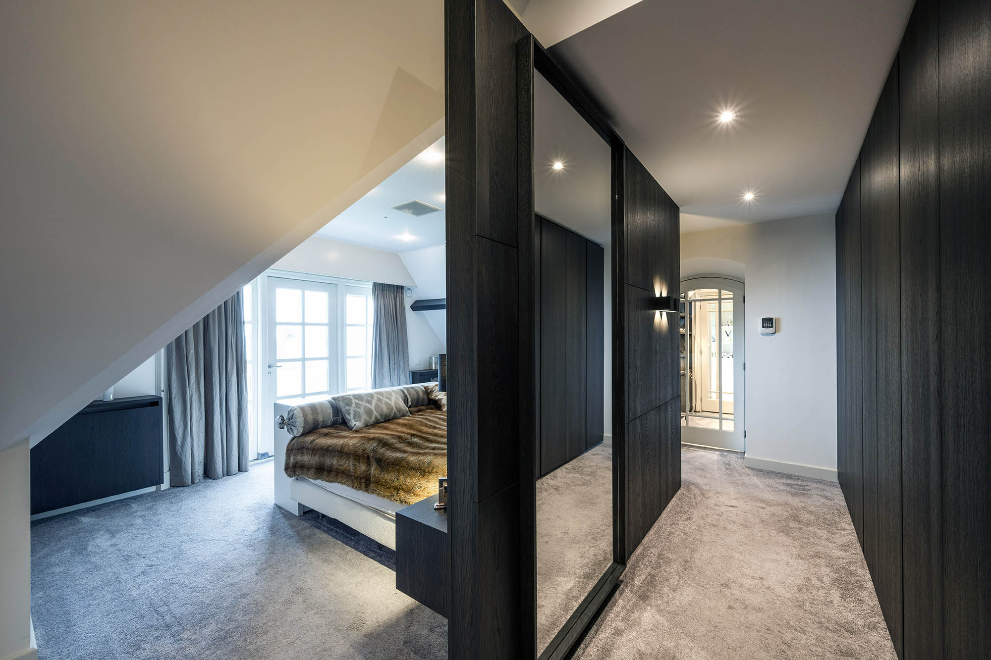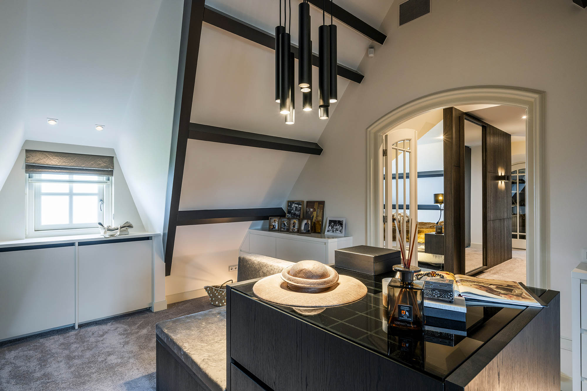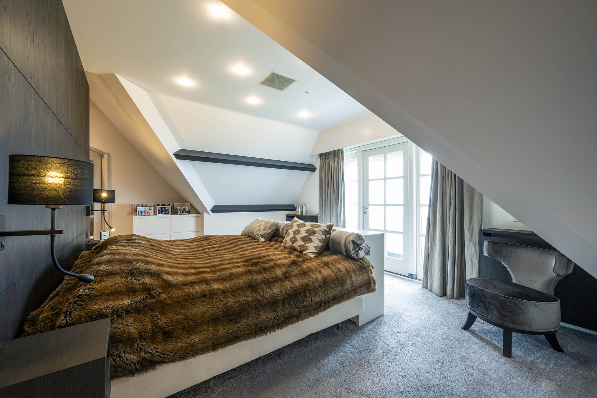 Vanuit zowel de woonkamer als vanuit de hal naast de keuken is de eerste verdieping bereikbaar. De bovenverdieping is verrassend ruim en ideaal voor een groot gezin, logees of het combineren van wonen en werken. Rondom de centrale overloop met vide liggen drie ruime slaapkamers en één luxueuze walk in closet die stuk voor stuk veel licht en ruimte bieden. Iedere kamer heeft zijn eigen indeling en sfeer. De verdieping beschikt over twee complete badkamers – waarvan één met ligbad, inloopdouche, dubbele wastafel en toilet. Deze badkamer is bereikbaar vanuit de master bedroom en geeft echt het hotel gevoel aan huis. De tweede badkamer is voorzien van inloopdouche, wastafelmeubel en nog een separaat toilet op de overloop.