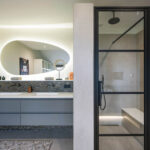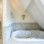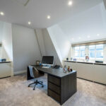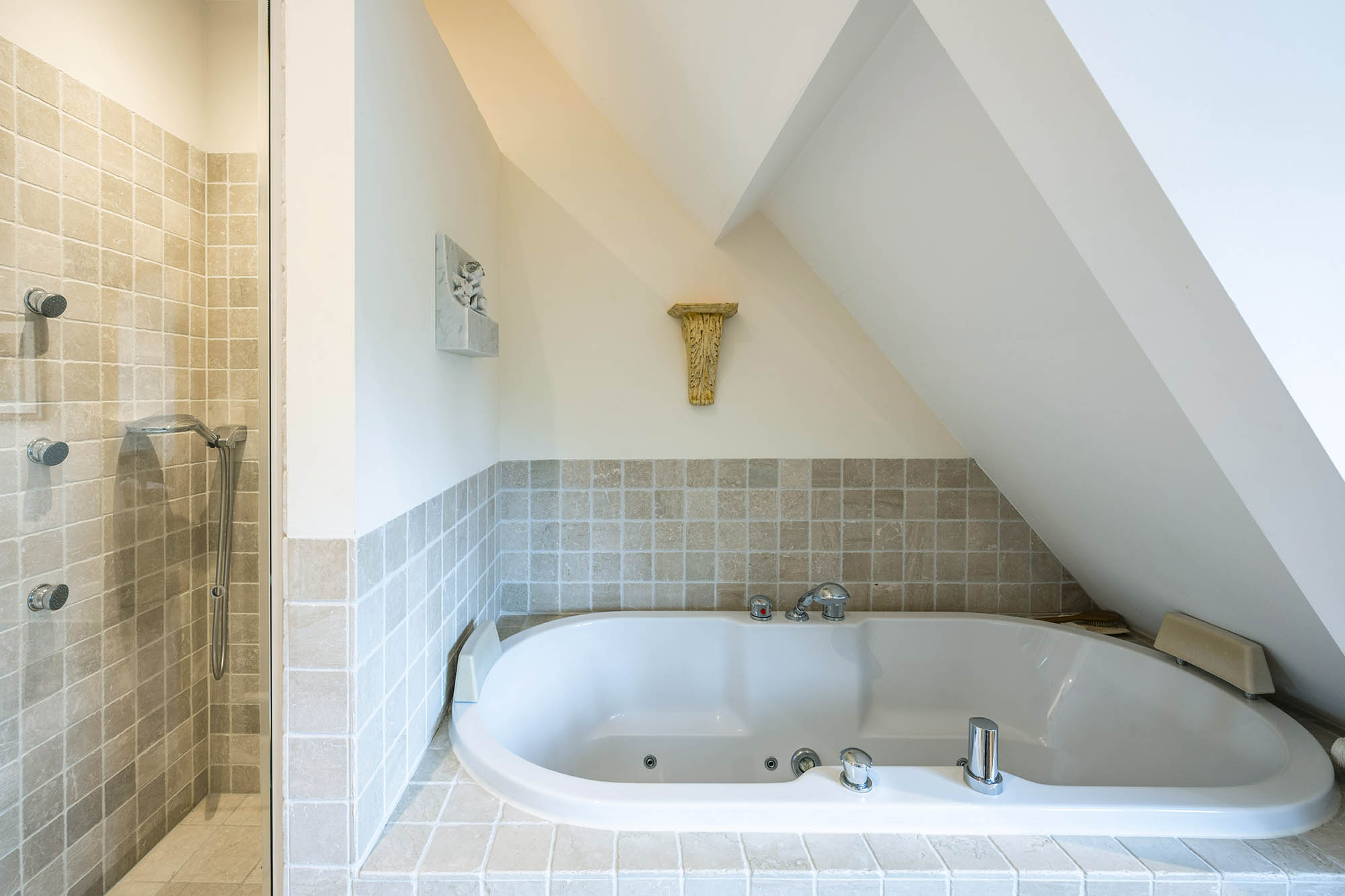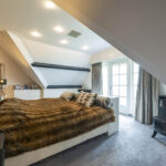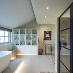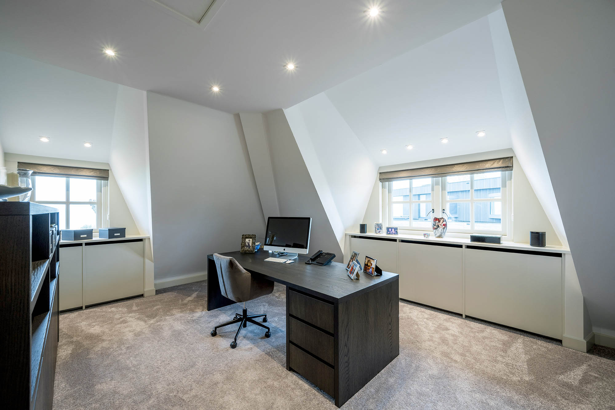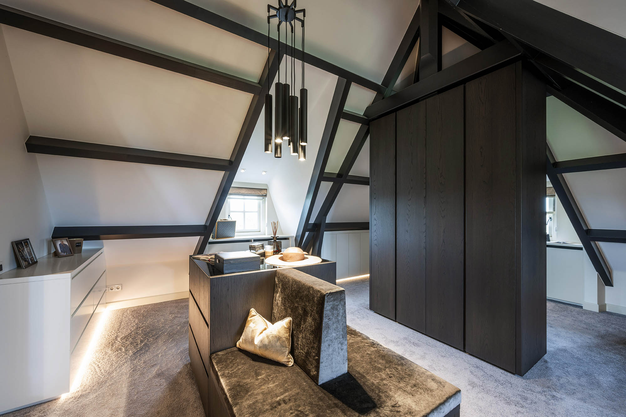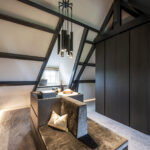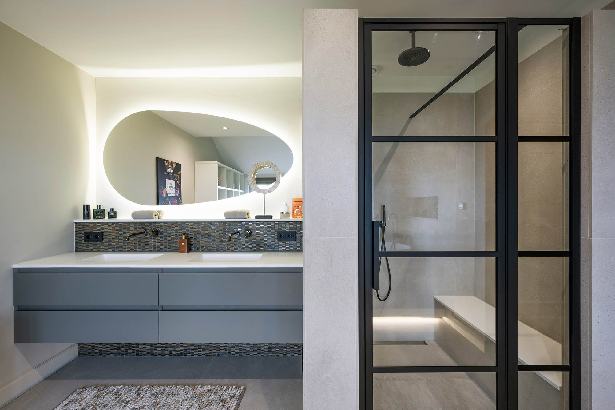 Vanuit zowel de woonkamer als vanuit de hal naast de keuken is de eerste verdieping bereikbaar. De bovenverdieping is verrassend ruim en ideaal voor een groot gezin, logees of het combineren van wonen en werken. Rondom de centrale overloop met vide liggen drie ruime slaapkamers en één luxueuze walk in closet die stuk voor stuk veel licht en ruimte bieden. Iedere kamer heeft zijn eigen indeling en sfeer. De verdieping beschikt over twee complete badkamers – waarvan één met ligbad, inloopdouche, dubbele wastafel en toilet. Deze badkamer is bereikbaar vanuit de master bedroom en geeft echt het hotel gevoel aan huis. De tweede badkamer is voorzien van inloopdouche, wastafelmeubel en nog een separaat toilet op de overloop.