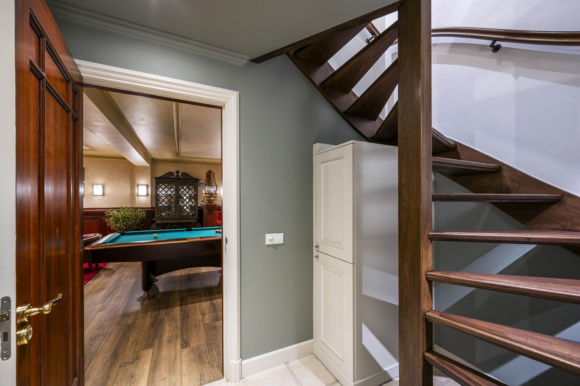 Het souterrain vormt een ware verrijking van de woning en is veel meer dan een kelder. Hier tref je een indrukwekkende bar- en loungeruimte – een ideale plek voor gezellige avonden en feestelijke bijeenkomsten. Aansluitend bevindt zich een volledig uitgeruste eigen gym met toilet en douche, ideaal voor wie thuis in alle rust wil trainen. Een van de absolute parels op dit niveau is de uitgebreide wijnkamer – perfect geconditioneerd en ingericht voor de echte wijnliefhebber. Dit is een verdieping met talloze gezichten – functioneel én sfeervol.