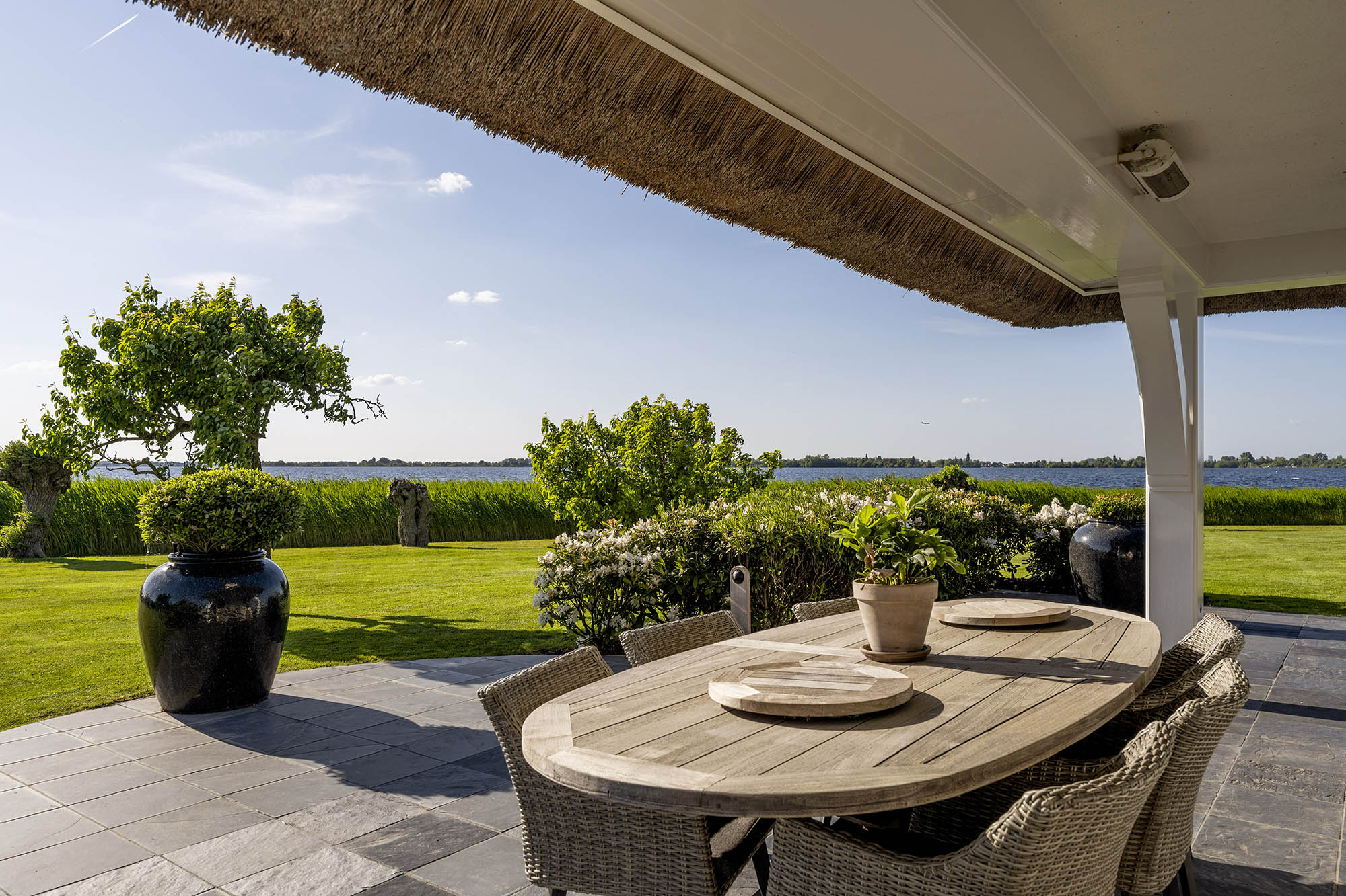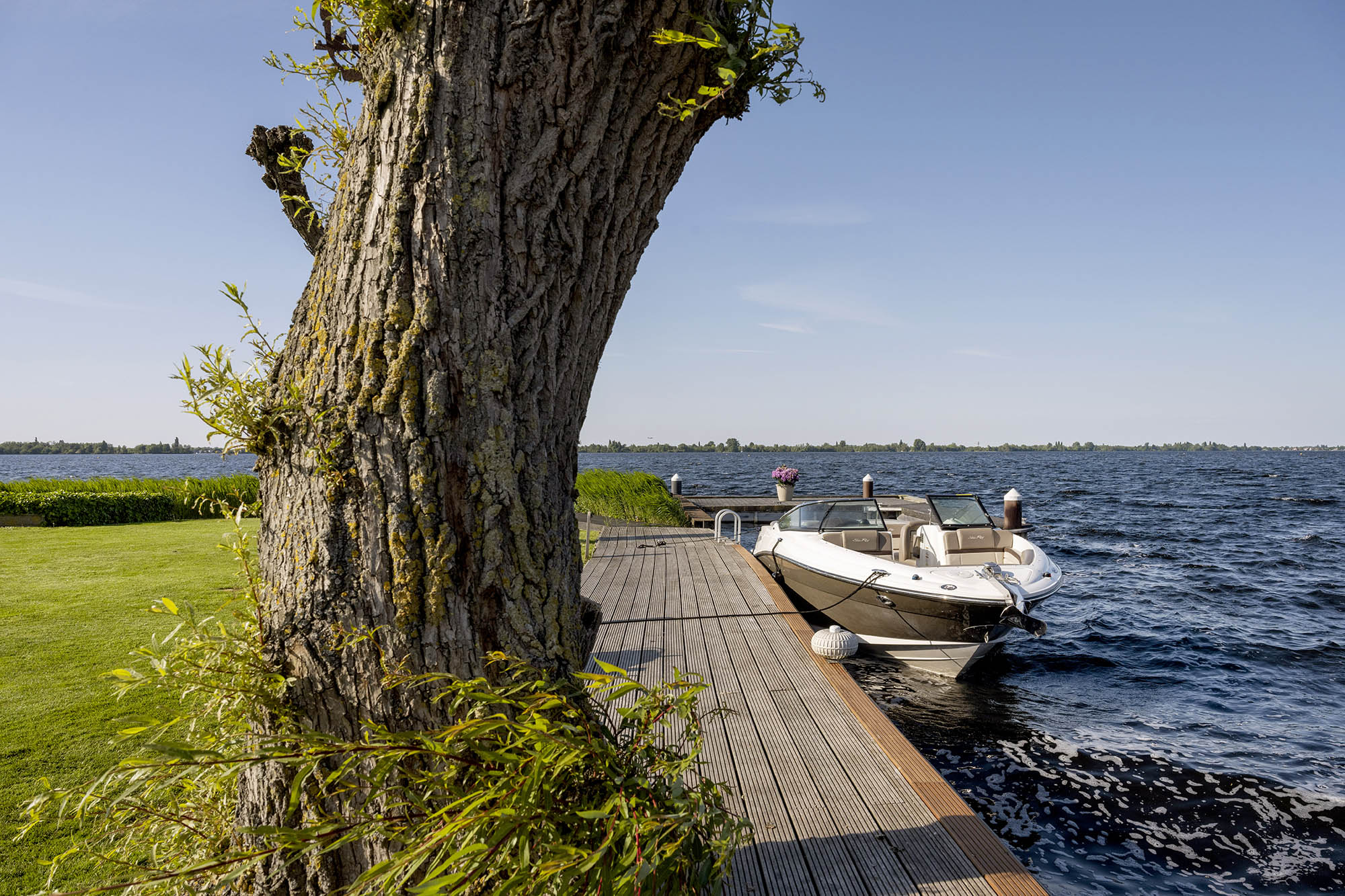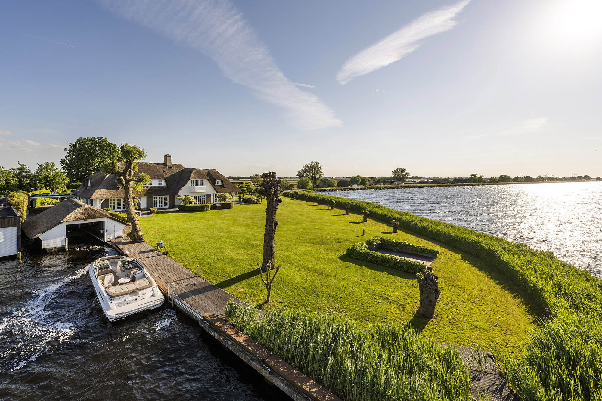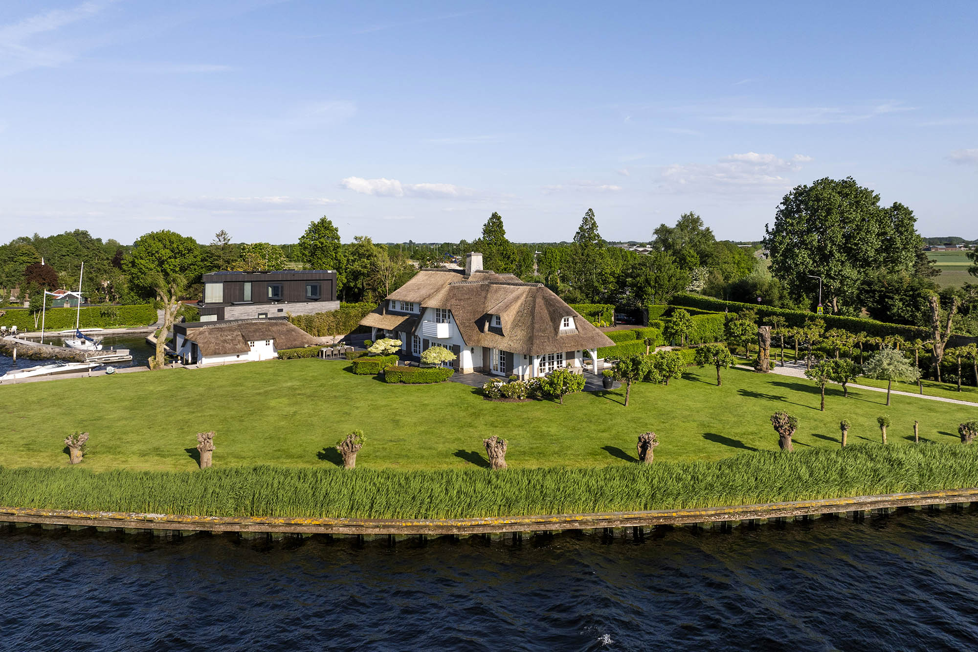 Dit is een echt familiehuis – een huis dat ‘welkom’ zegt, tegen iedereen die de oprit op komt. Een huis dat dankzij top-of-the-range materiaalgebruik en afwerking absoluut elegant oogt, maar toch volkomen ontspannen aanvoelt. Een huis dat zich net zo goed leent voor een black-tie diner in de sfeervolle eetkamer, als voor naar binnen rennende, kletsnatte kids die iets uit de koelkast komen snaaien. Een huis dat perfect geschikt is voor liefhebbers van het landelijke buitenleven, die de reuring van de Randstad toch onder handbereik willen hebben. En bovenal is dit huis een droom voor wie houdt van het water, om naar te kijken of om op te varen.