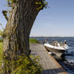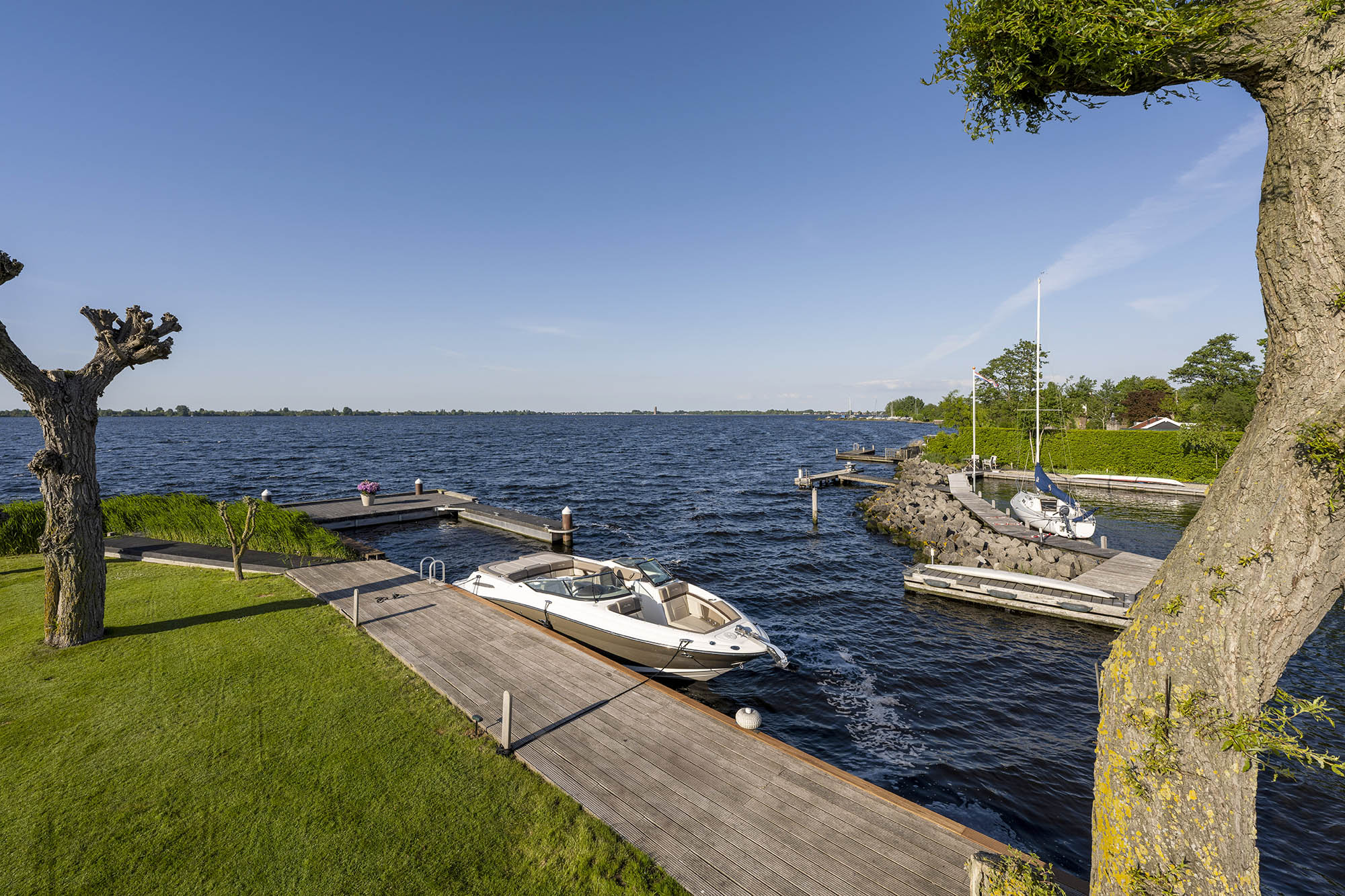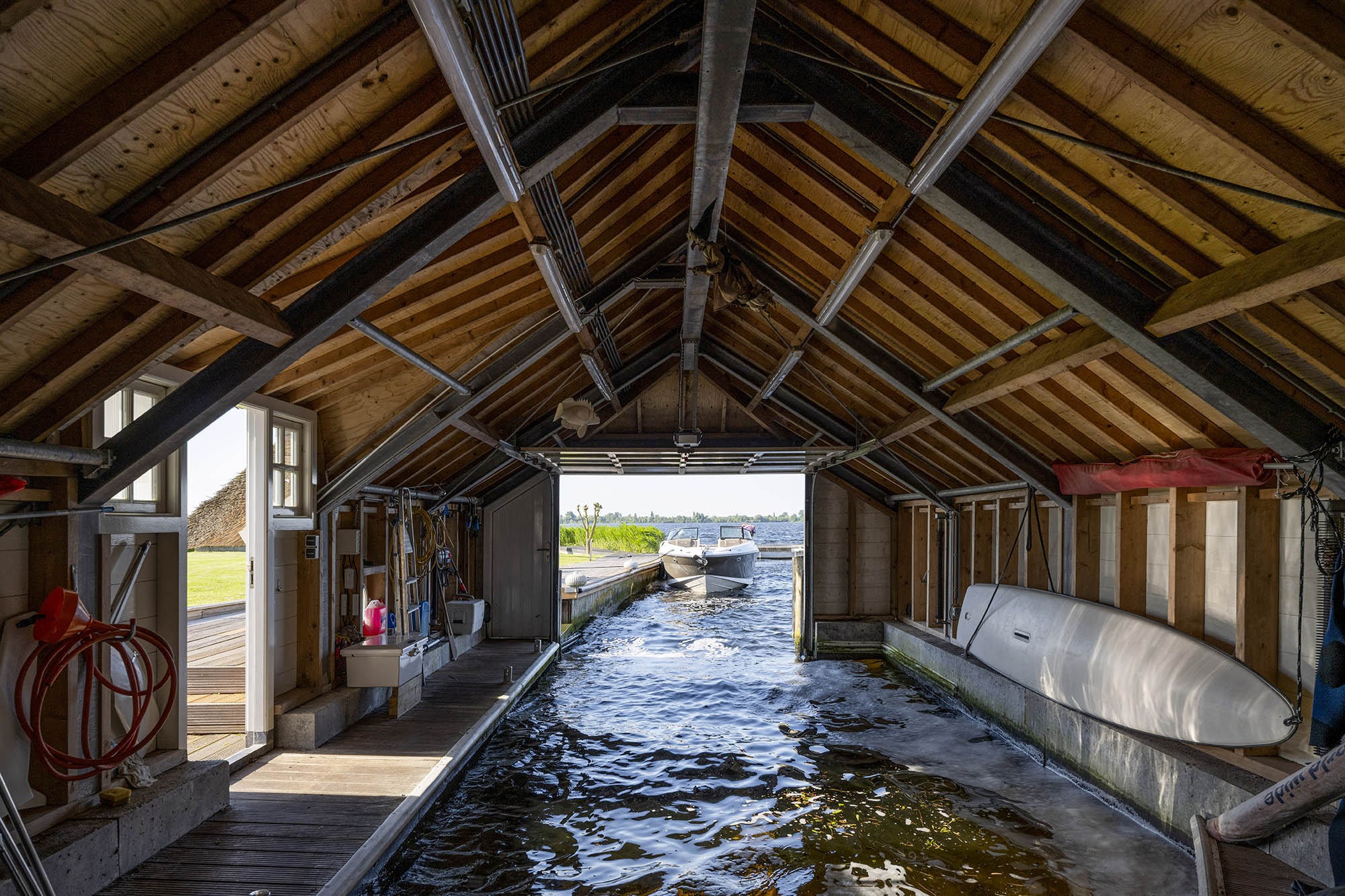 Aan de waterzijde van het perceel bevindt zich een stijlvol boothuis dat niet alleen functioneel, maar ook een waar verlengstuk is van het woongenot. Dit sfeervolle gebouwtje is geheel in stijl opgetrokken en beschikt over een eigen steiger en overdekte aanlegplaats – ideaal voor het veilig stallen van een sloep, tender of sportboot. Dankzij de directe verbinding met open vaarwater vaar je in alle rust en vrijheid door de prachtige waterrijke omgeving. In de winter kan de boot doormiddel van een bootlift uit het water worden gehesen zodat deze in de winter droog ligt.