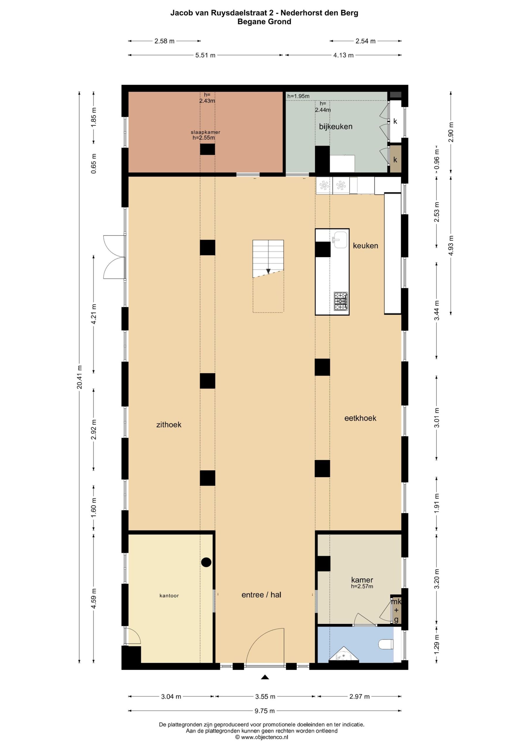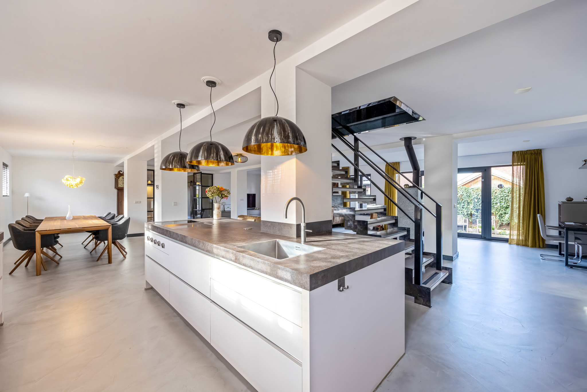 De overdekte entree met karakteristieke deur leidt naar een royale hal die doorloopt naar de grote, lichte woonkamer met open keuken. Deze leefruimte biedt volop mogelijkheden voor zowel dagelijks gebruik als gezellig samen koken en tafelen. Aan de voorzijde bevindt zich een ruime berging, die door de indeling en ligging uitstekend kan worden ingericht als kantoor of werkruimte. Daarnaast is er op deze verdieping een slaapkamer, een garderoberuimte met toilet en een praktische bijkeuken. In de bijkeuken zijn aansluitingen aanwezig om hier eenvoudig een extra badkamer te realiseren – ideaal voor wie gelijkvloers wil wonen.