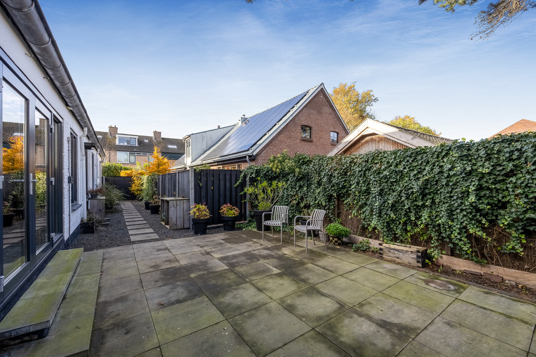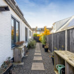 De achtertuin ligt op het noorden en biedt een rustige buitenruimte waar u de hele dag door kunt genieten van natuurlijk licht. Aan de voorzijde van het perceel beschikt u over parkeergelegenheid voor twee auto’s op eigen terrein.