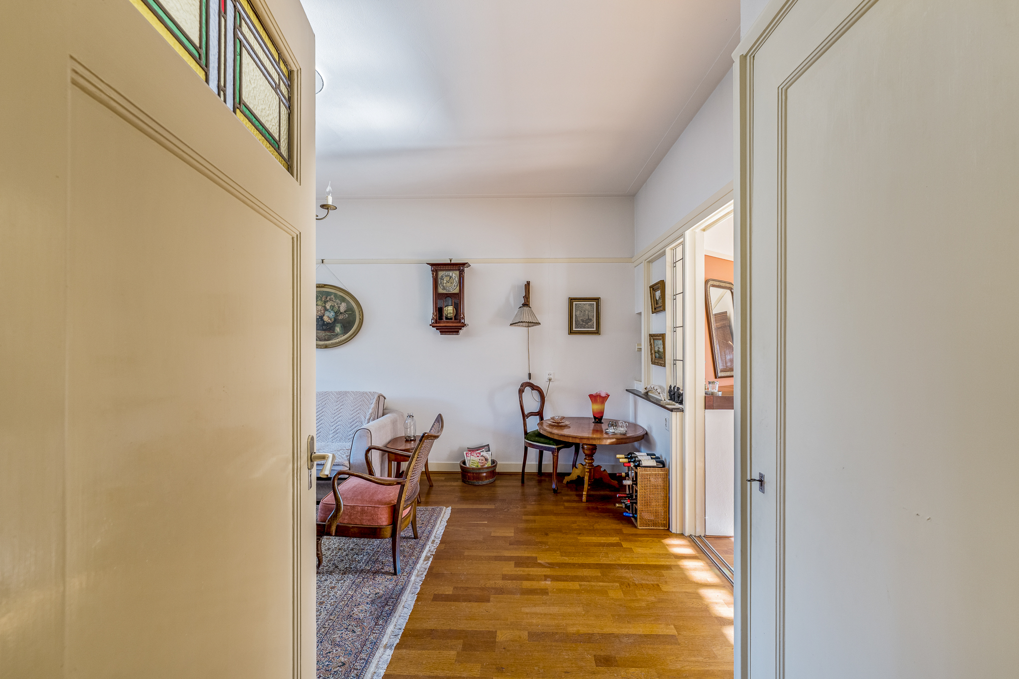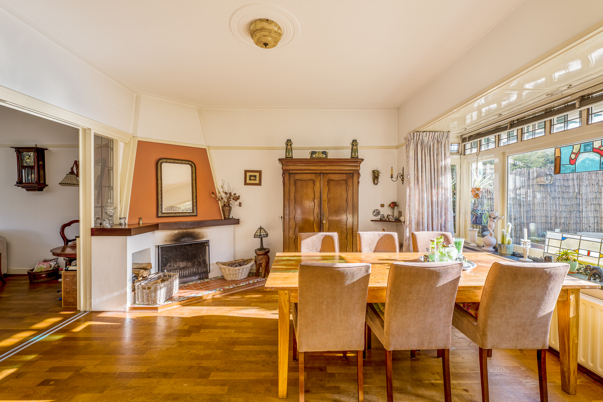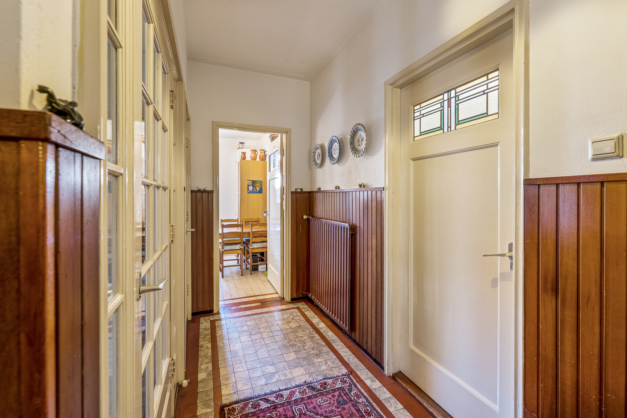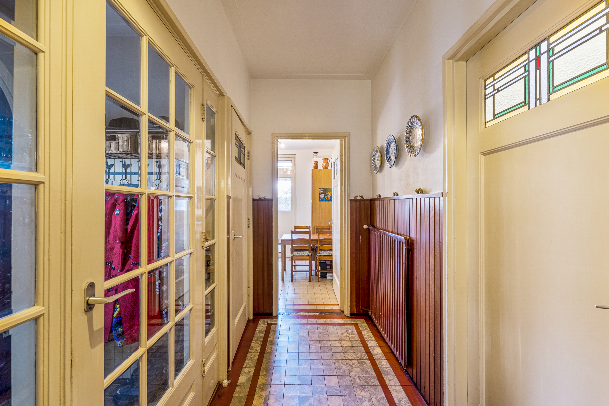 Begane grond: vestibule met toegang tot de hal, toilet en trapopgang. De oorspronkelijke indeling is behouden met een woonkamer aan de voorzijde, een separate eetkamer aan de achterzijde en een extra voorkamer die geschikt…