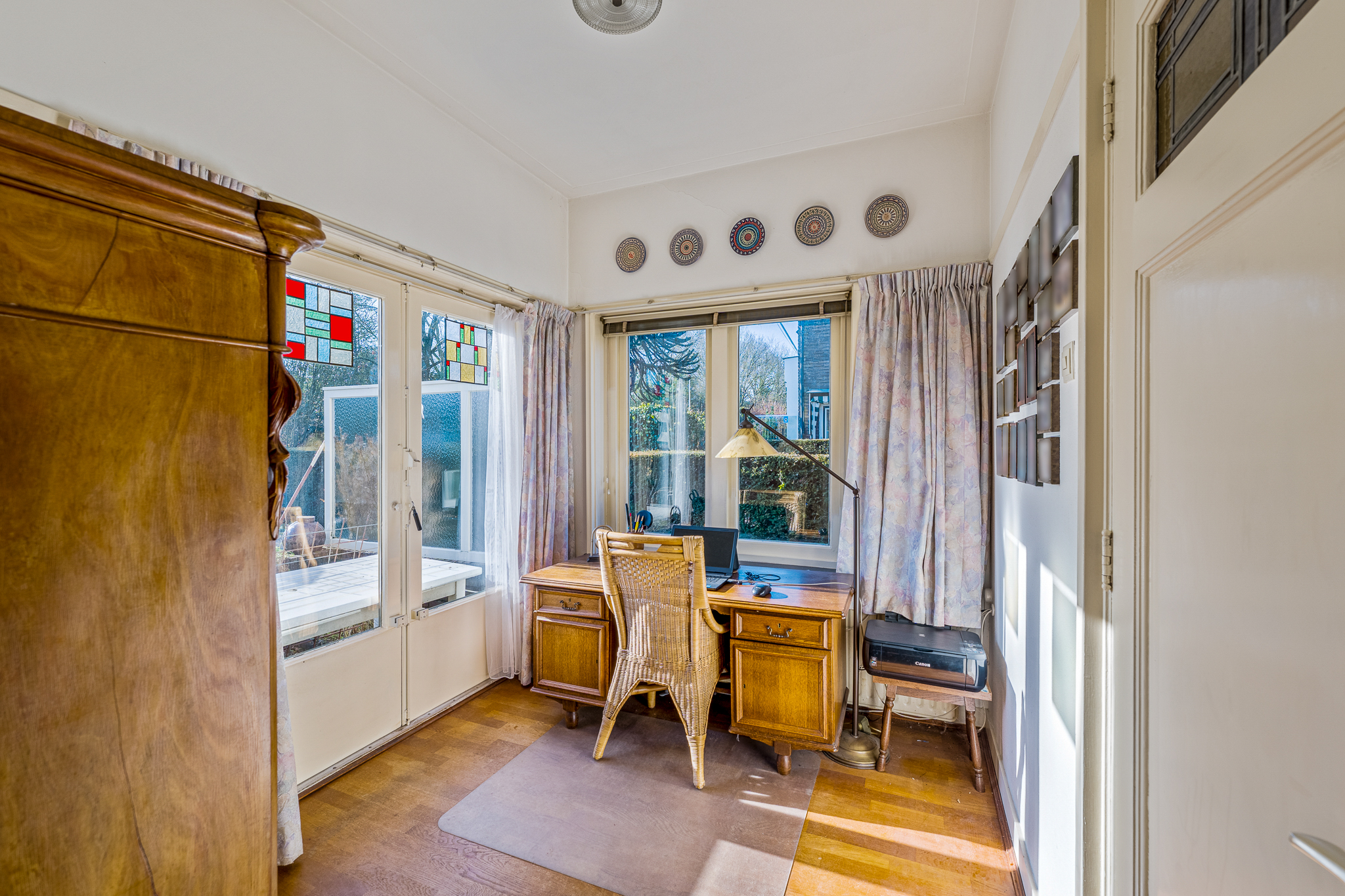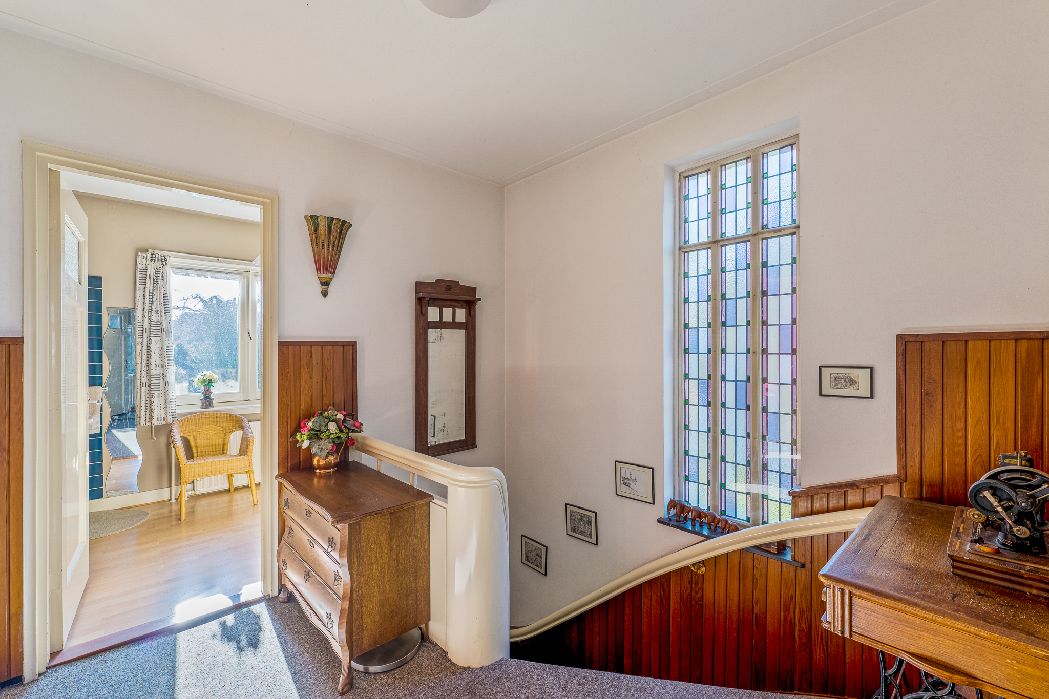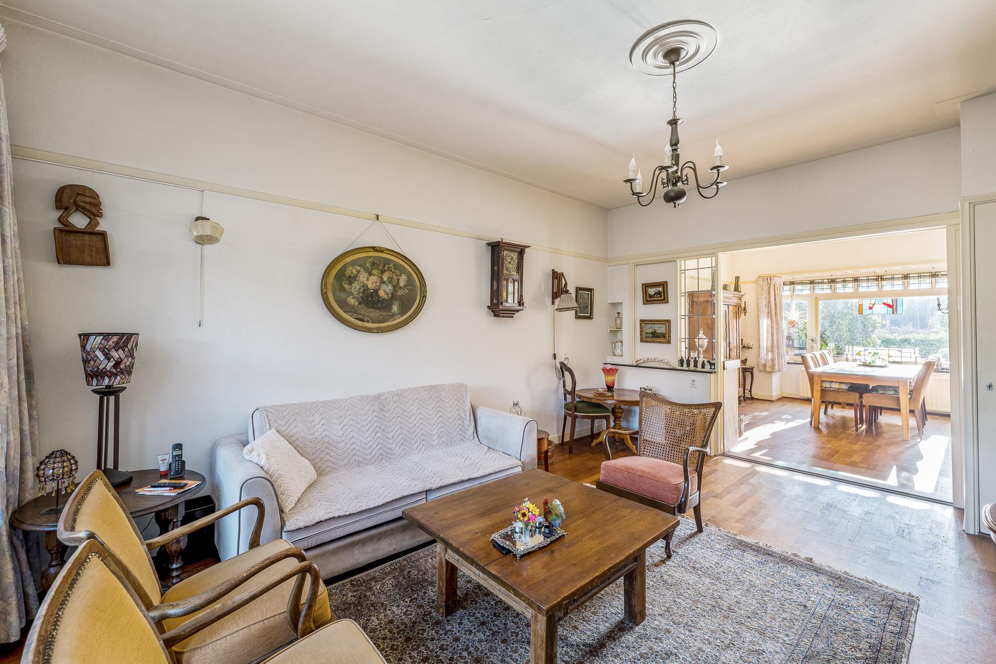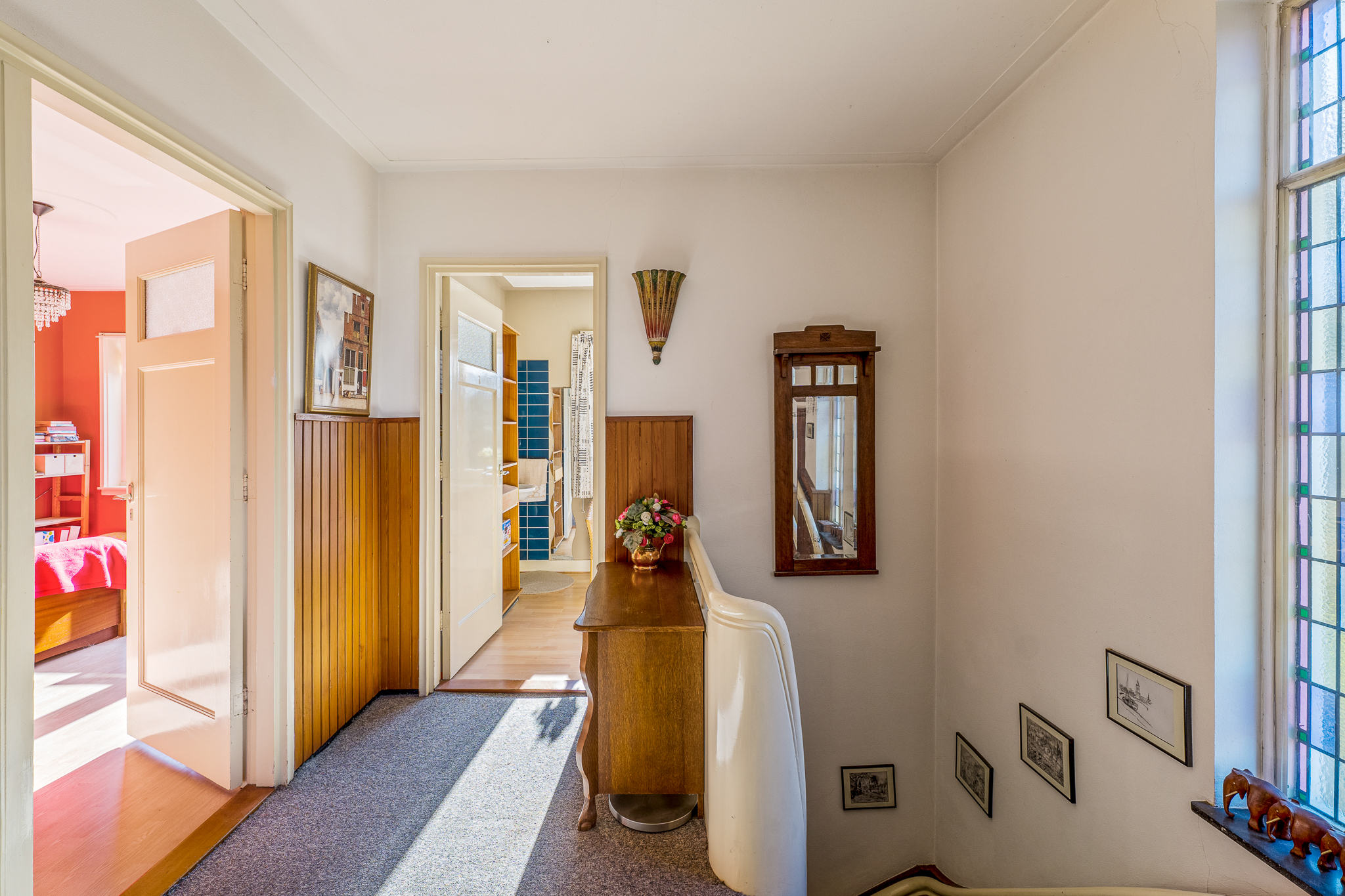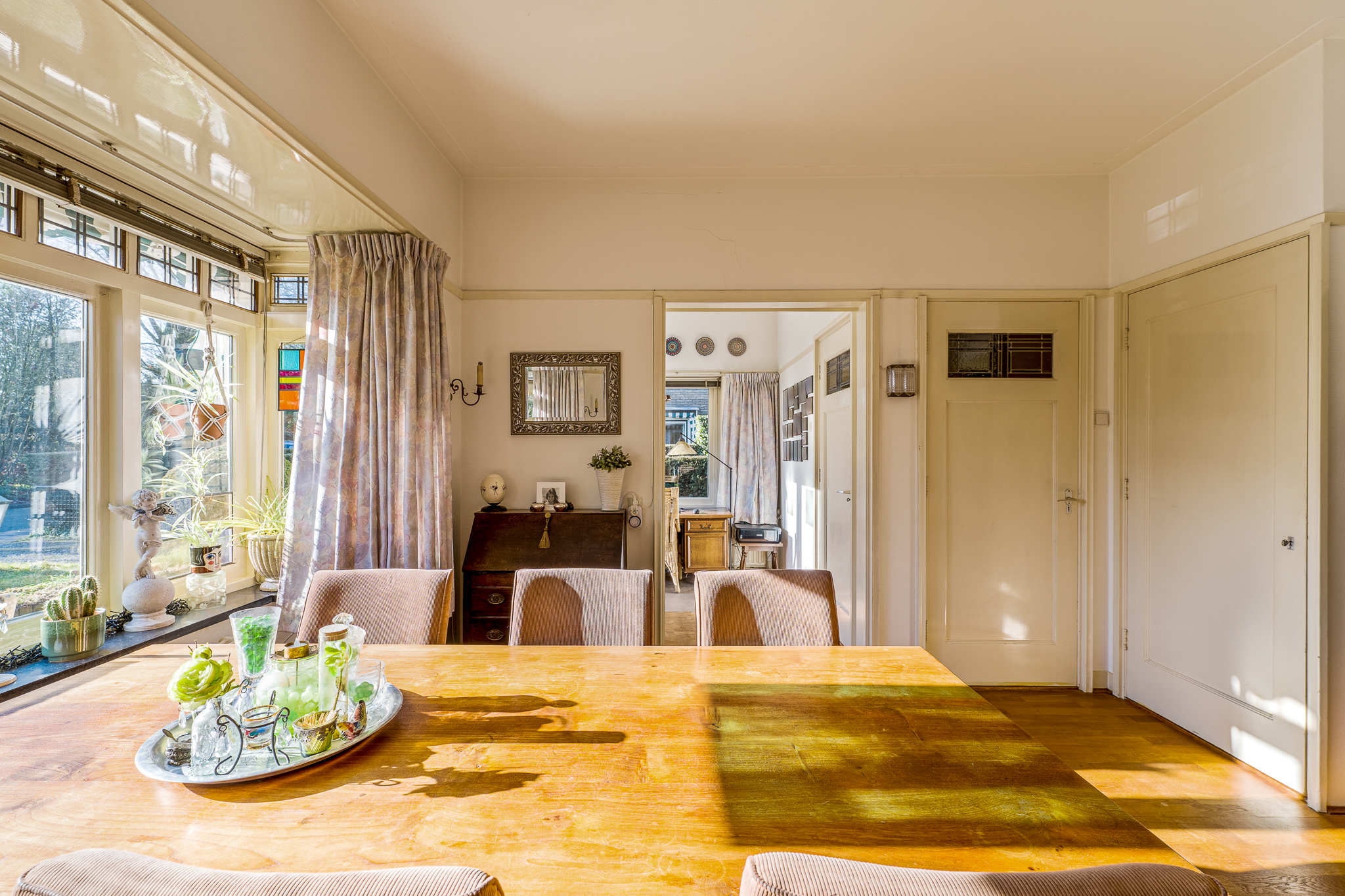 Het betreft een royaal gezinshuis met vijf slaapkamers, kelder, balkon, veranda, vrijstaande stenen garage en carport. De woning biedt een solide basis voor wie de sfeer van de jaren ’30 weet te waarderen en deze naar eigen inzicht wil actualiseren.