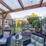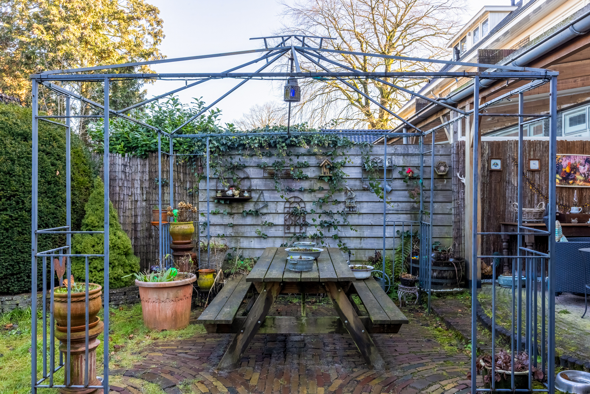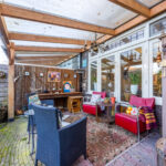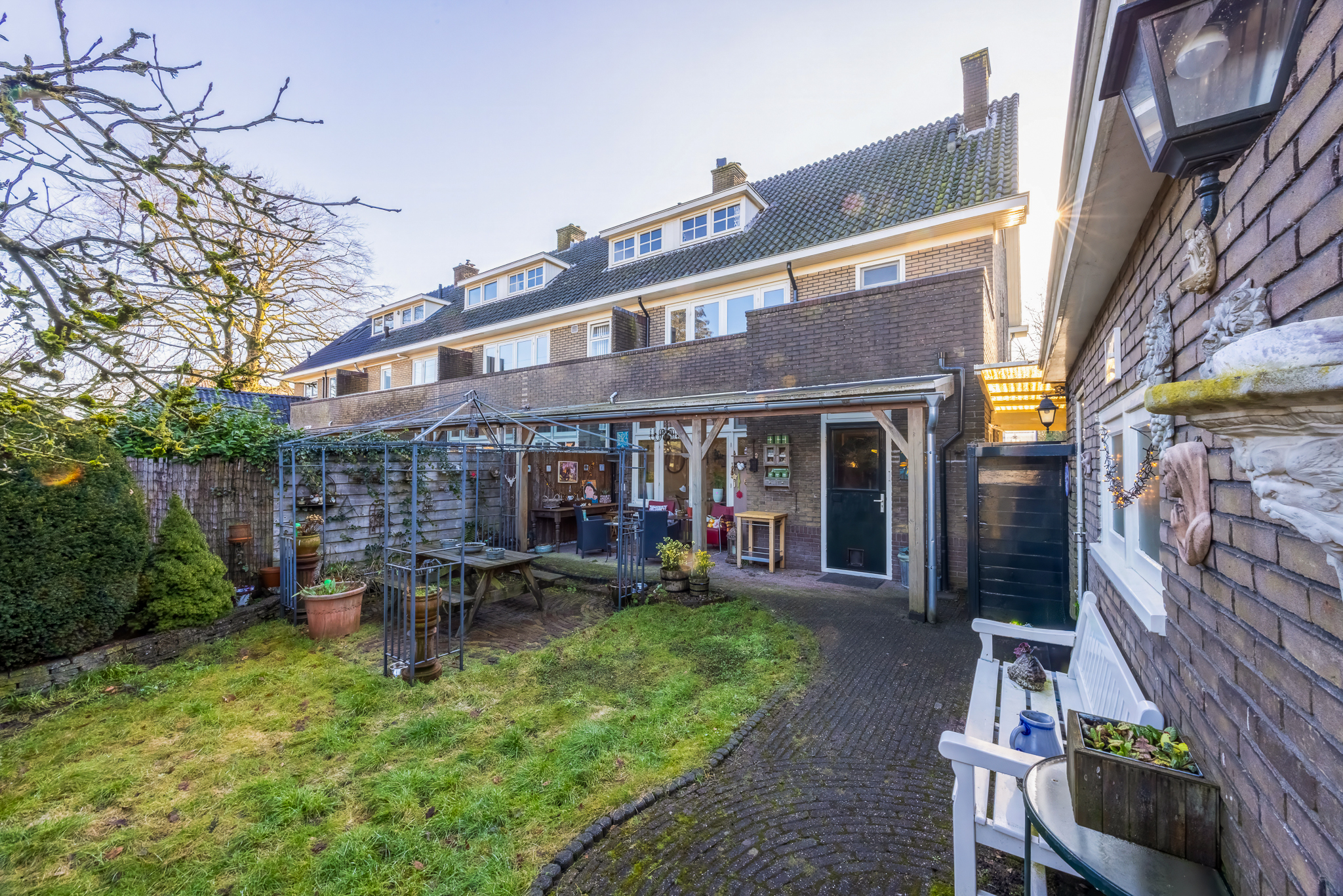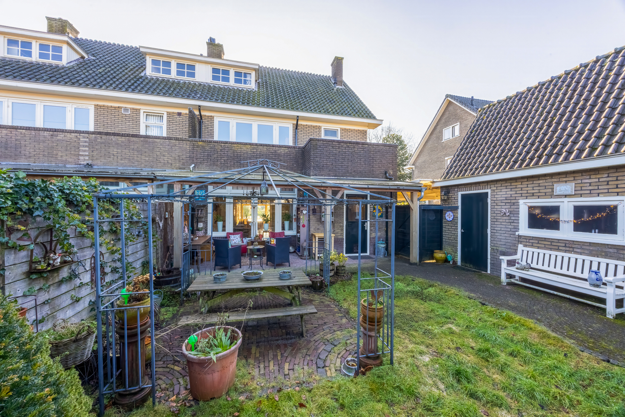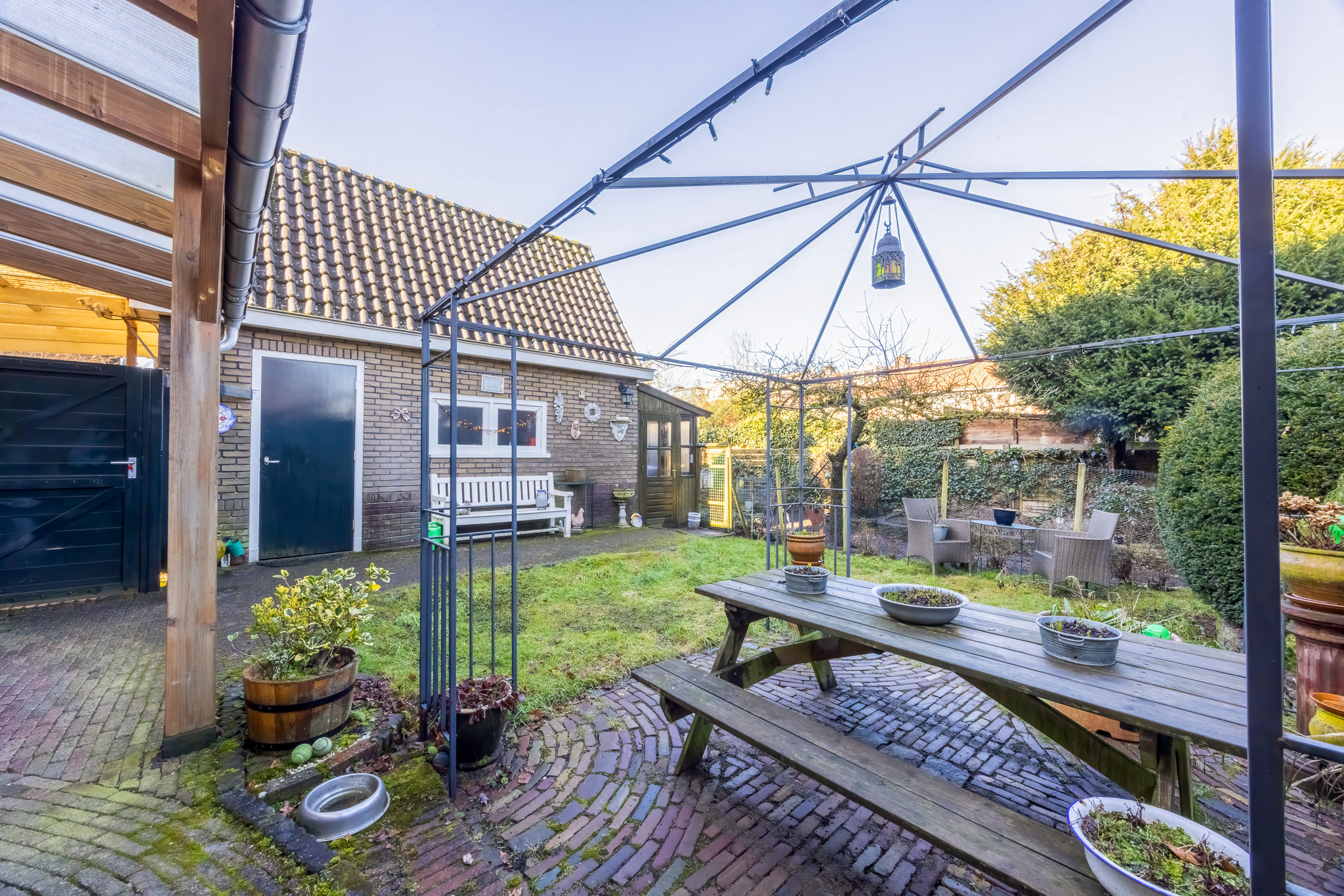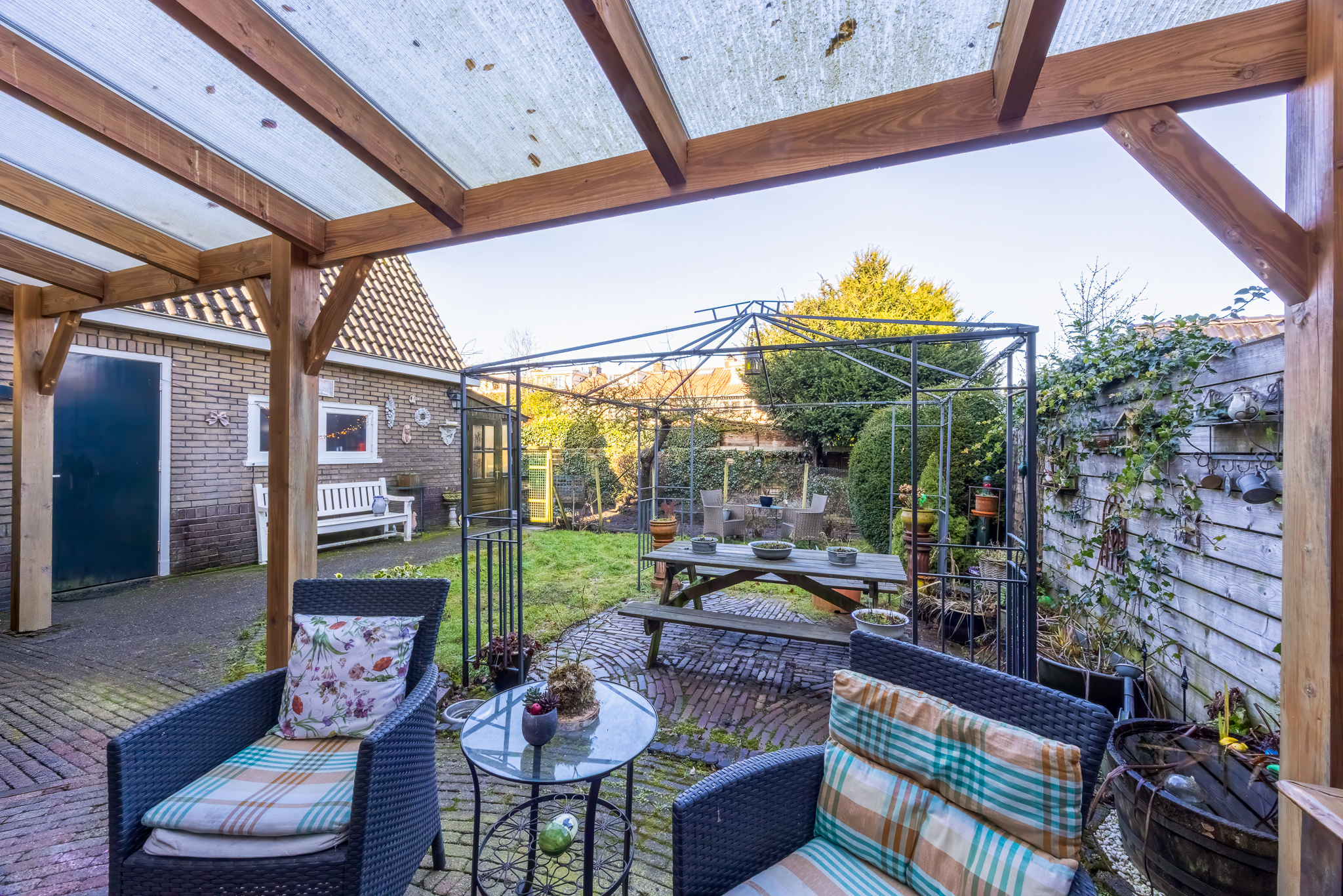 De achtertuin is circa 14,5 meter diep en 11 meter breed en ligt op het noorden. Door de afmetingen is er voldoende ruimte voor meerdere zitplekken en speelruimte.