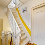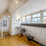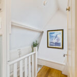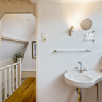 Ruime overloop, wasruimte, toilet, twee royale slaapkamers, waarvan één gemakkelijk in tweeën kan worden opgesplitst zodat u drie slaapkamers heeft op de verdieping. Een vaste trap leidt naar de tweede verdieping.