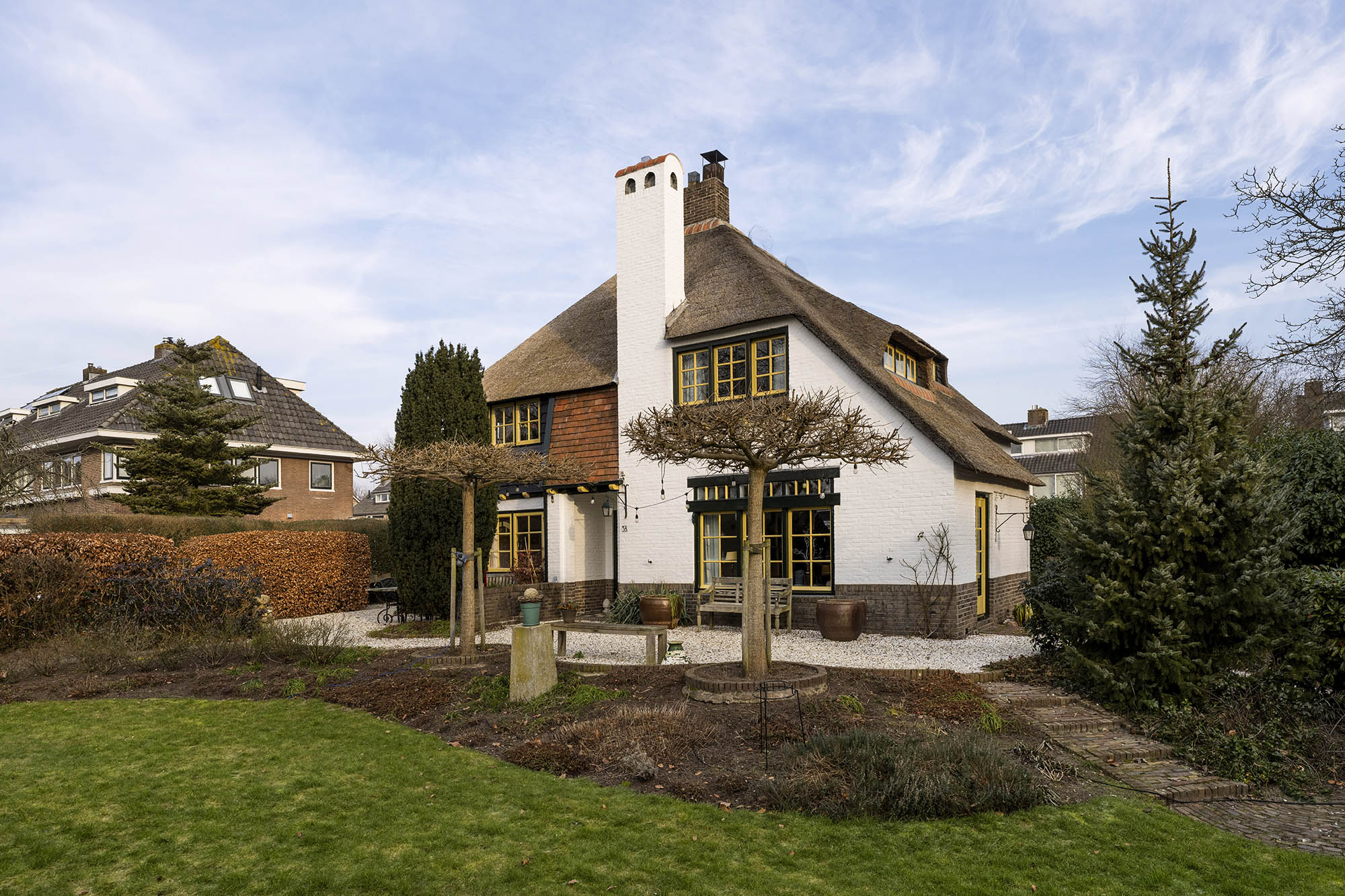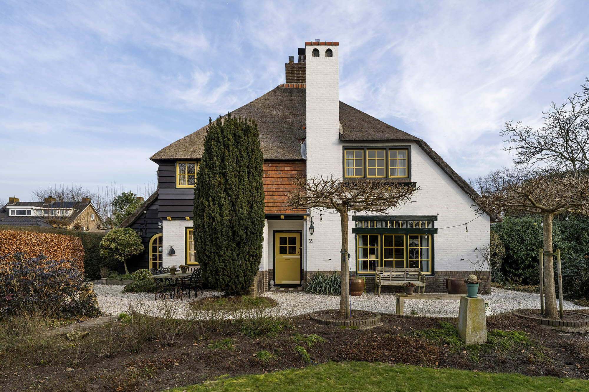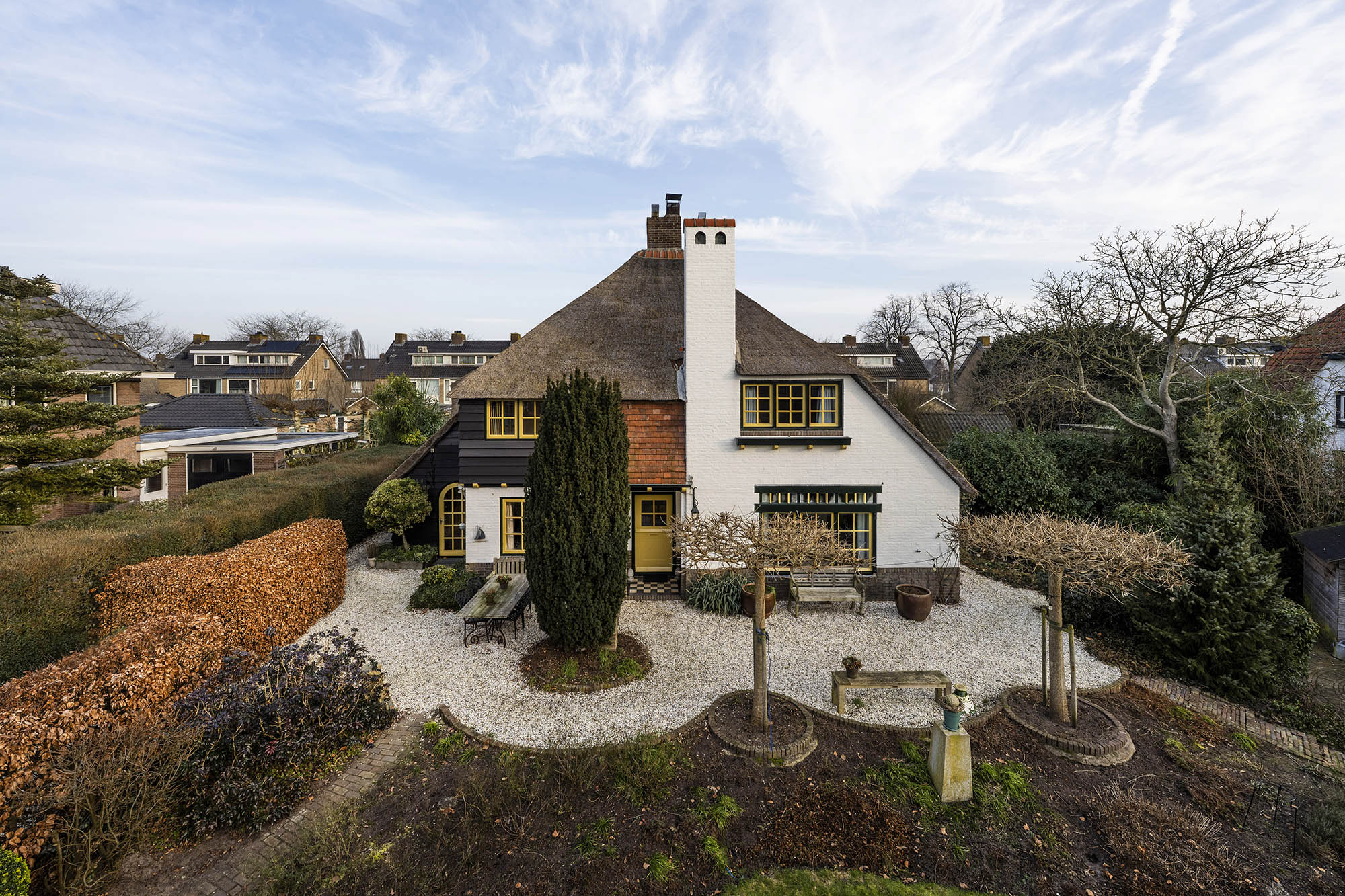 ‘Het Huis in de Zon’ (1920) een door architect W. Hamdorff ontworpen atelierwoning voor kunstschilder K.J. Willerding, ademt historie, sfeer en warmte. Deze vrijstaande villa met rieten kap ligt verscholen achter een imposante rododendronhaag, midden in het dorpshart van Kortenhoef. De woning straalt geborgenheid uit en is een echt familiehuis. De royale tuin en het voormalige atelier, nu een sfeervolle living, vormen het hart van het huis, waar licht, ruimte en karakter samenkomen. Hier is plaats voor grote diners, feestelijke momenten en dagelijkse rust. Het perceel van 1.075 m² biedt volop privacy en groen, midden in het Gooi.