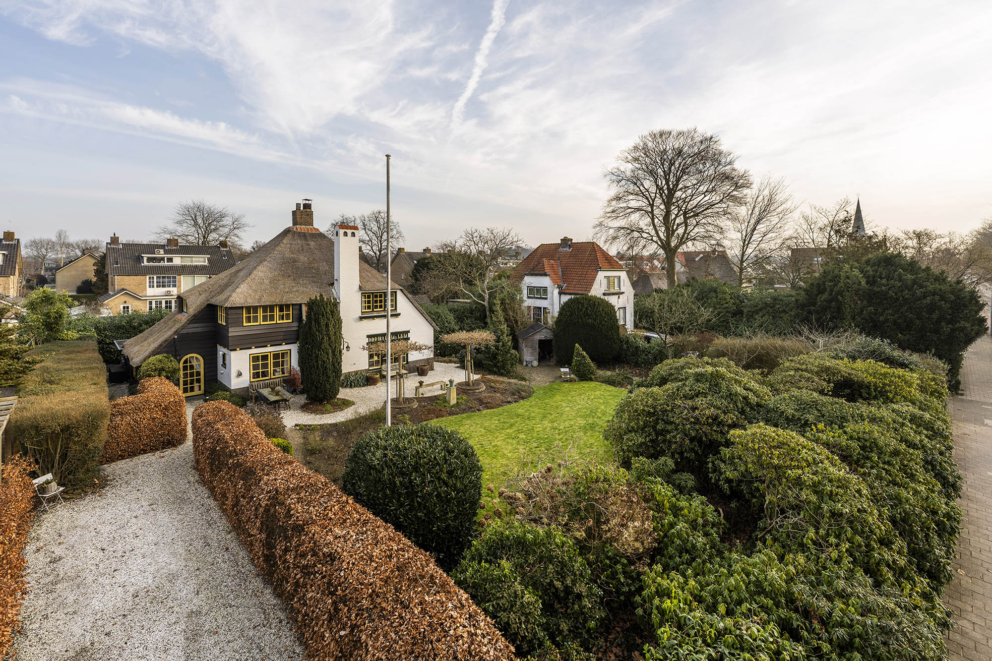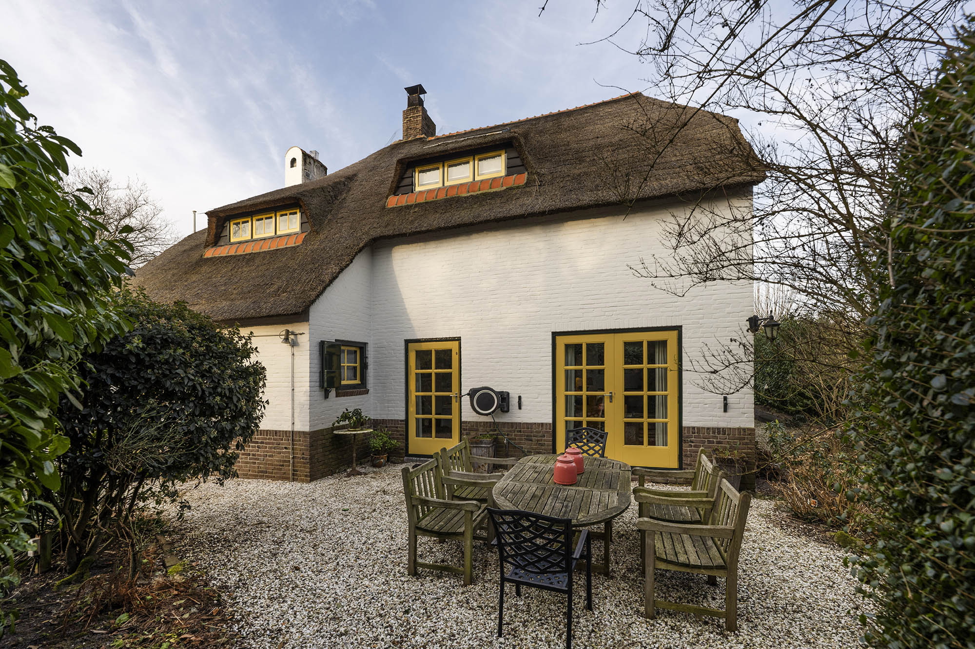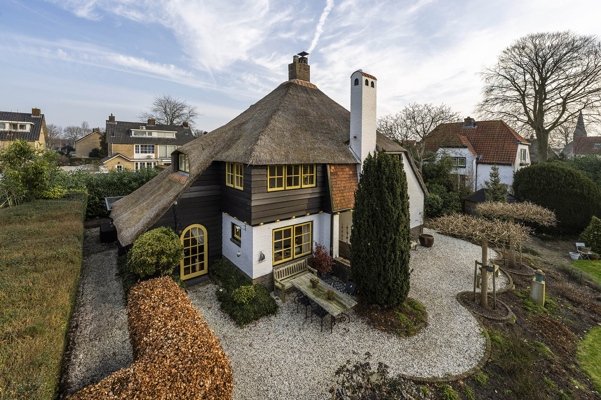 ‘Het Huis in de Zon’ (1920) een door architect W. Hamdorff ontworpen atelierwoning voor kunstschilder K.J. Willerding, ademt historie, sfeer en warmte. Deze vrijstaande villa met rieten kap ligt verscholen achter een imposante rododendronhaag, midden in het dorpshart van Kortenhoef. De woning straalt geborgenheid uit en is een echt familiehuis. De royale tuin en het voormalige atelier, nu een sfeervolle living, vormen het hart van het huis, waar licht, ruimte en karakter samenkomen. Hier is plaats voor grote diners, feestelijke momenten en dagelijkse rust. Het perceel van 1.075 m² biedt volop privacy en groen, midden in het Gooi.