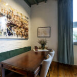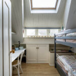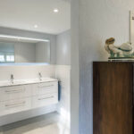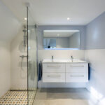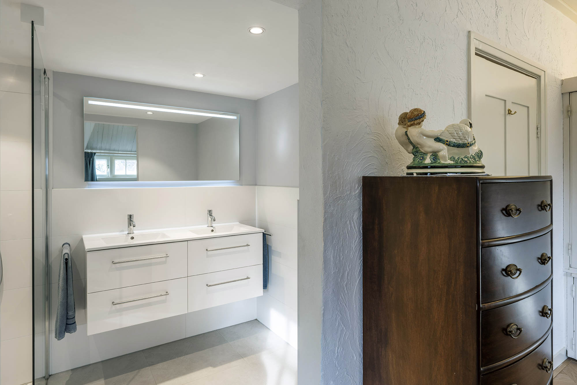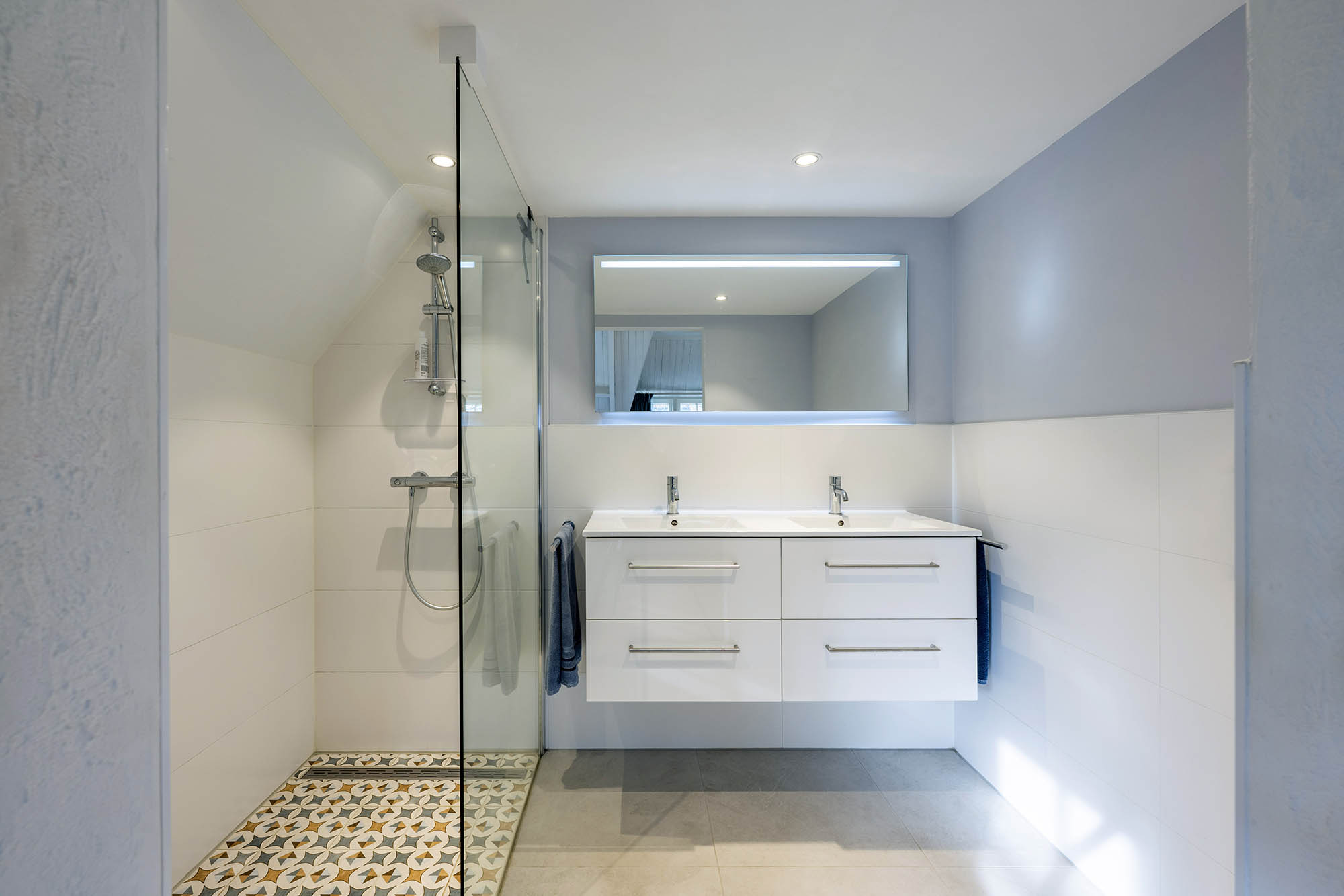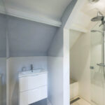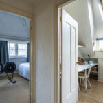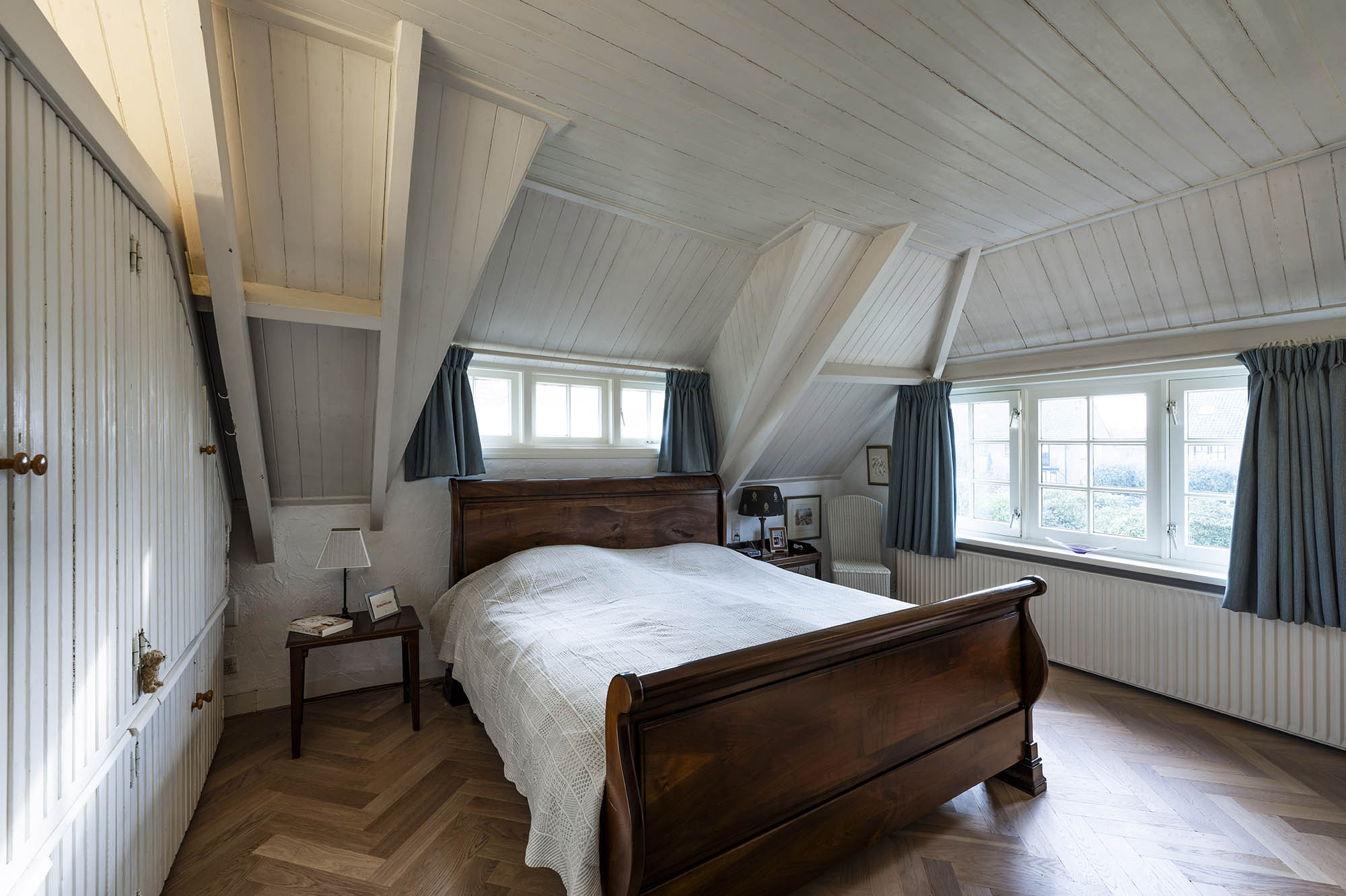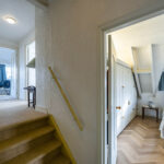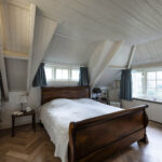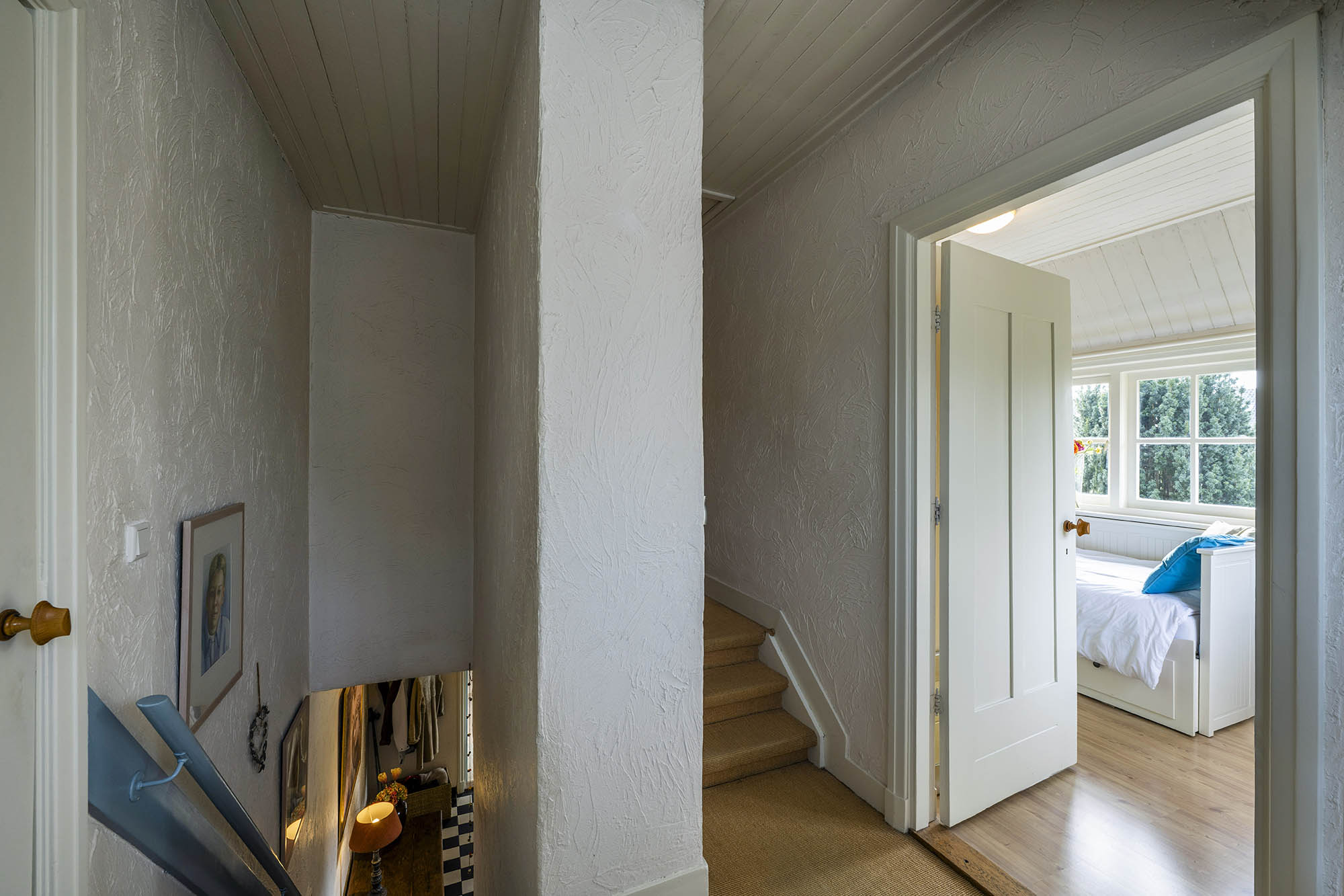De verdieping telt vier slaapkamers, twee badkamers, tweede toilet en diverse inbouwkasten. De master bedroom heeft een badkamer en suite met inloopdouche en dubbele wastafel. De speelse indeling en authentieke details maken deze etage even charmant als praktisch.