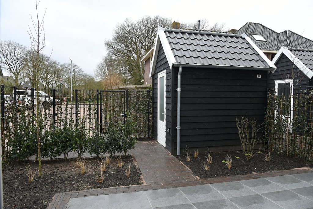 De tuin van de woning is fraai aangelegd, beschikt over een achterom en heeft een ruime afsluitbare berging met elektra en een buitenkraan.