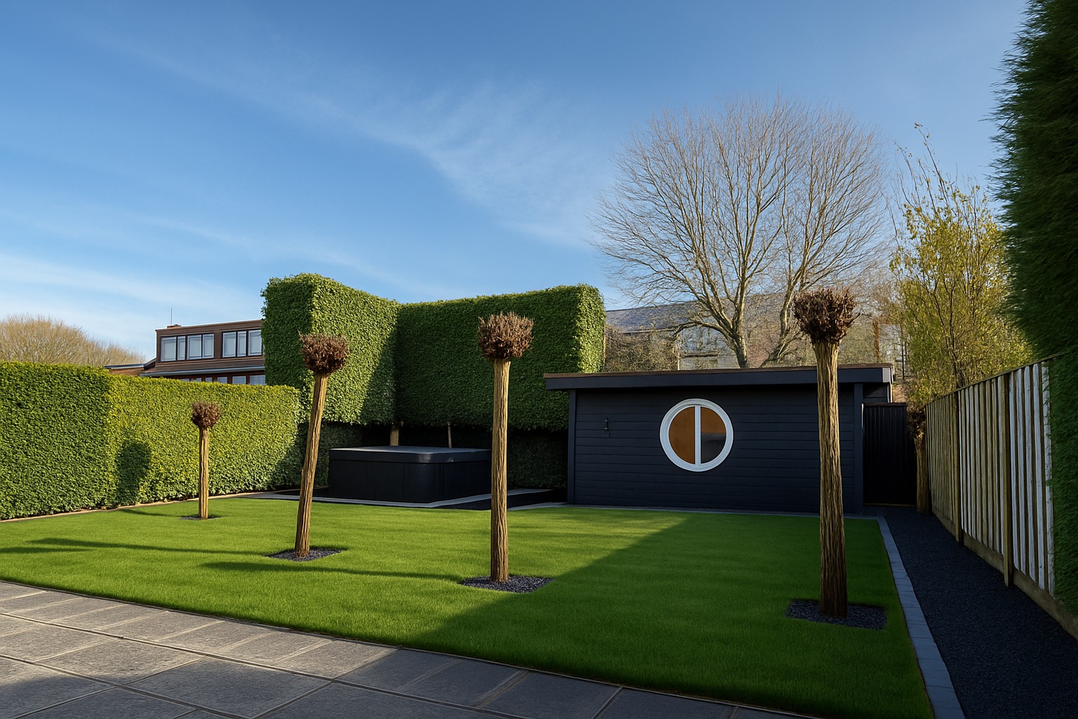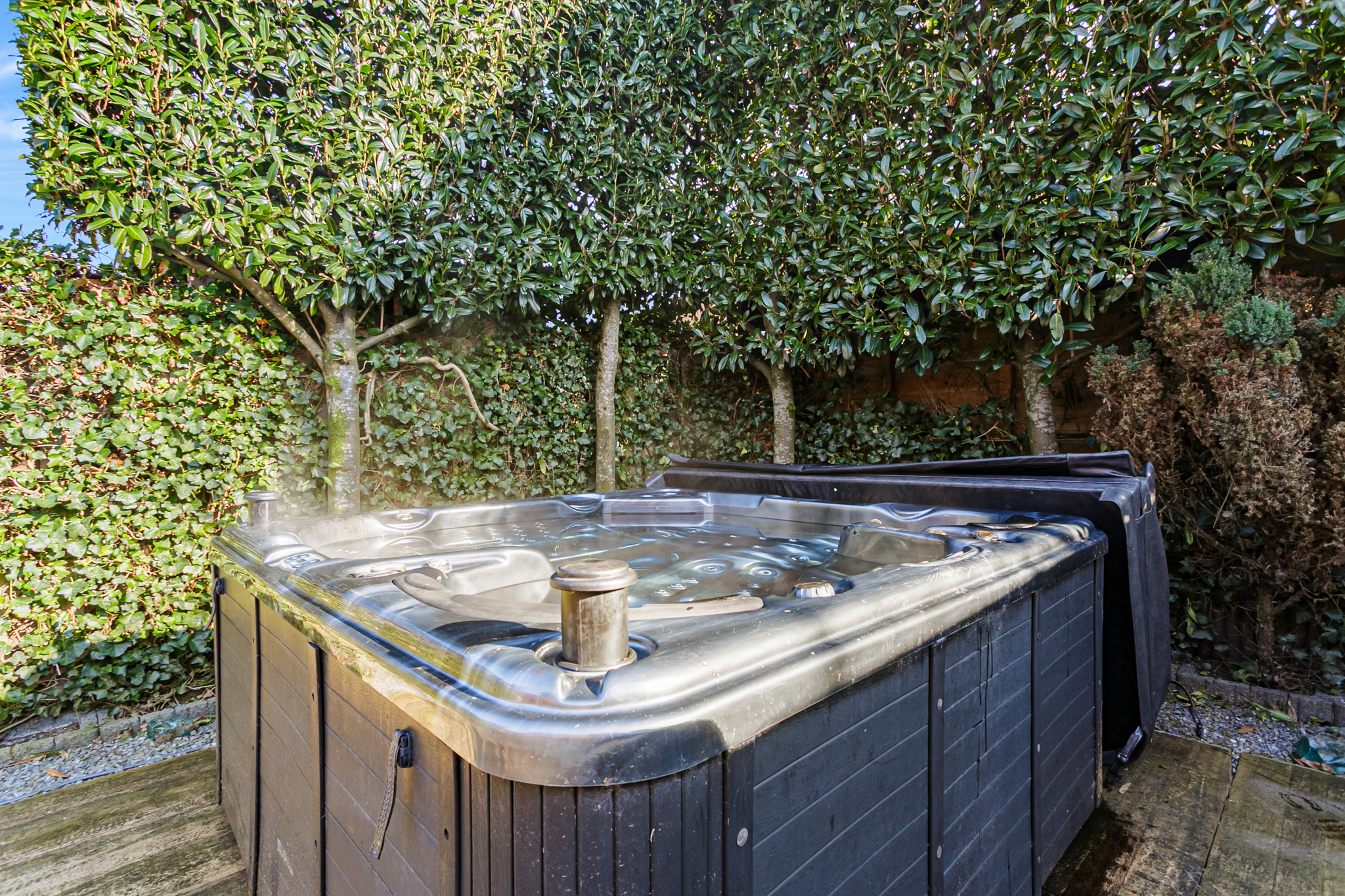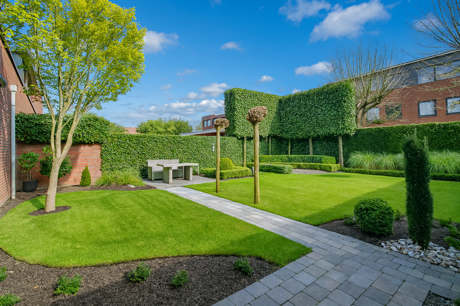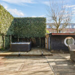 De achtertuin is circa 11 meter breed en 14 meter diep en is fraai aangelegd met groot terras, groen en een ruime overkapping achterin de tuin. Dankzij de gunstige zonligging is er de hele dag door een keuze tussen zon- en schaduwplekken.