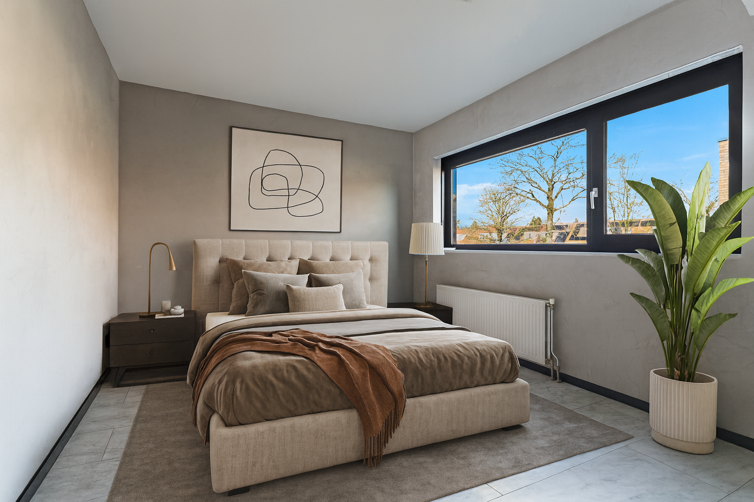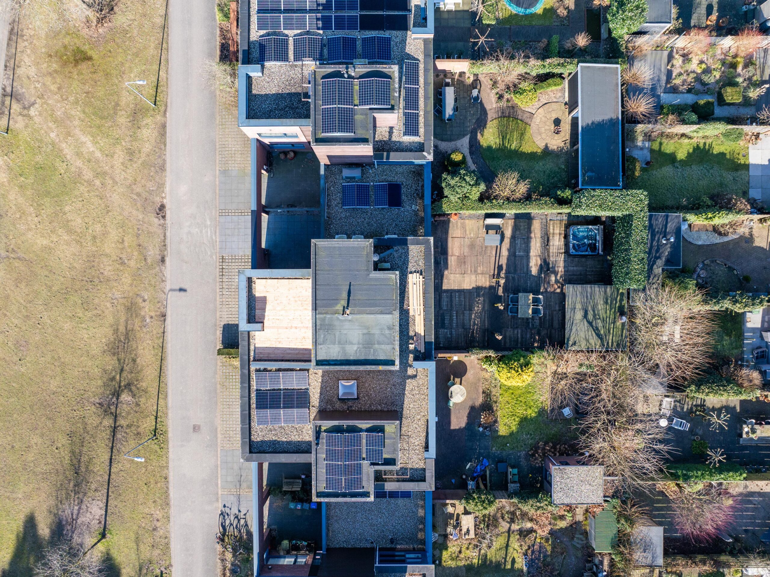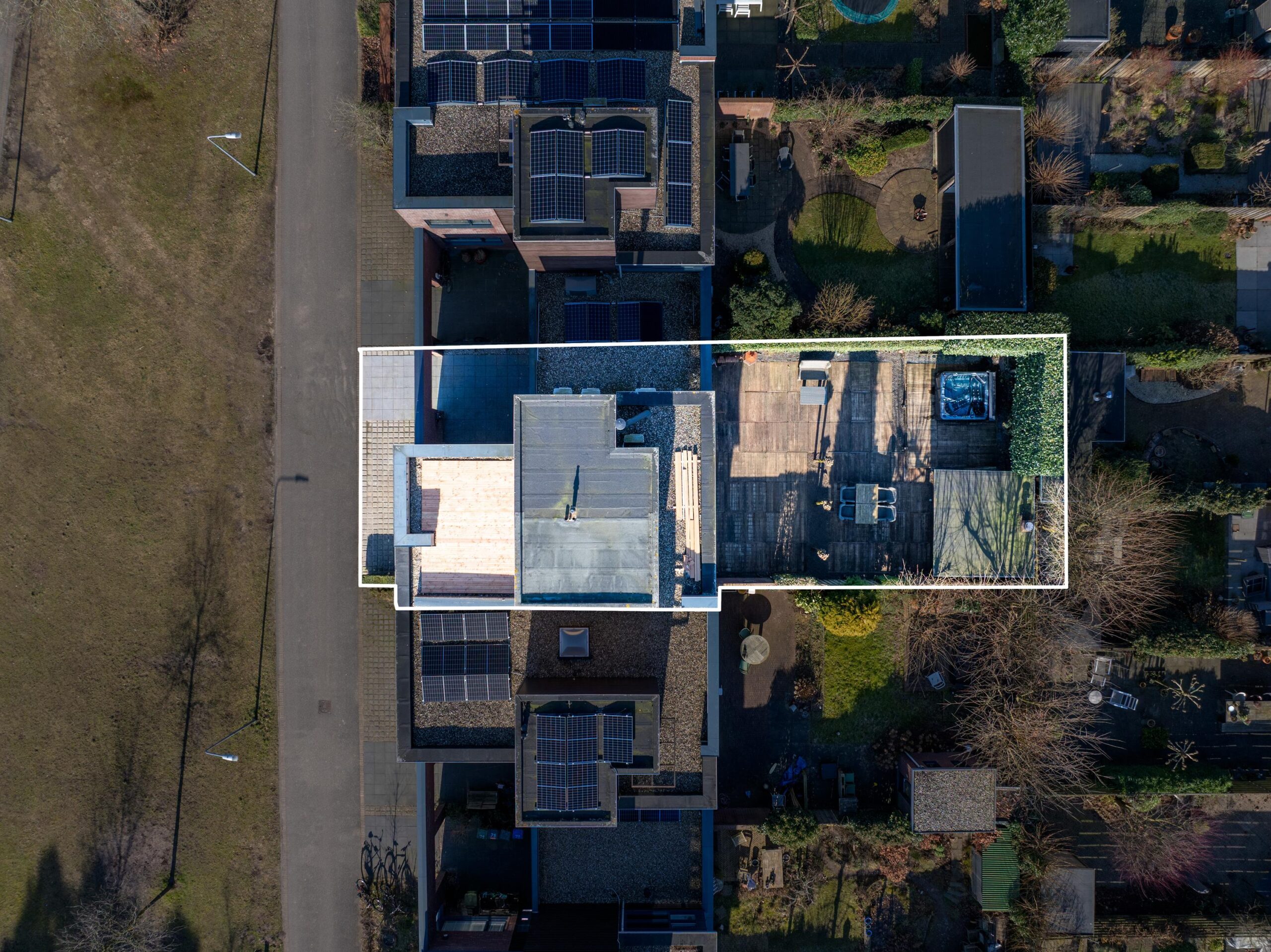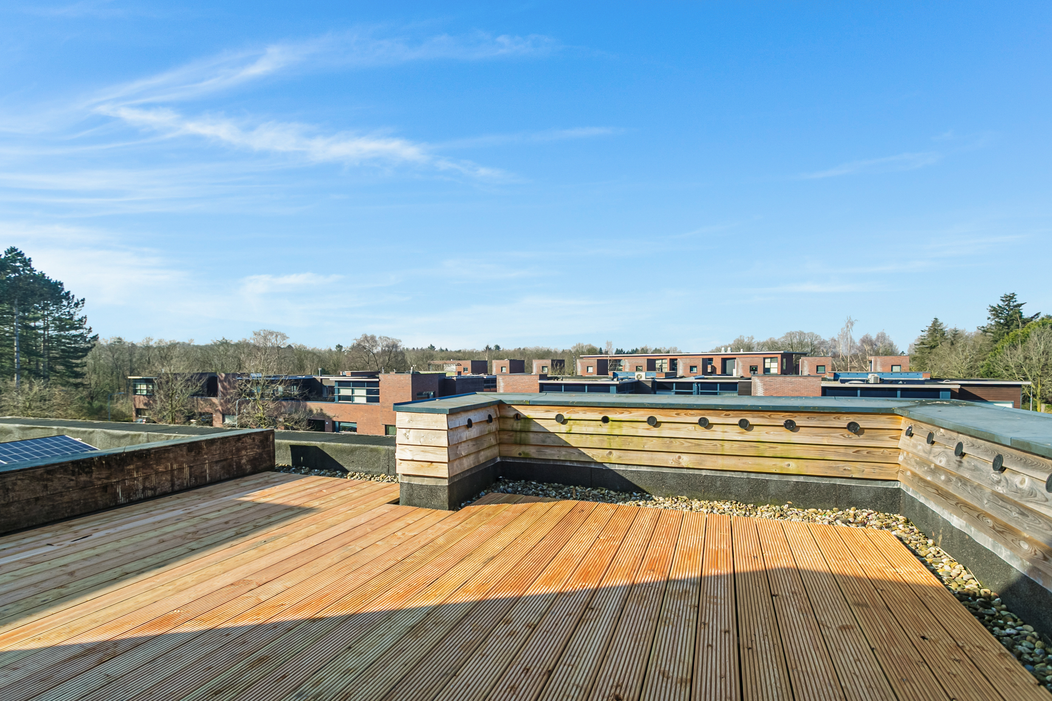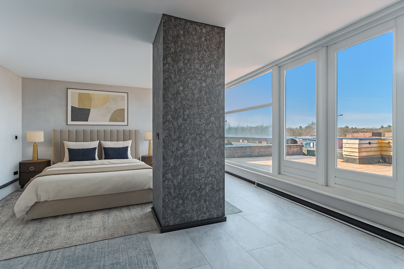 Hier is een vierde royale slaap-/werkkamer aanwezig en toegang tot het platte dak met een dakterras. Deze woning is ten opzichte van diverse vergelijkbare woning al voorzien van deze extra grote kamer. Inmiddels zijn er woningen die een nog grotere opbouw hebben gerealiseerd.